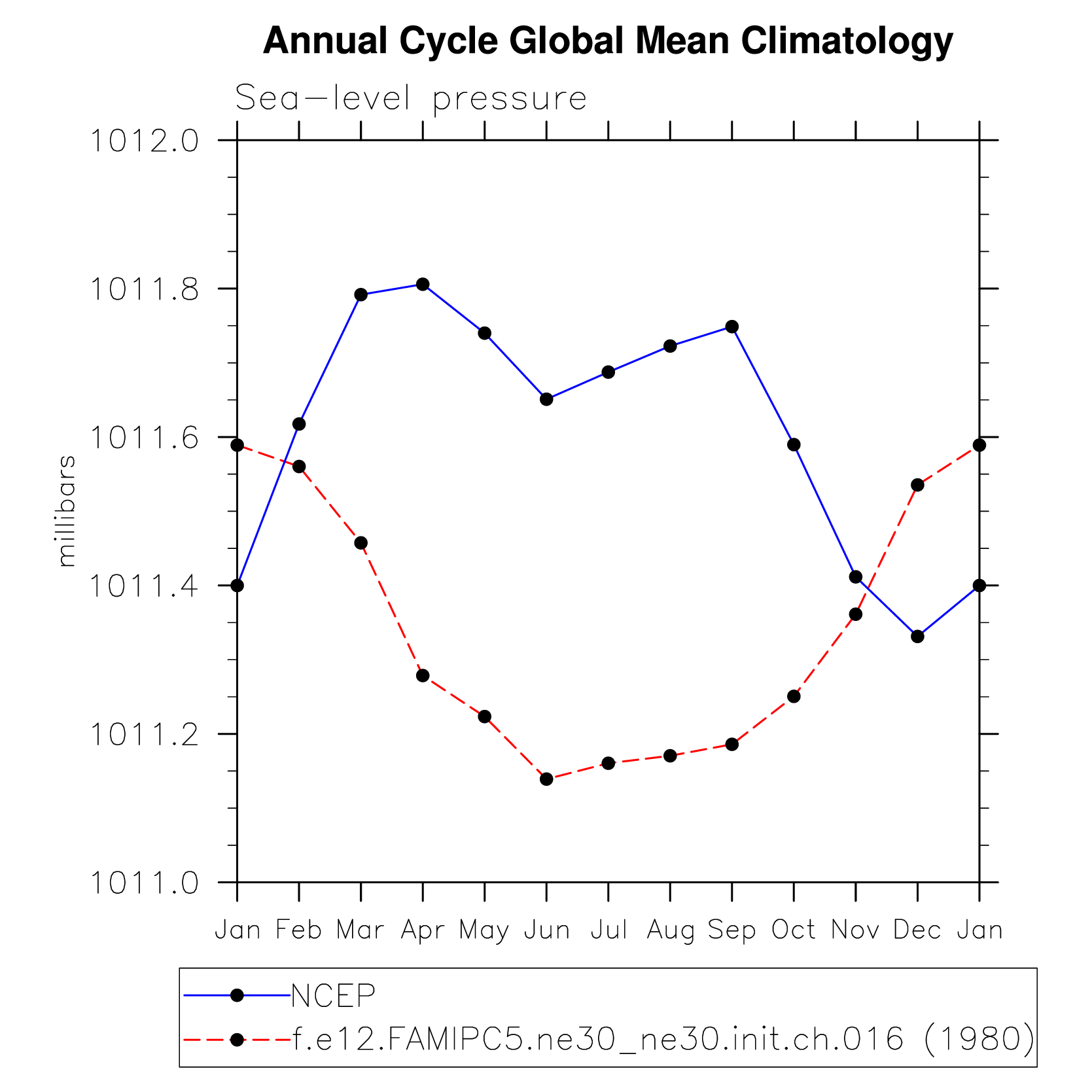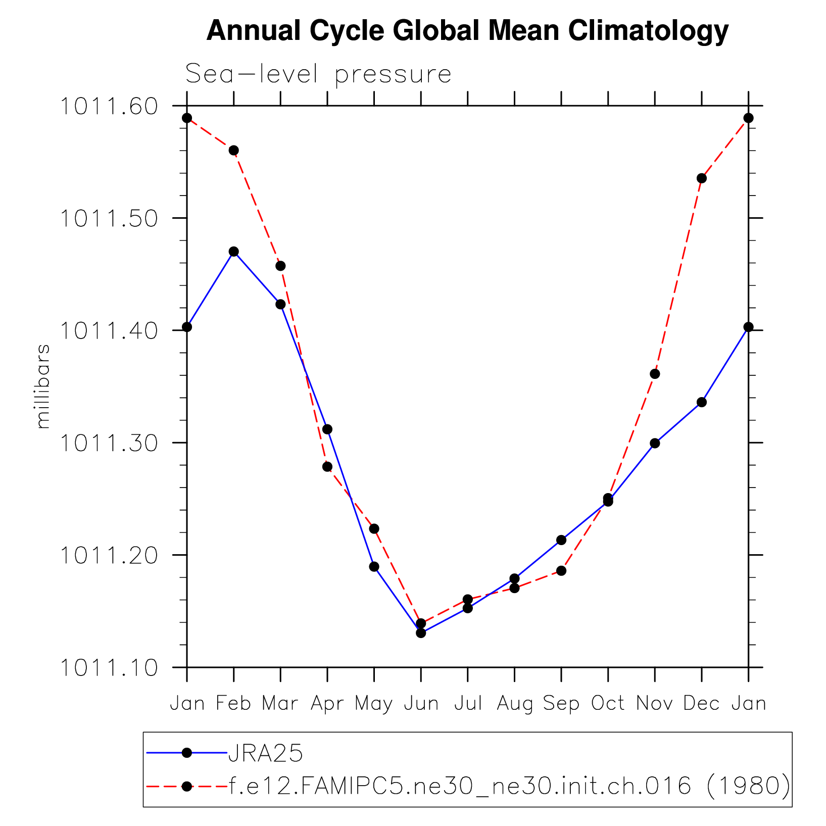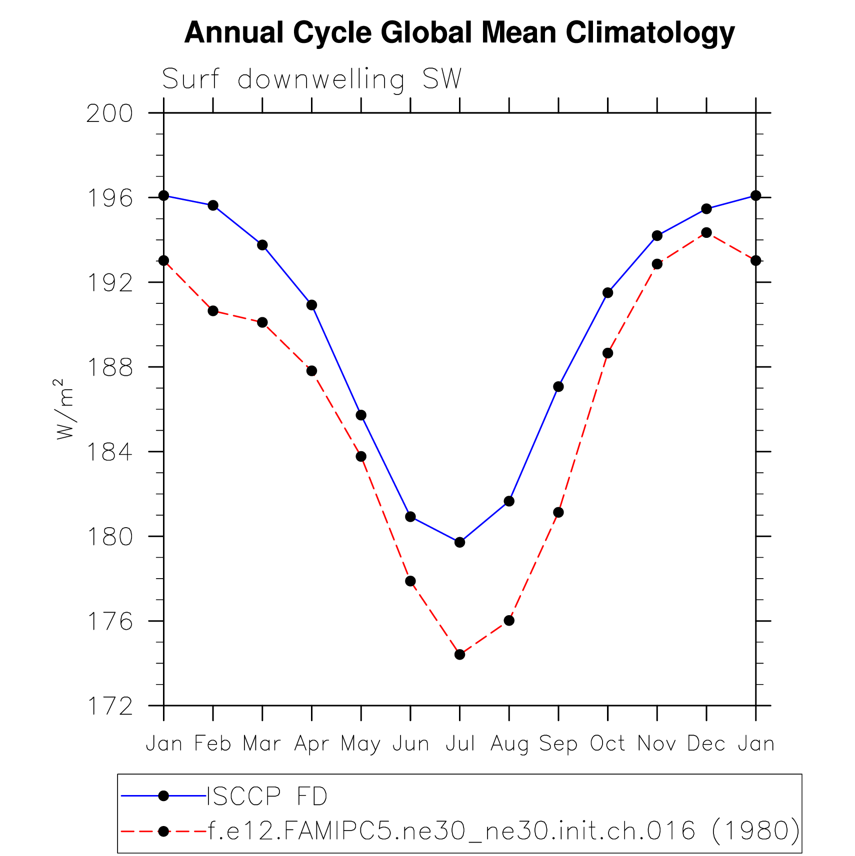 DIAG Set 10 - Annual cycle line plots of global means