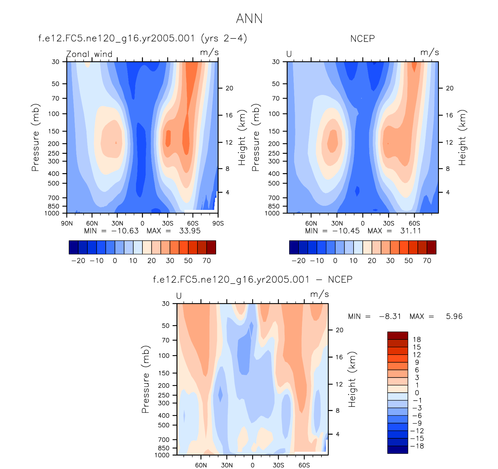 DIAG Set 4 - Vertical contour plots of DJF, JJA and ANN zonal means