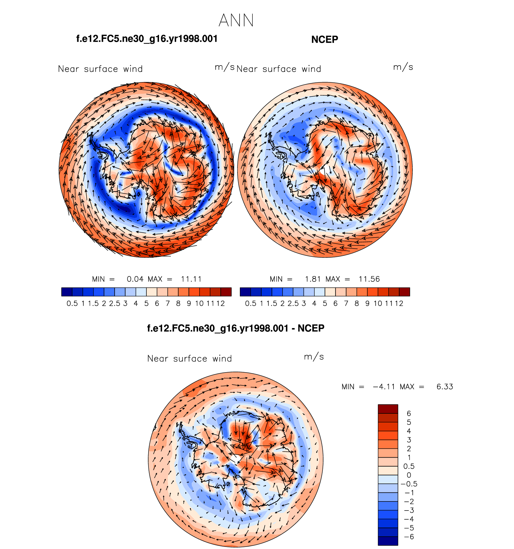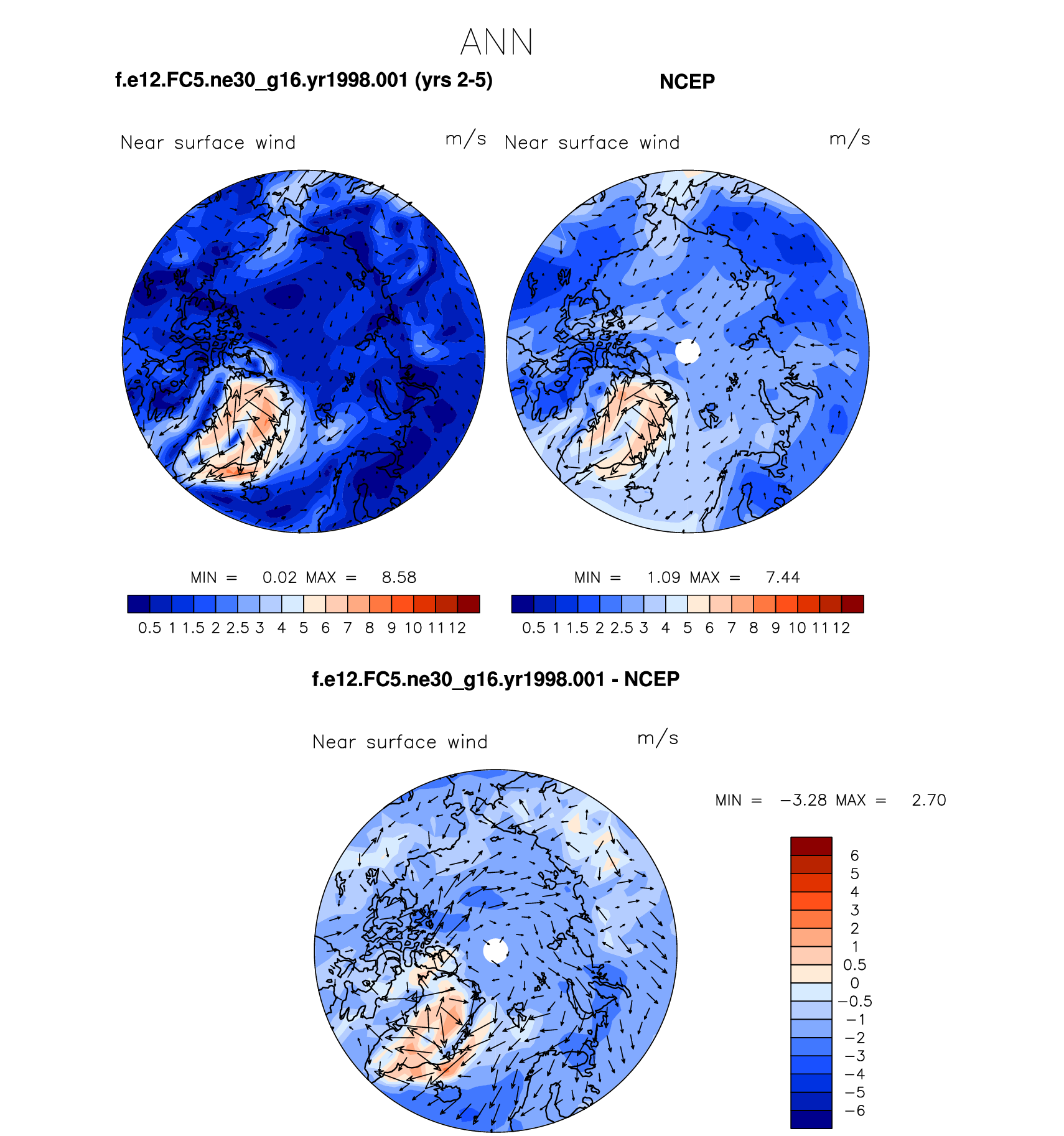 f.e12.FC5.ne30_g16.yr1998.001 DIAG Set 7 - Polar contour/vector plots of DJF, JJA and ANN means