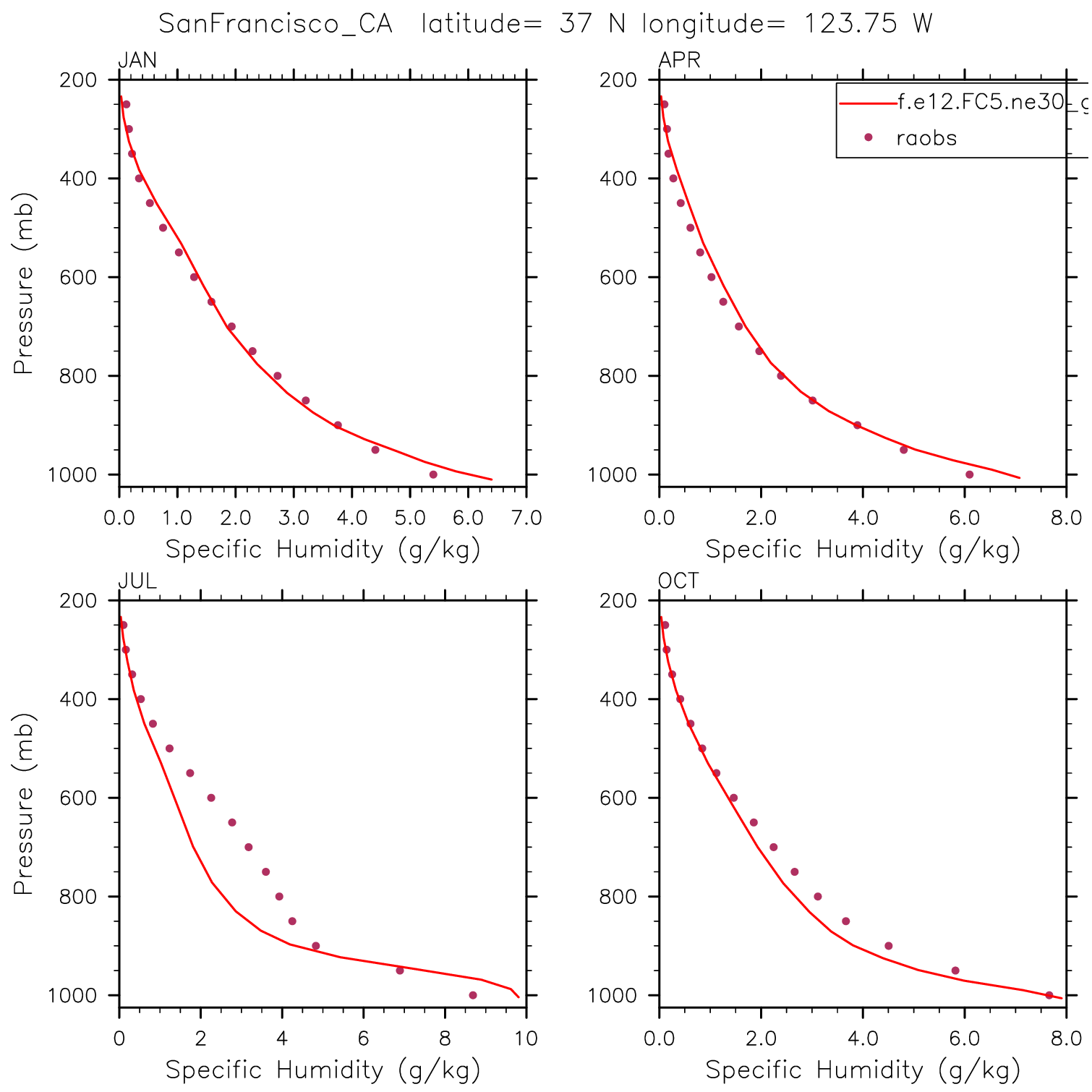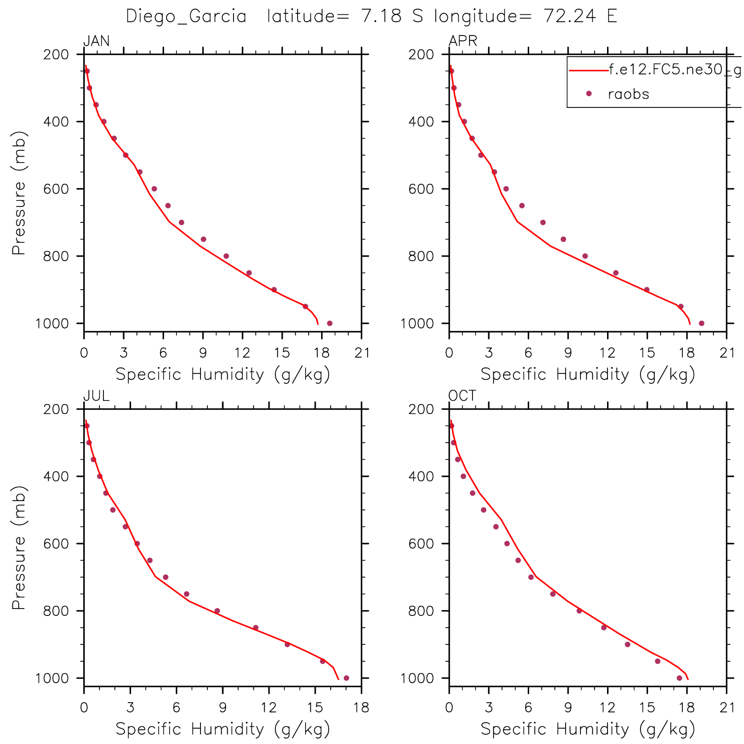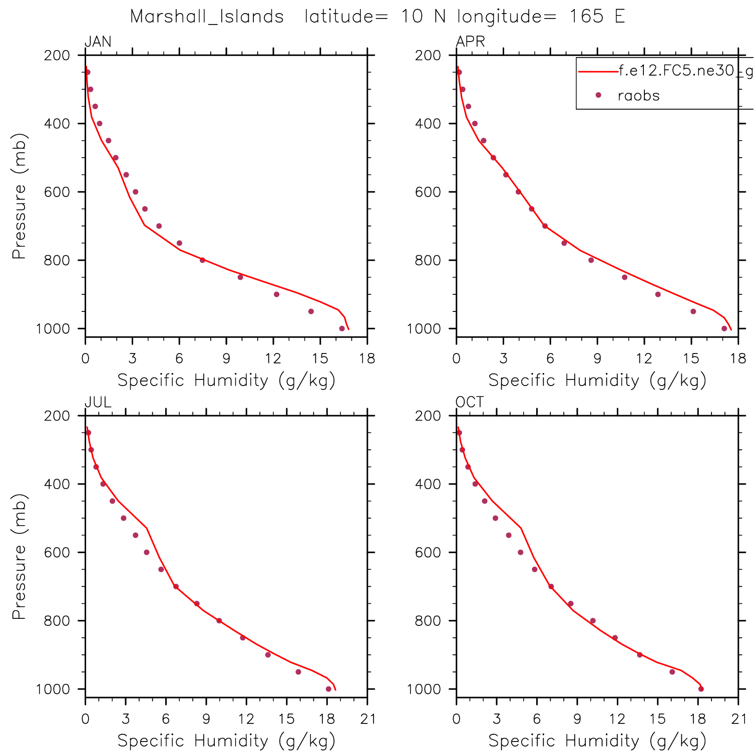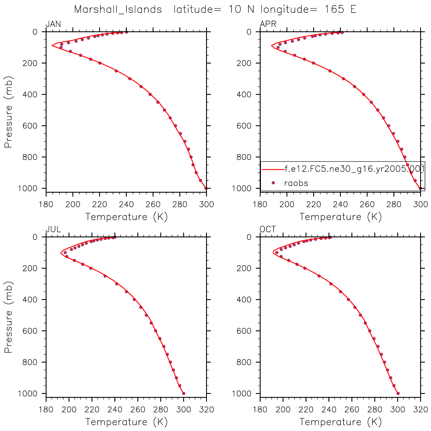 f.e12.FC5.ne30_g16.yr2005.001 Set 12 - Vertical Profiles at 17 selected raobs stations