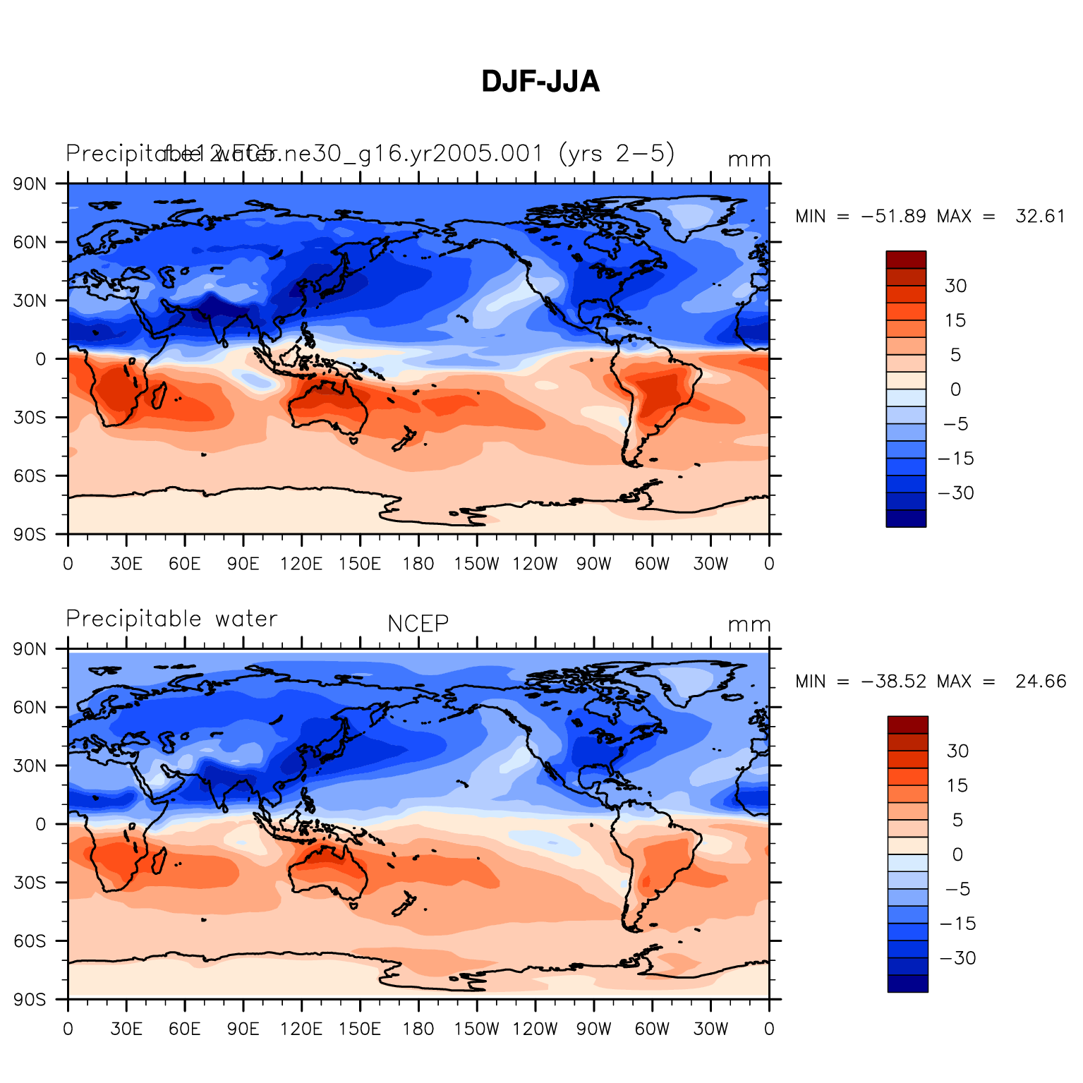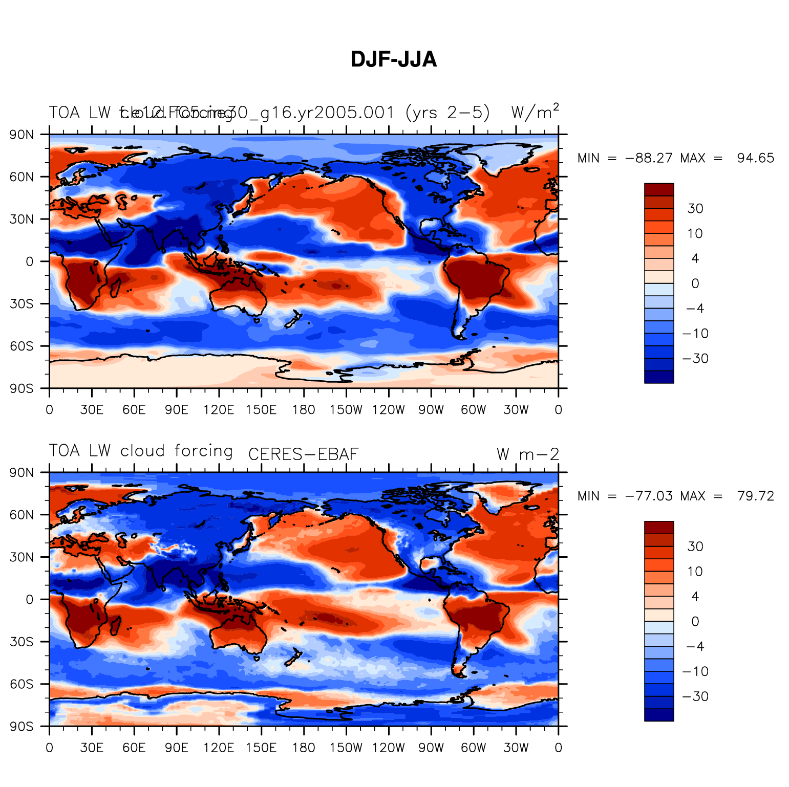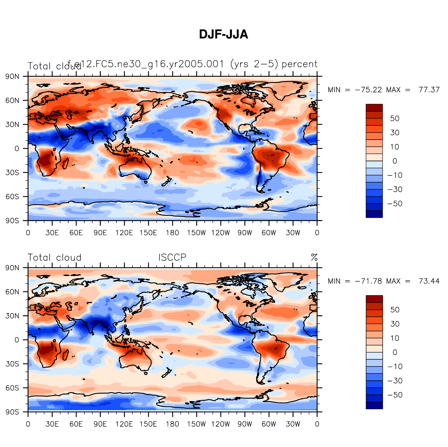 f.e12.FC5.ne30_g16.yr2005.001 DIAG Set 9 - Horizontal contour plots of DJF-JJA differences