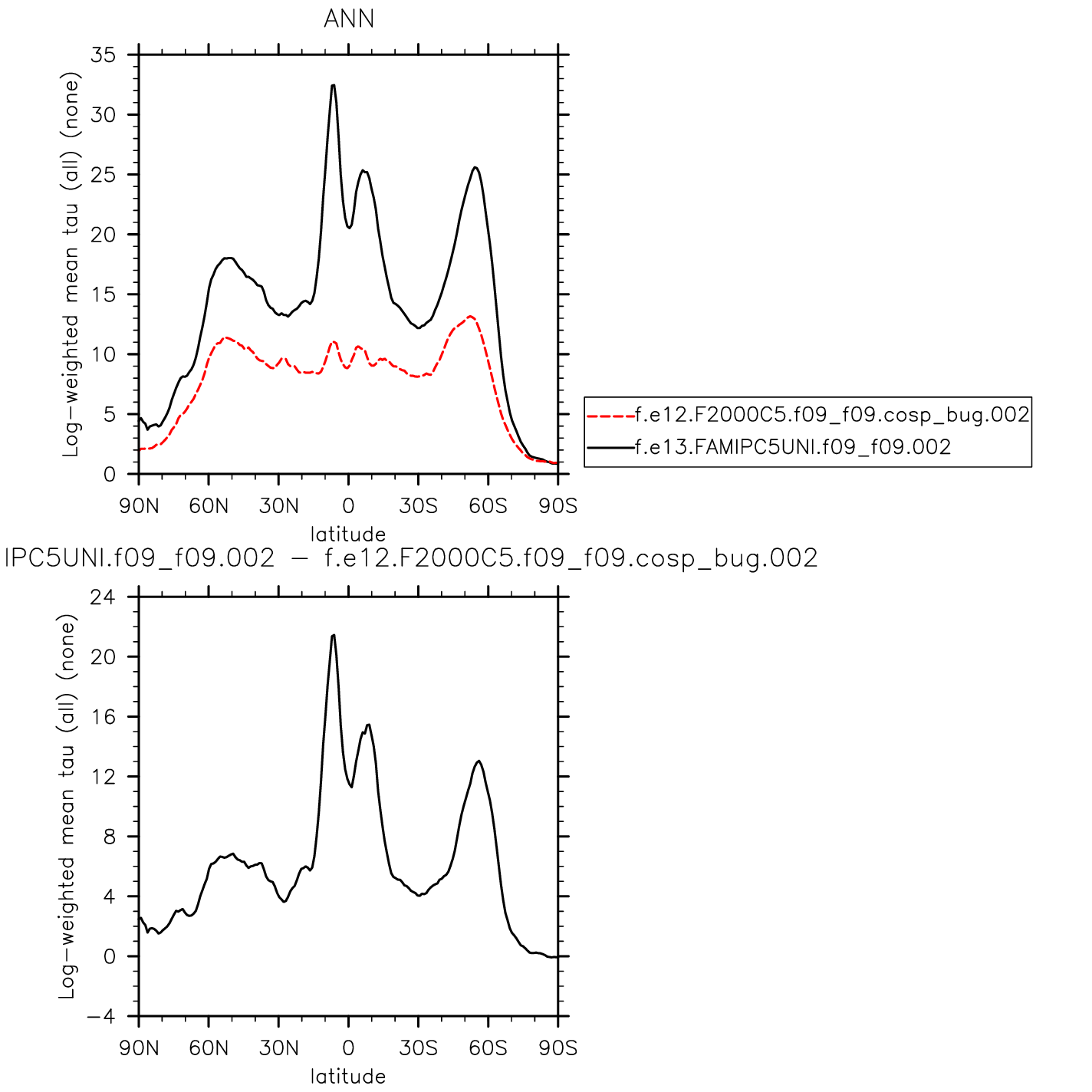 Log-weighted mean optical thickness (all clouds)