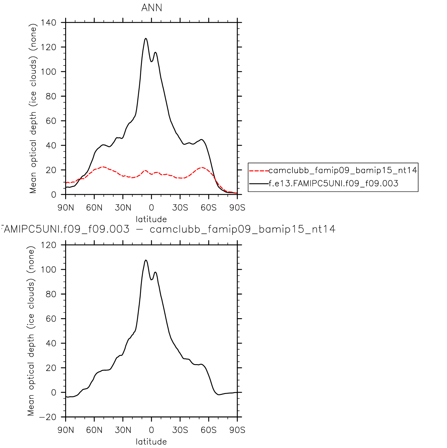 Mean optical thickness (ice clouds)
