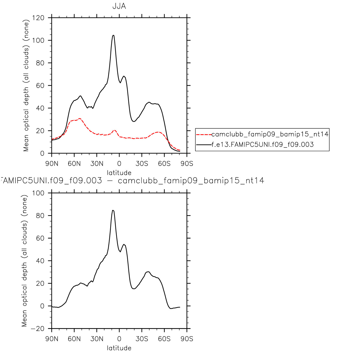 Mean optical thickness (all clouds)