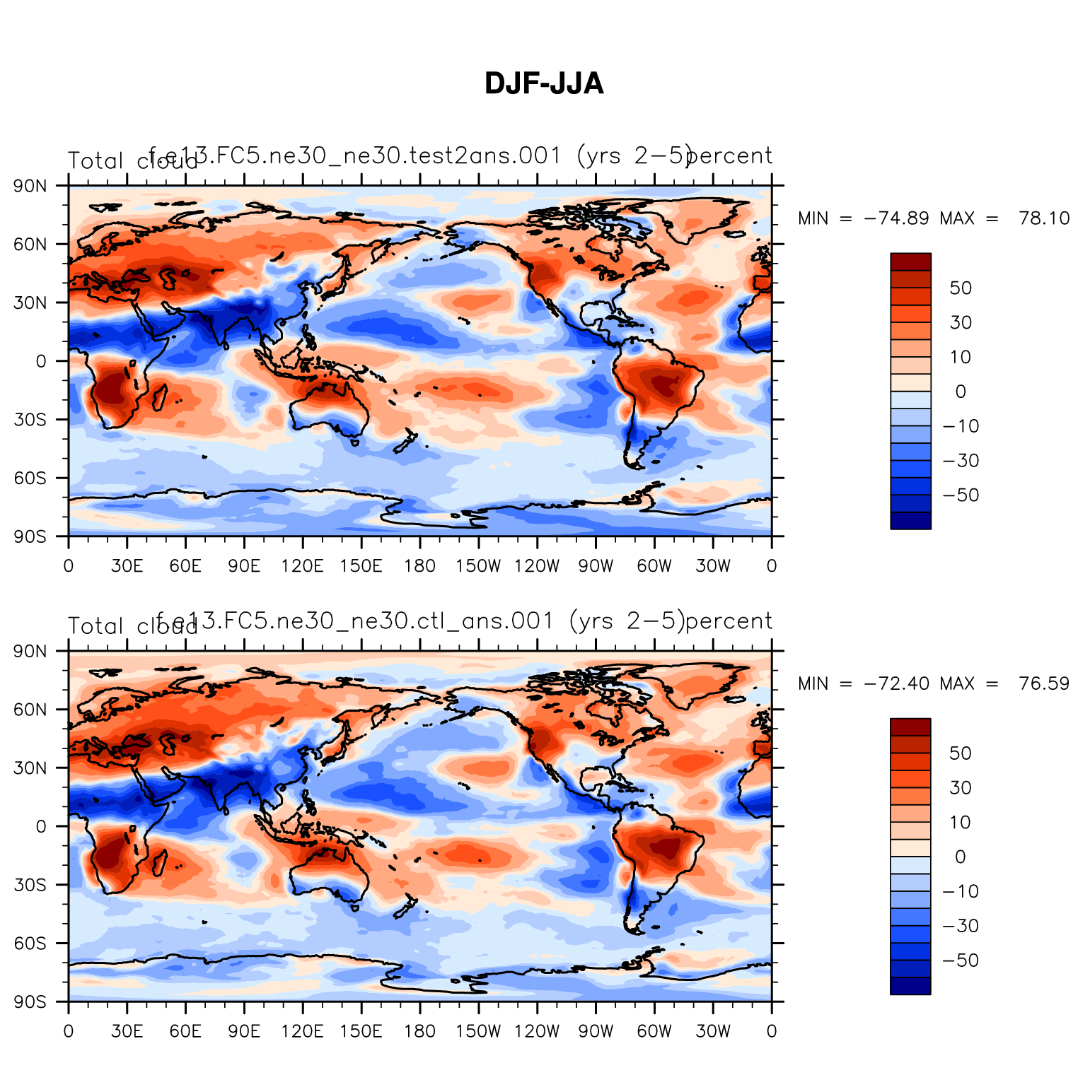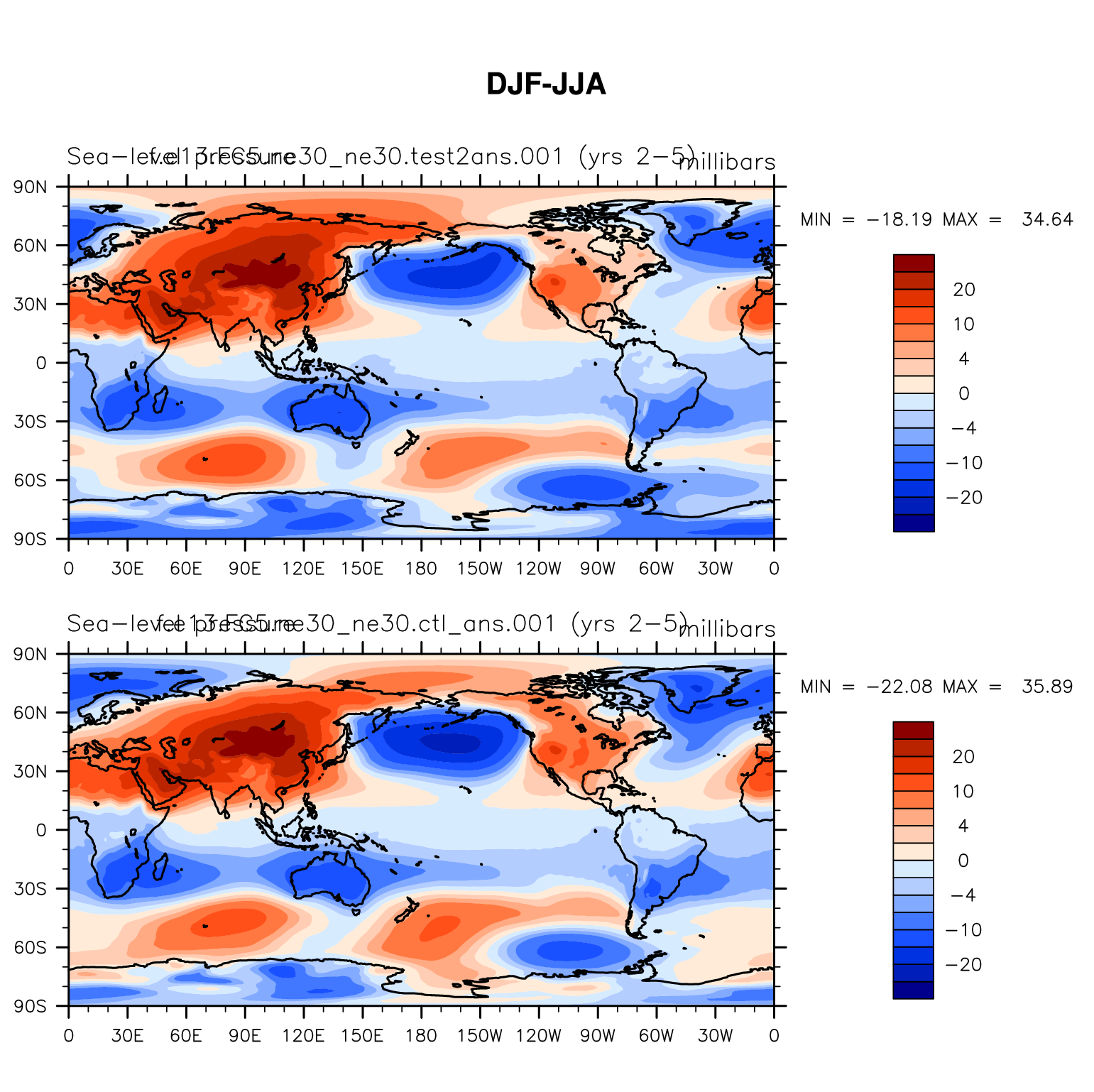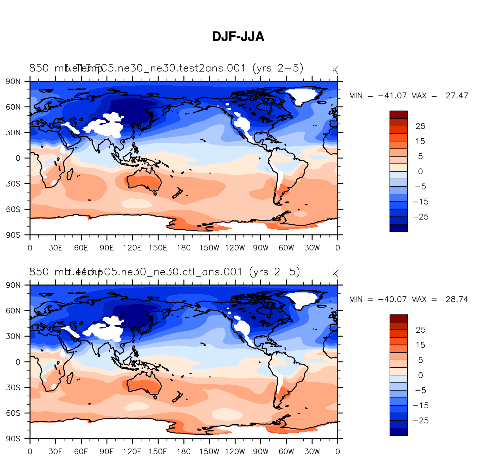 DIAG Set 9 - Horizontal contour plots of DJF-JJA differences