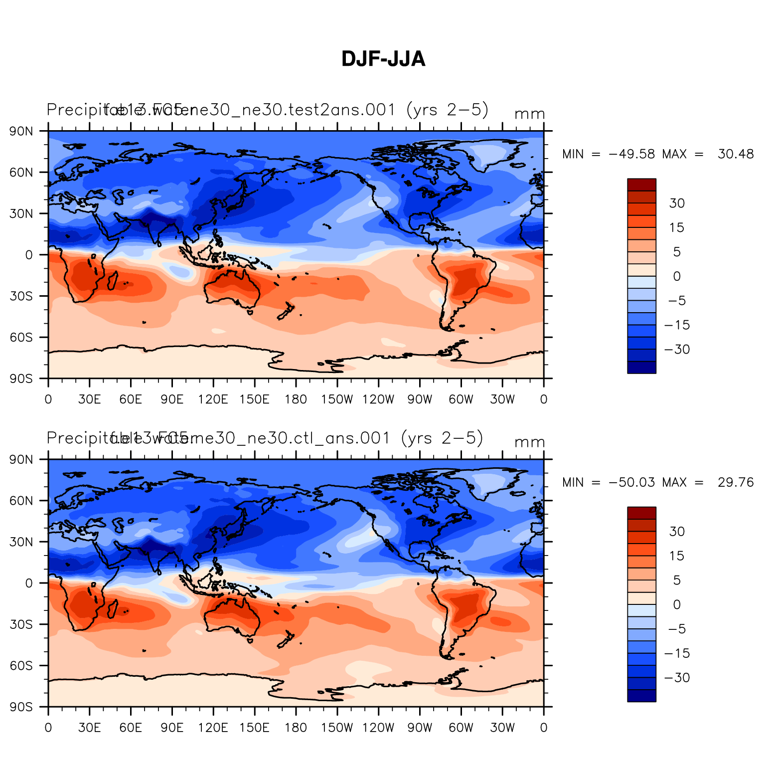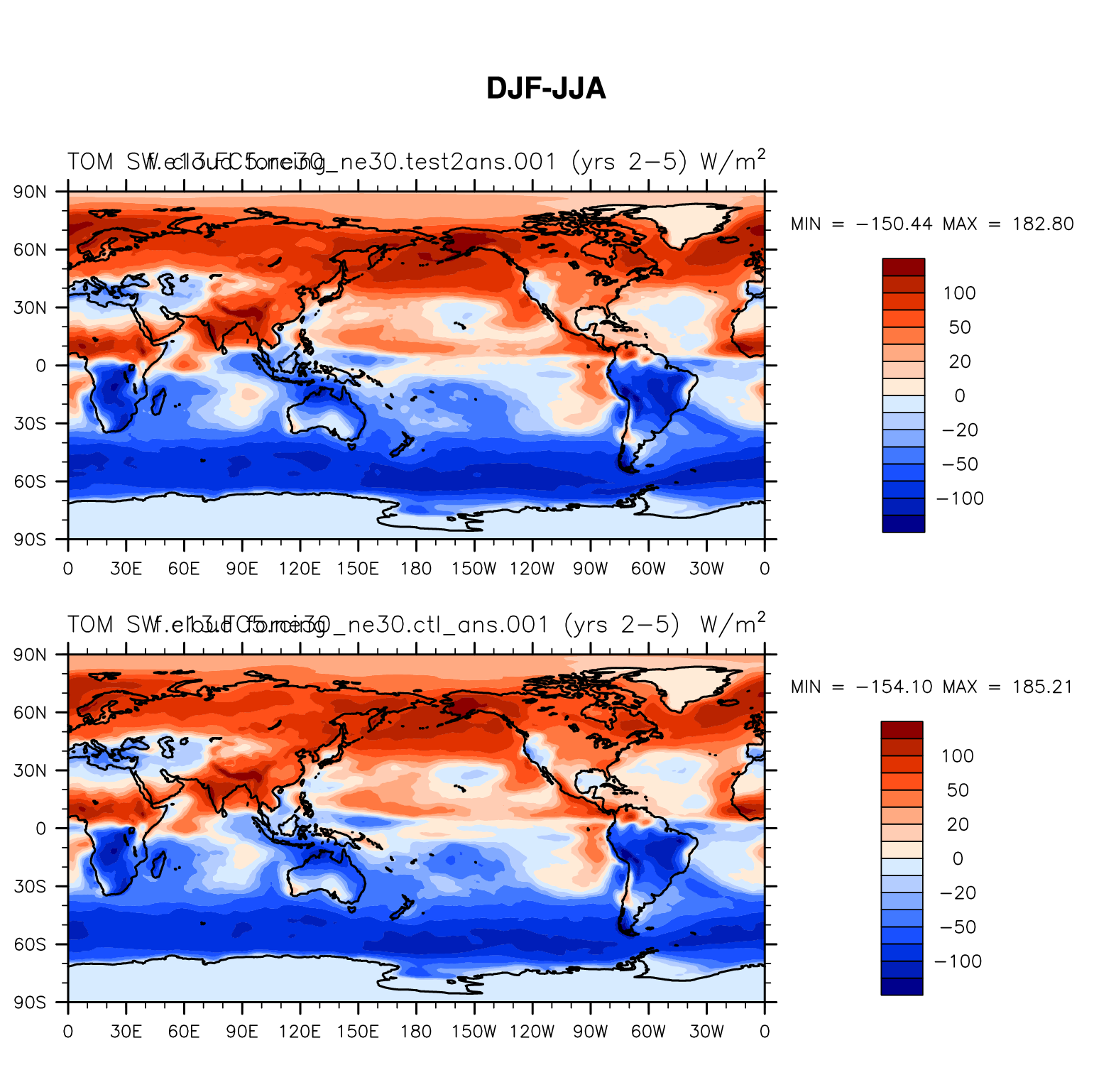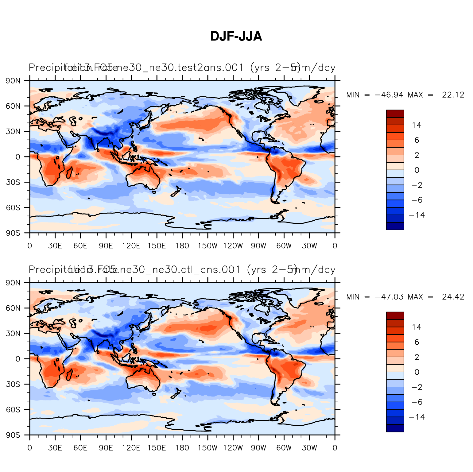 DIAG Set 9 - Horizontal contour plots of DJF-JJA differences