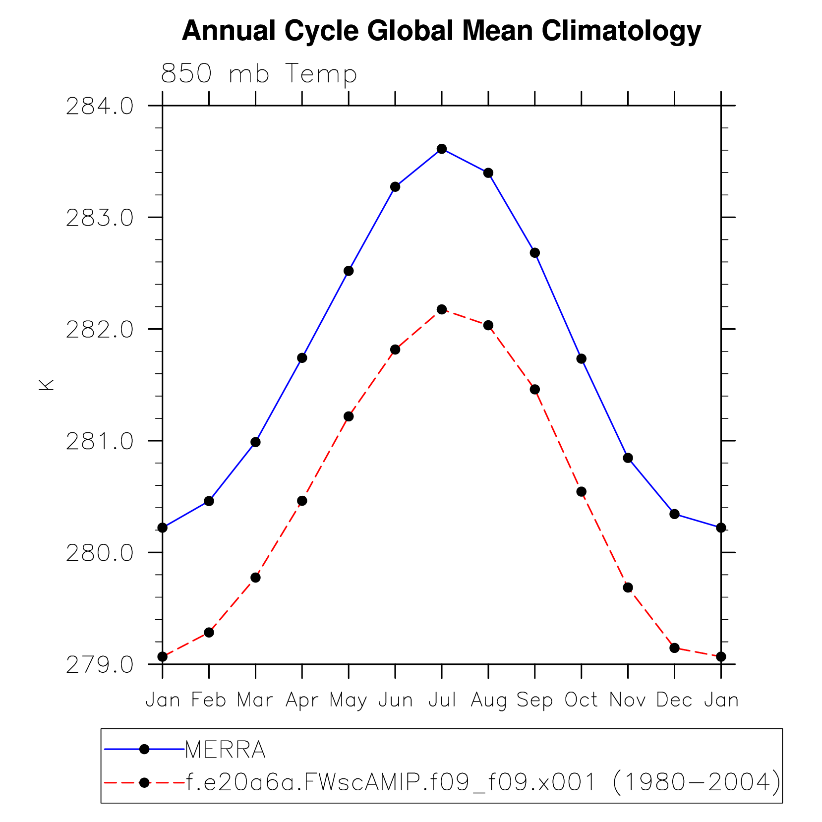 DIAG Set 10 - Annual cycle line plots of global means