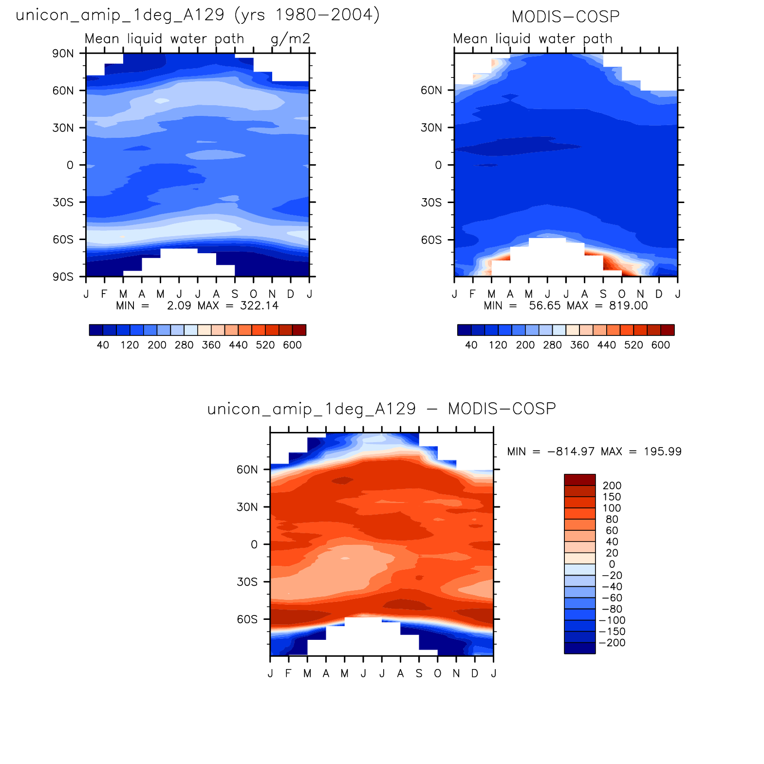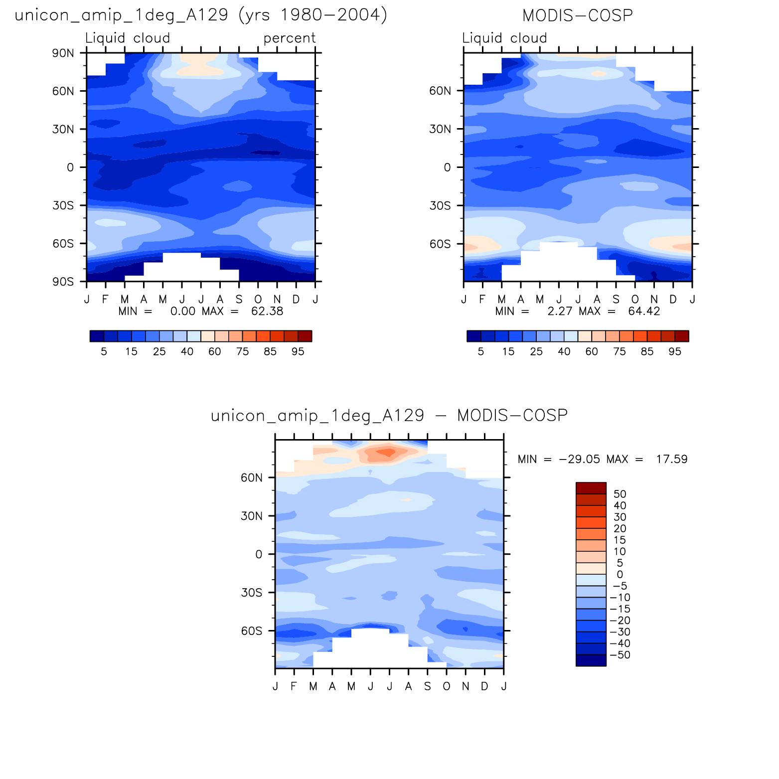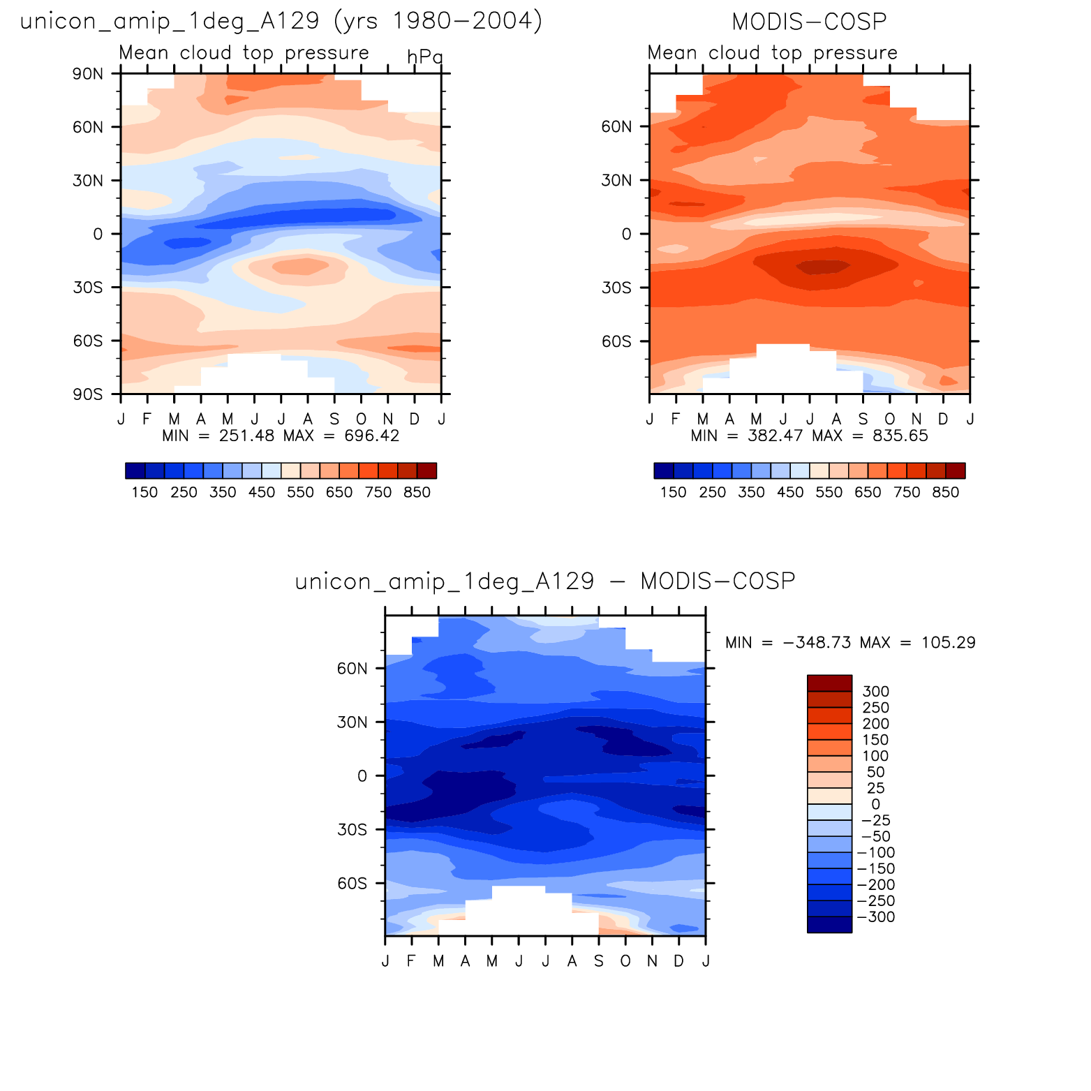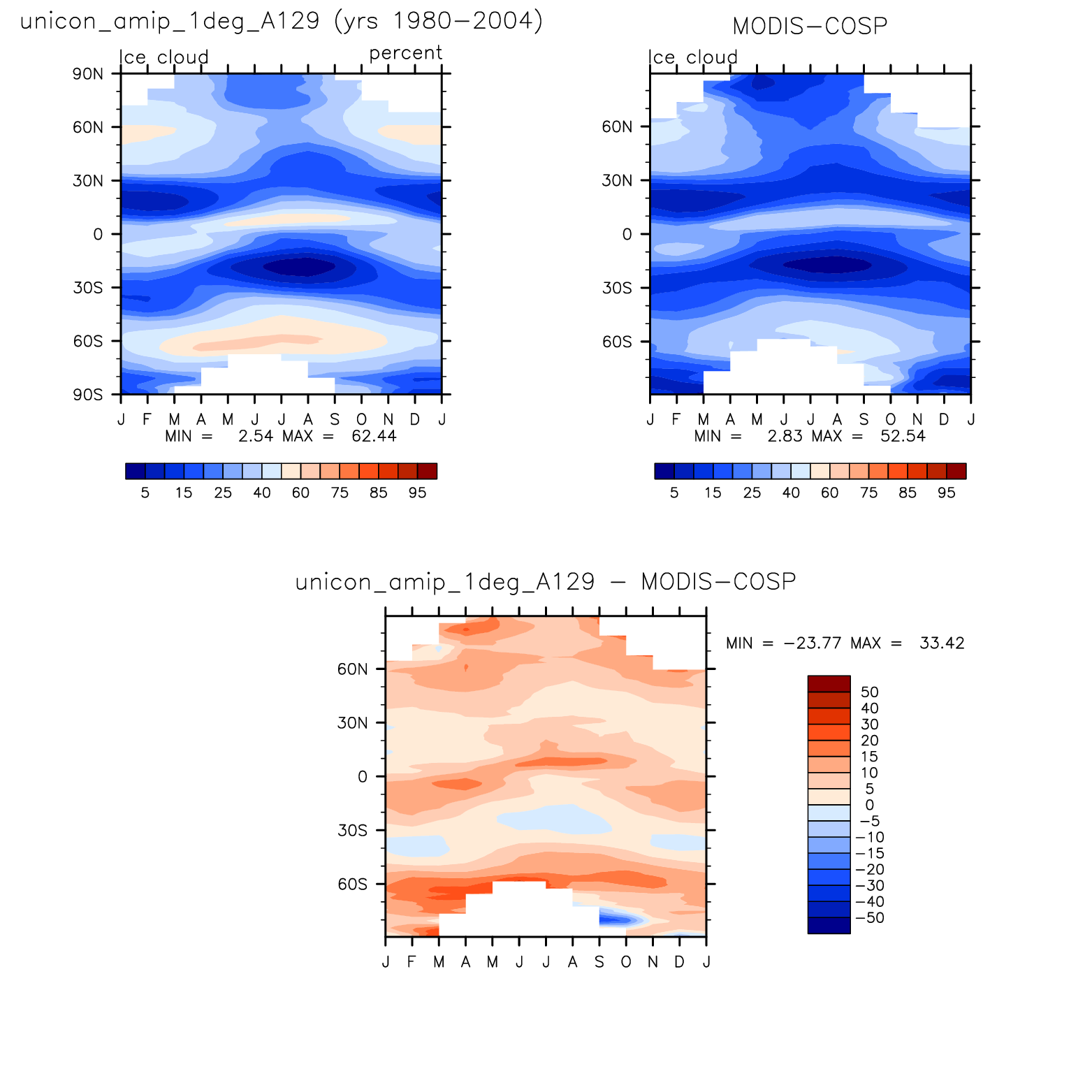 unicon_amip_1deg_A129 DIAG Set 8 - Annual cycle contour plots of zonal means