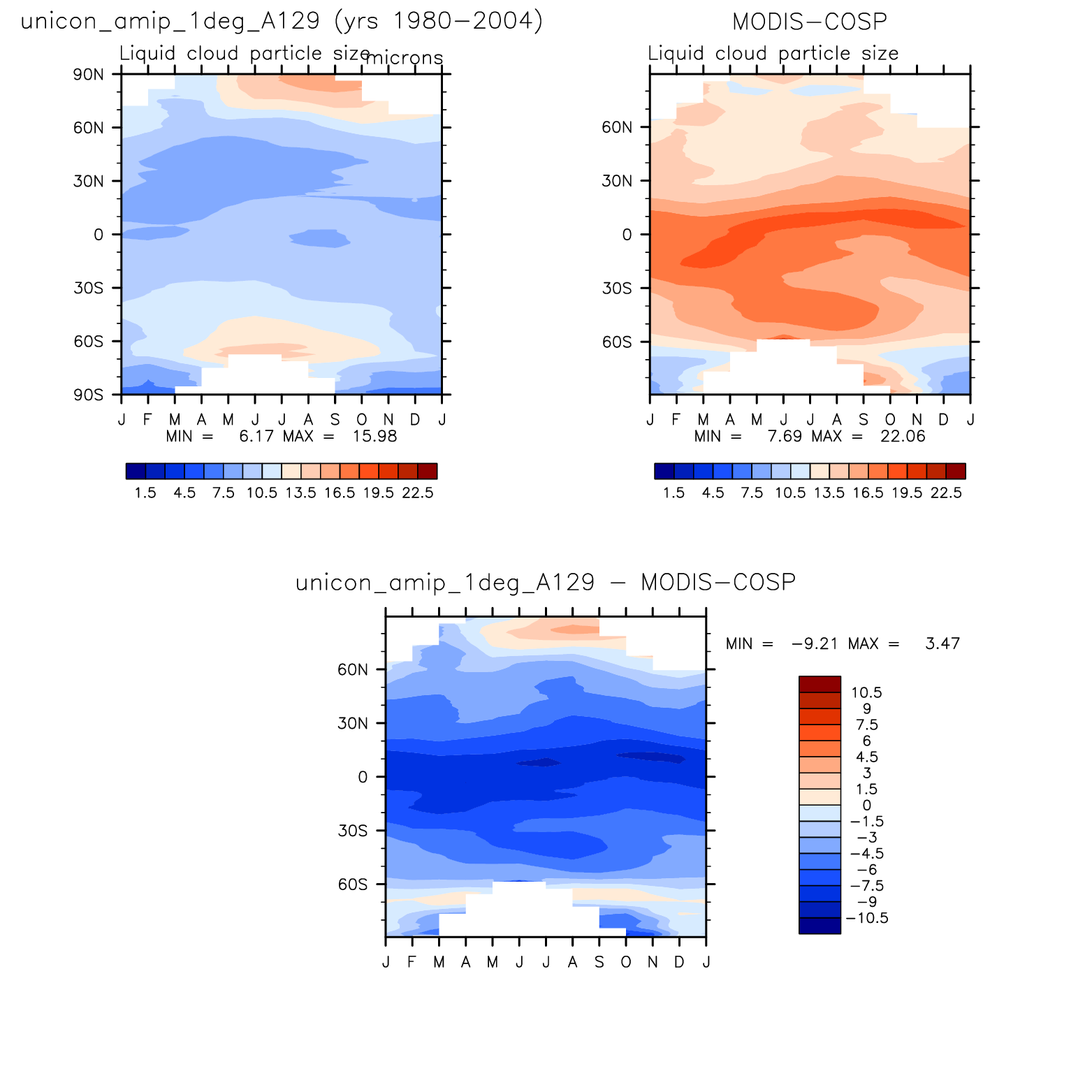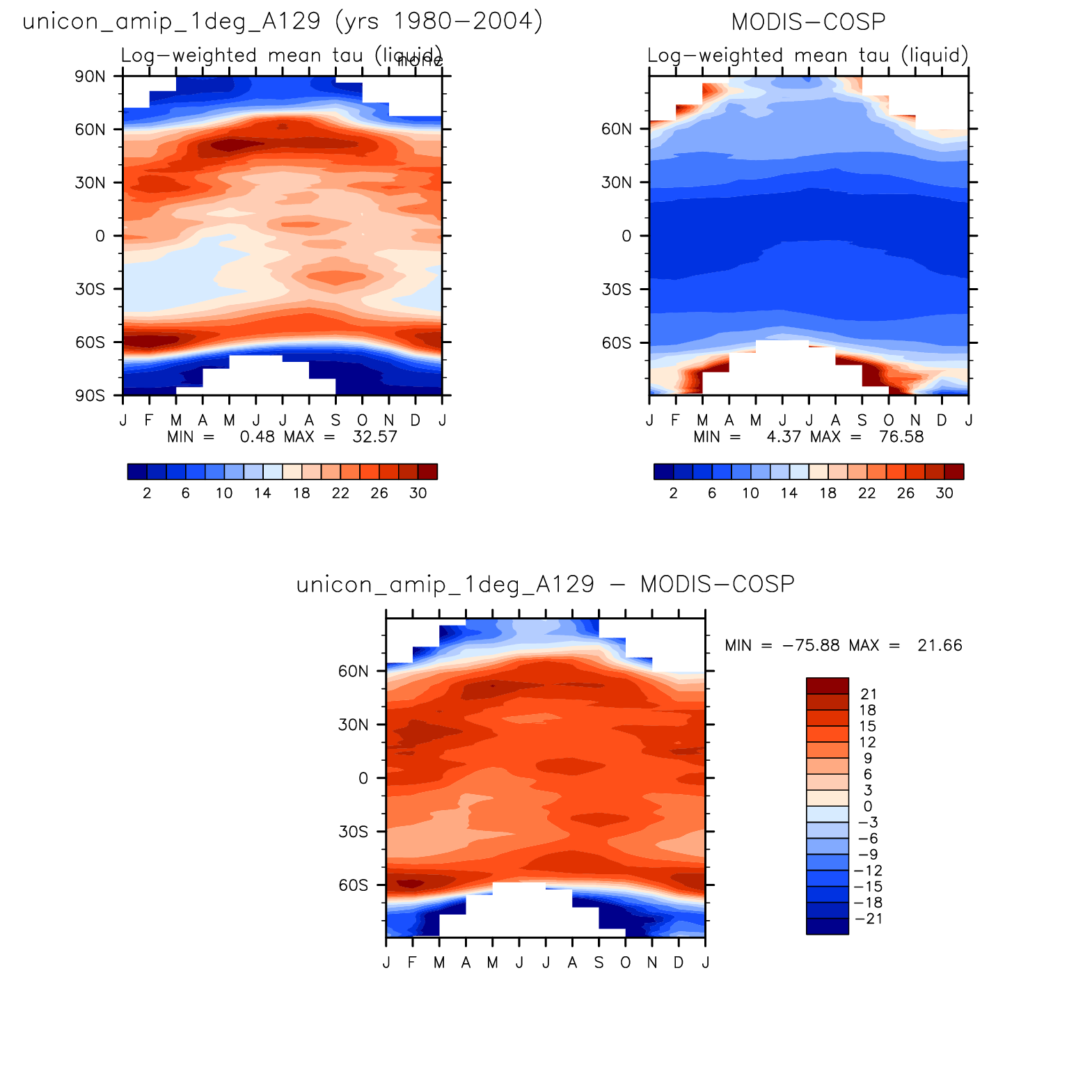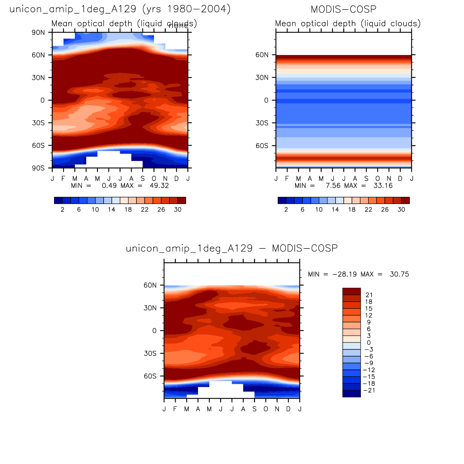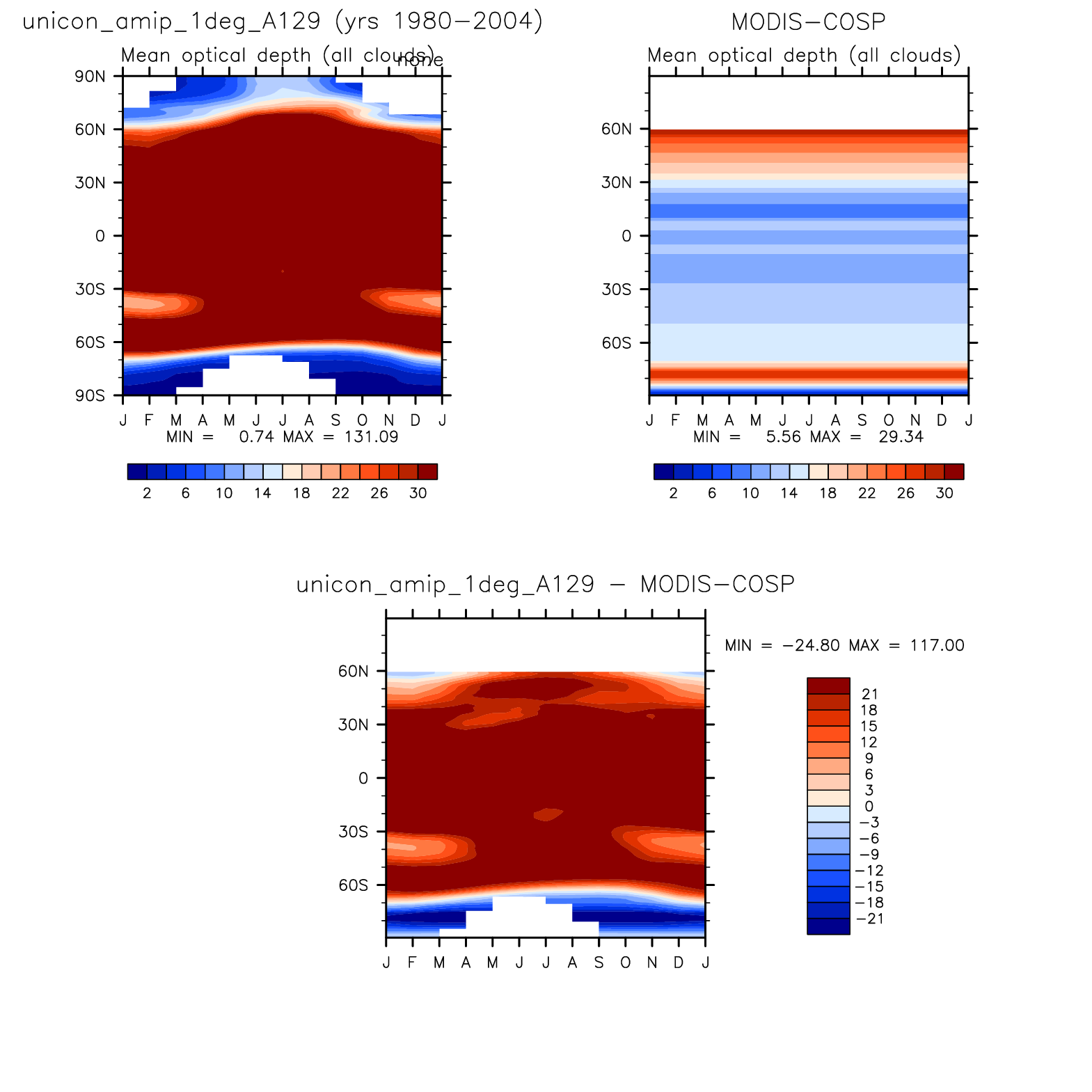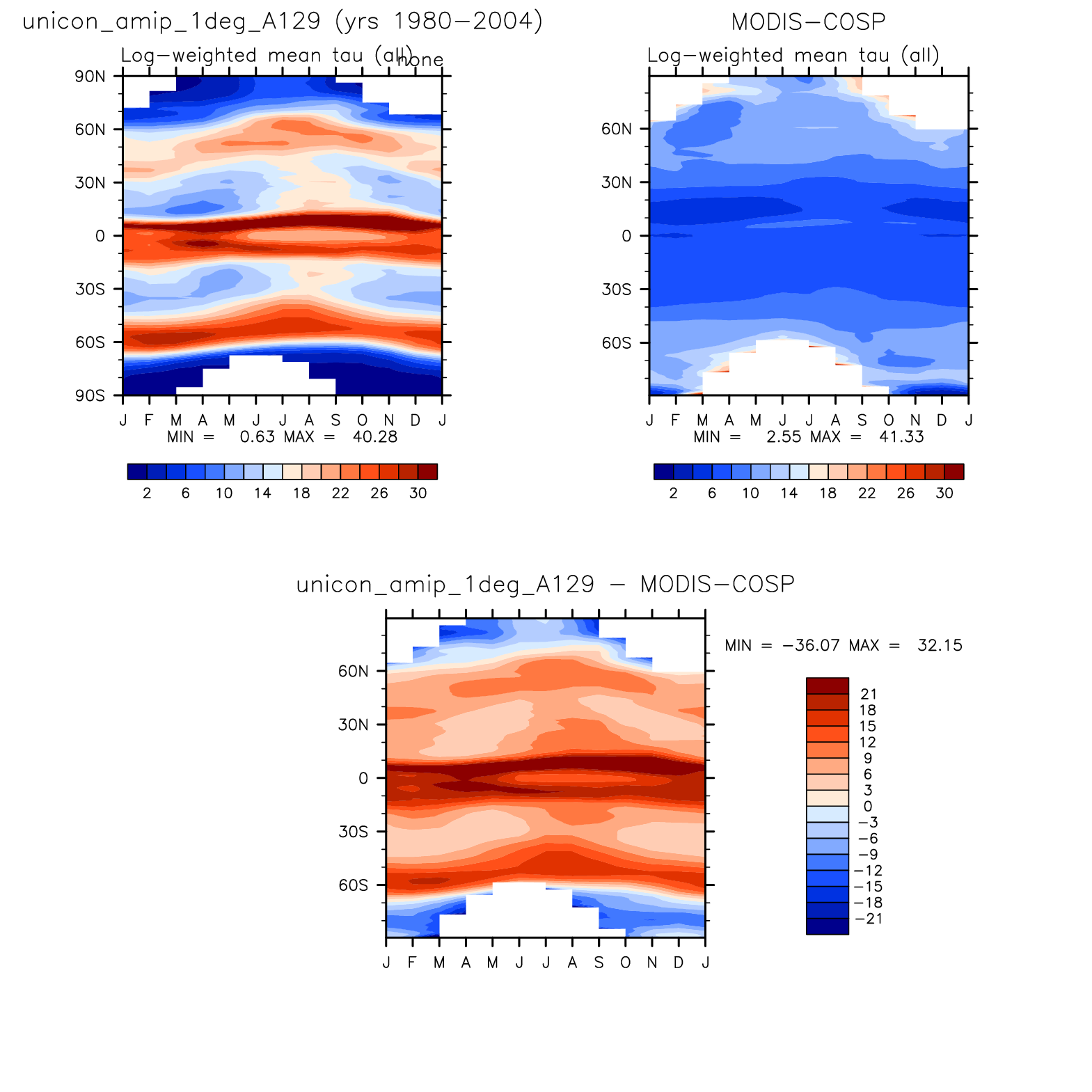 unicon_amip_1deg_A129 DIAG Set 8 - Annual cycle contour plots of zonal means
