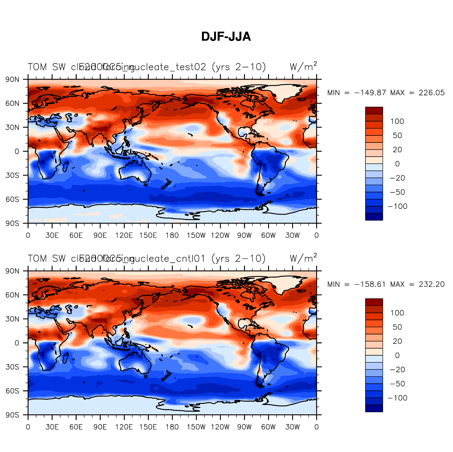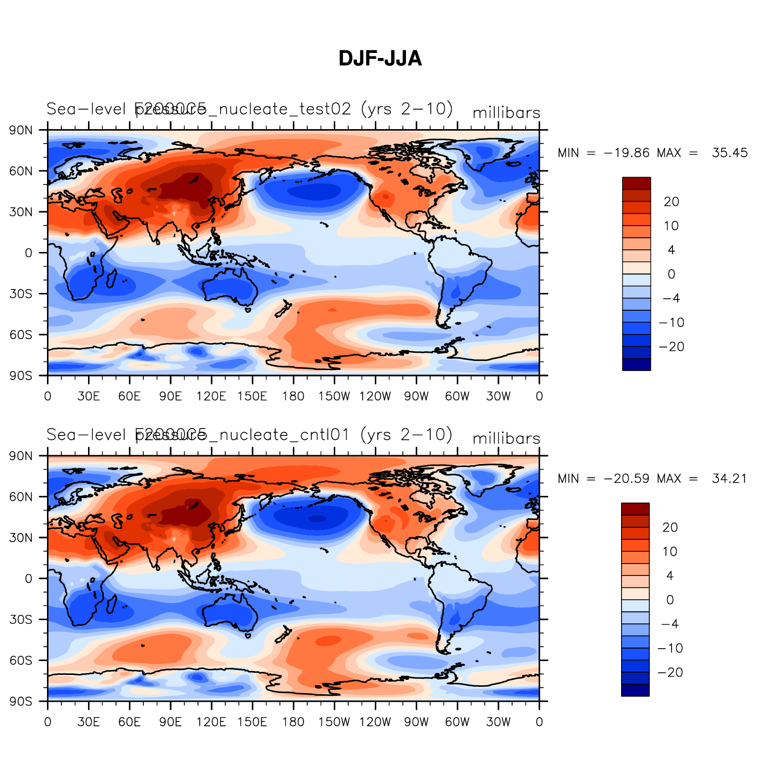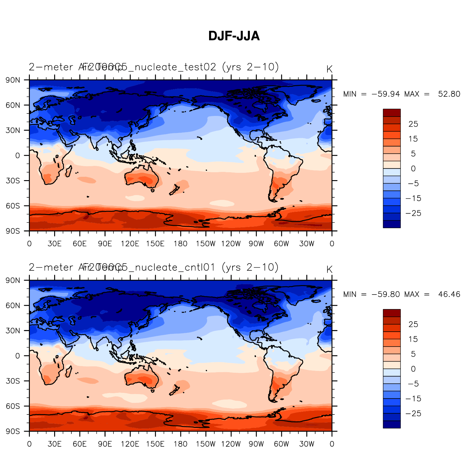 DIAG Set 9 - Horizontal contour plots of DJF-JJA differences
