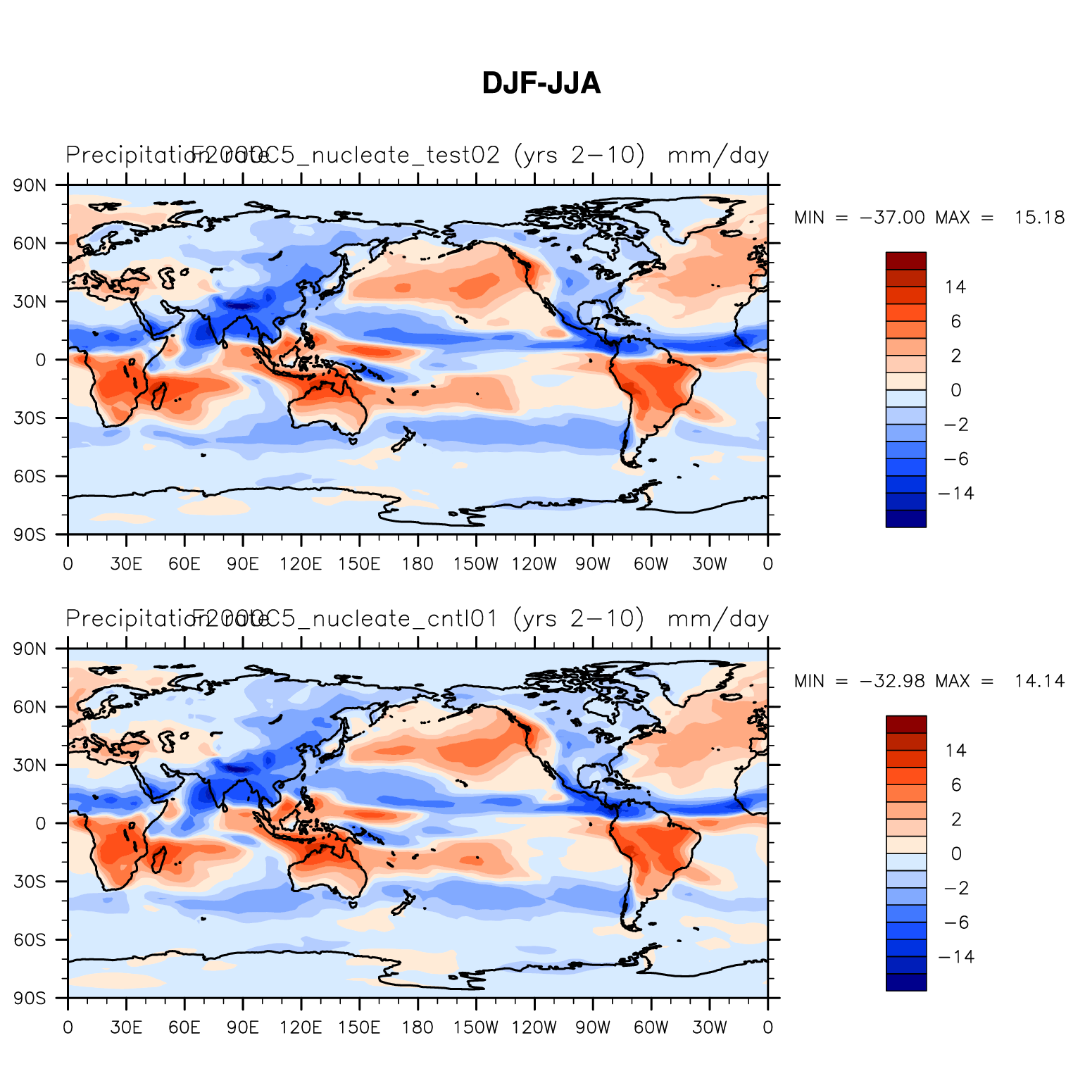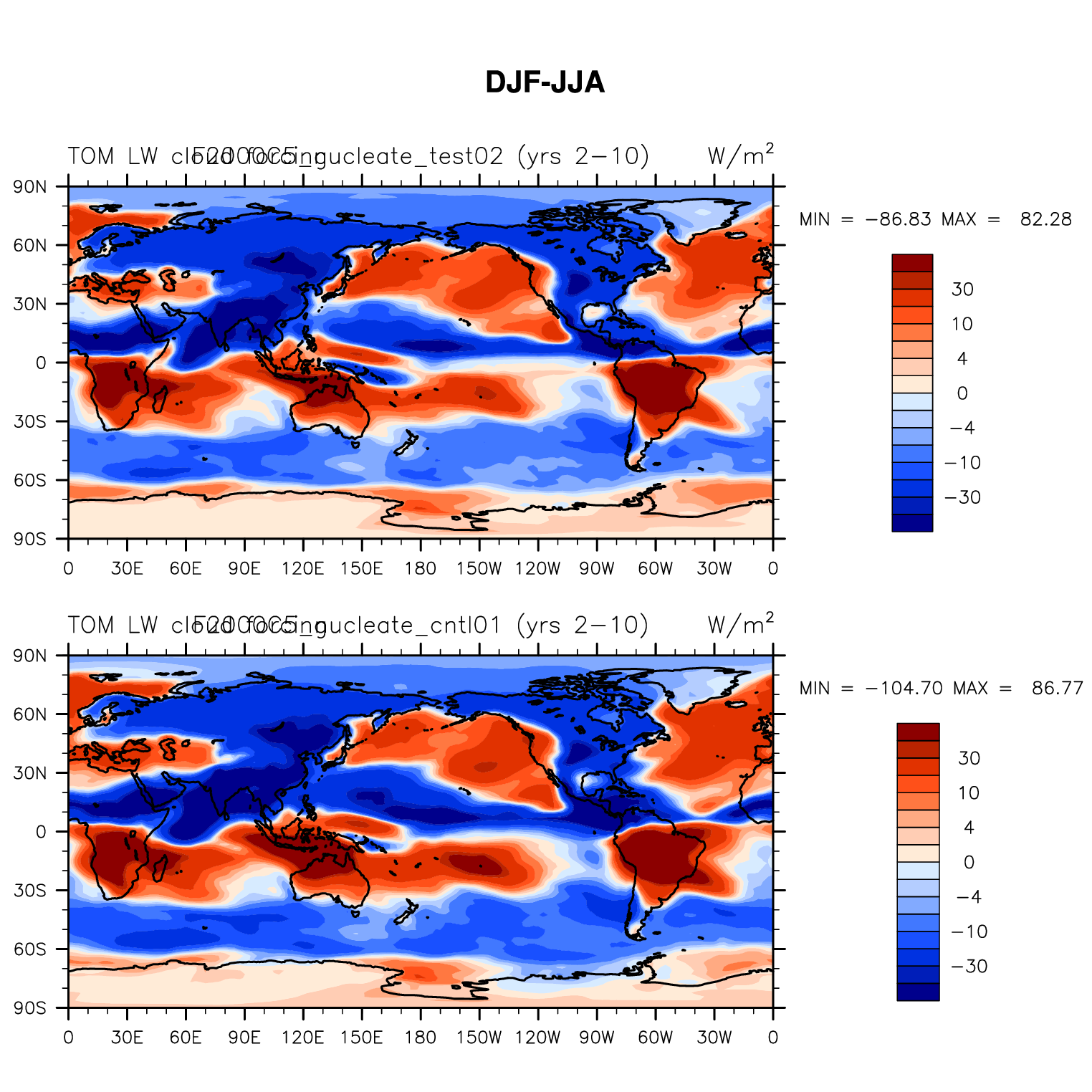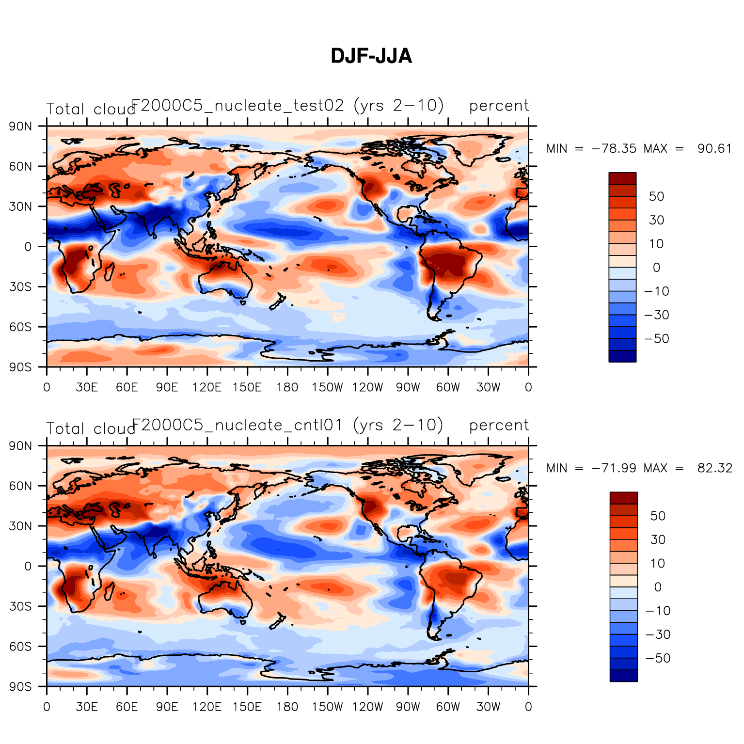 DIAG Set 9 - Horizontal contour plots of DJF-JJA differences