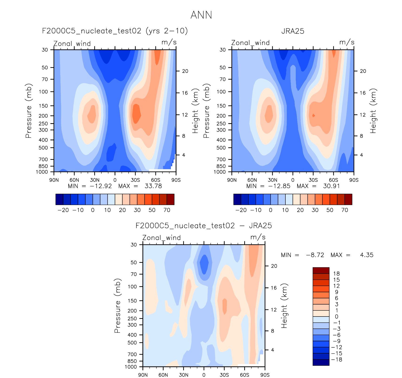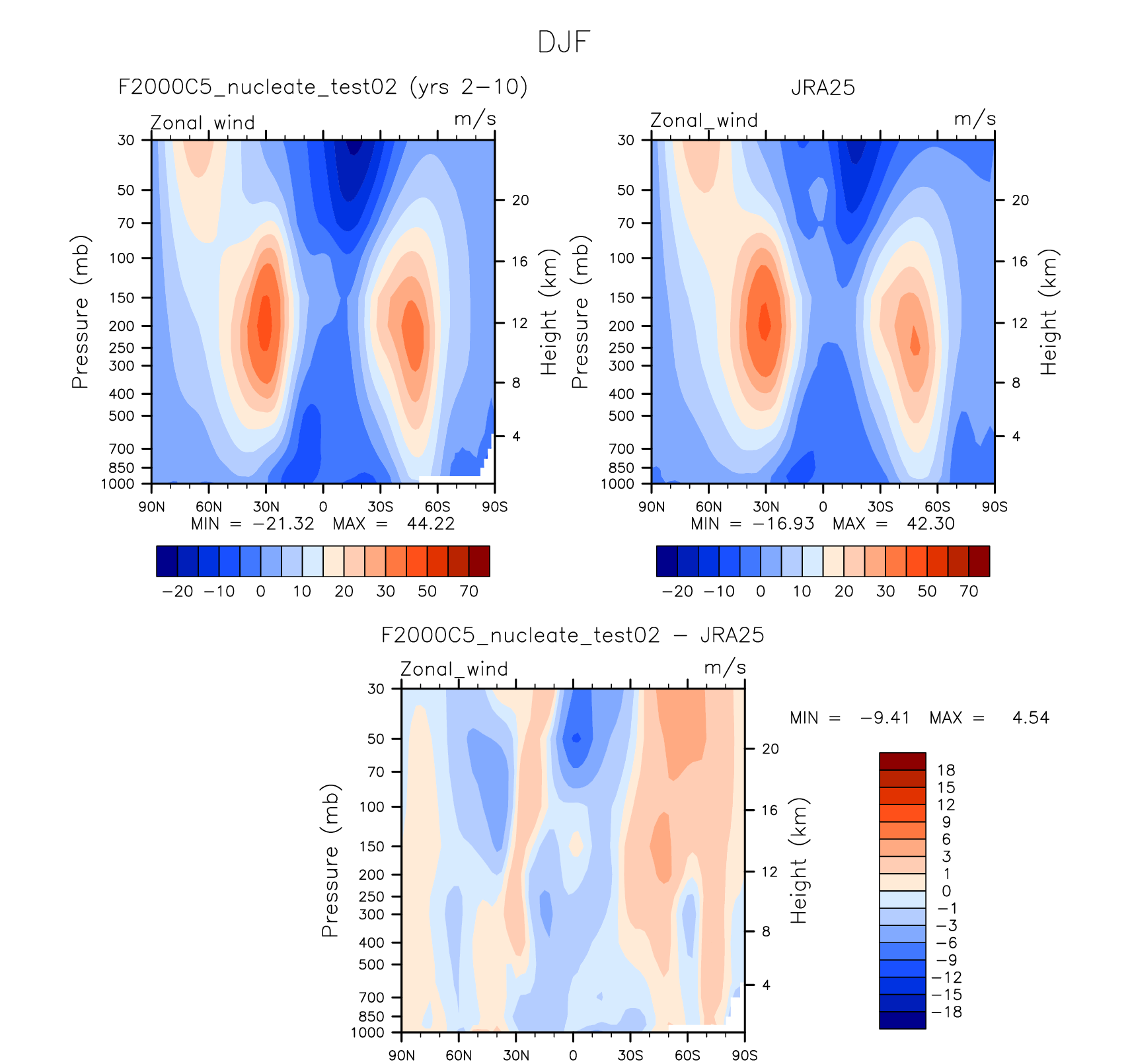 DIAG Set 4 - Vertical contour plots of DJF, JJA and ANN zonal means