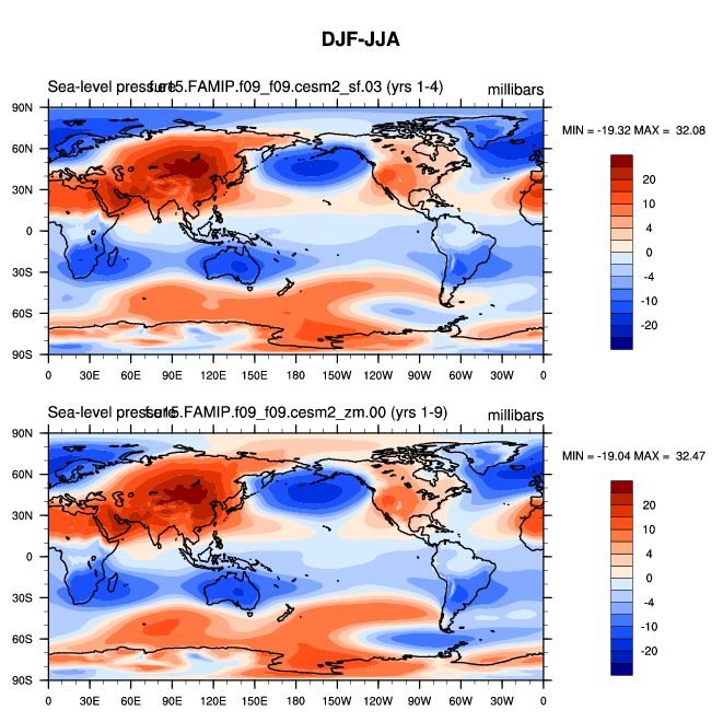 DIAG Set 9 - Horizontal contour plots of DJF-JJA differences