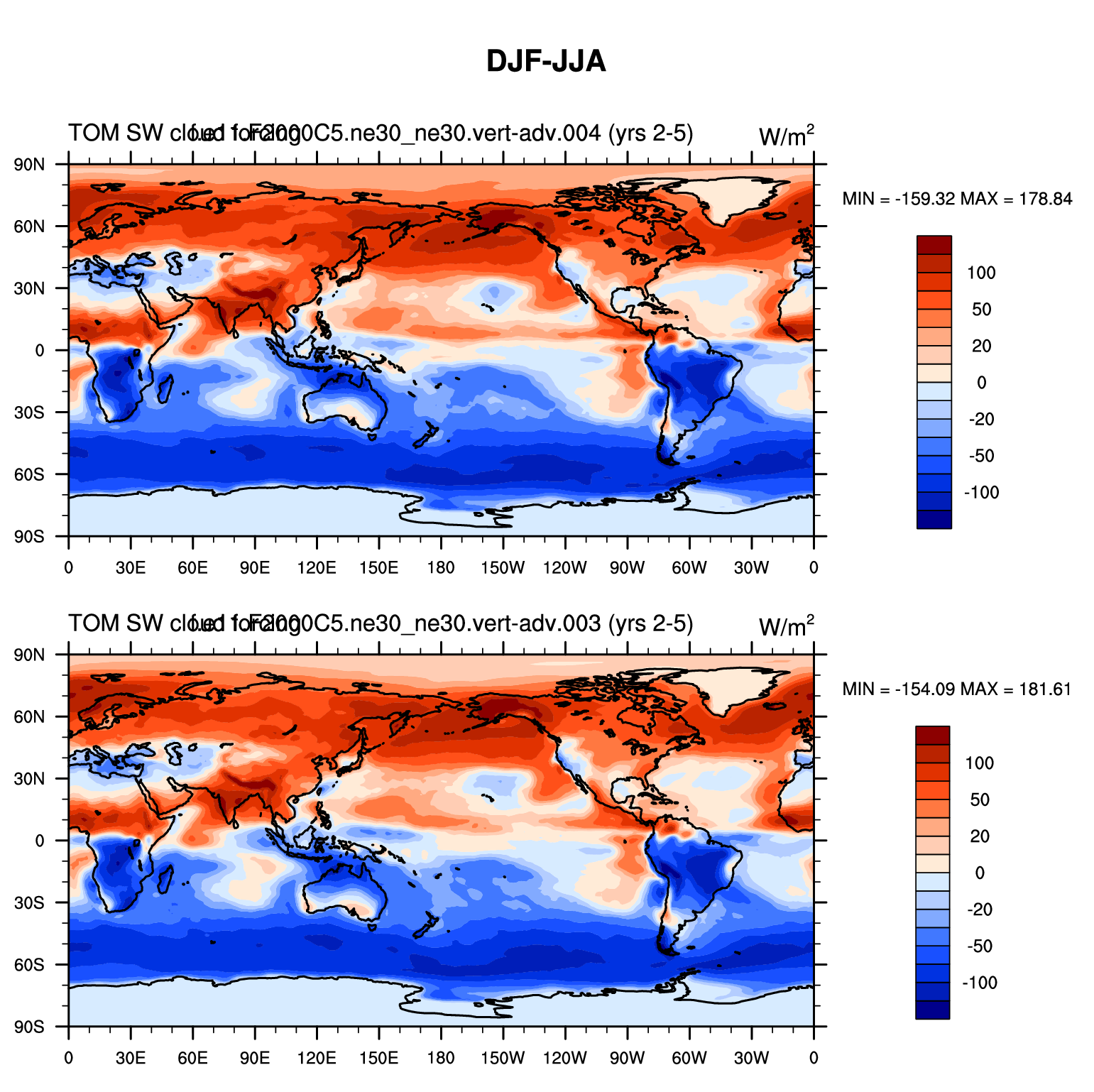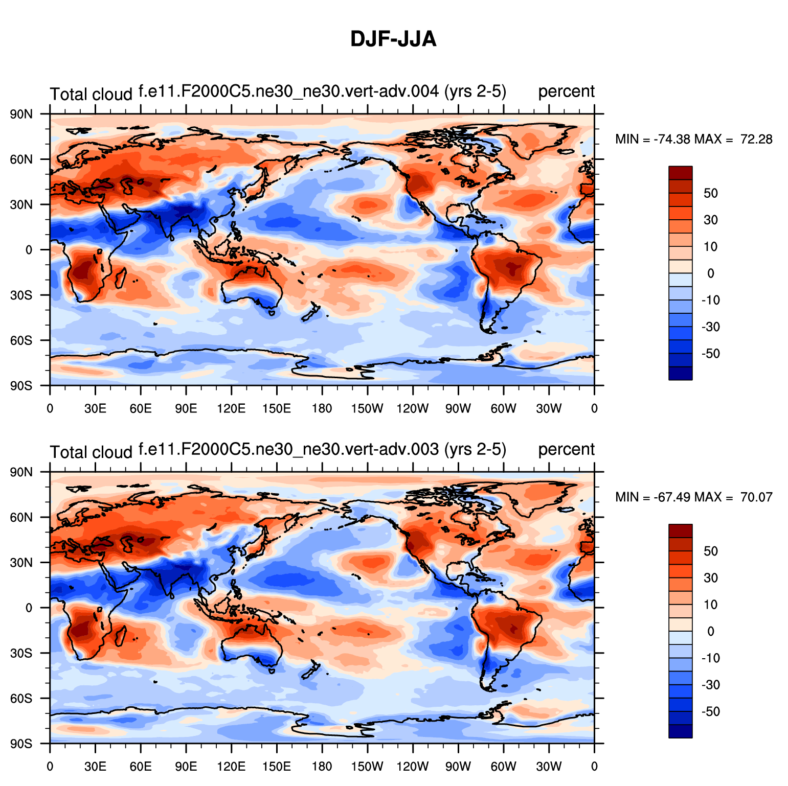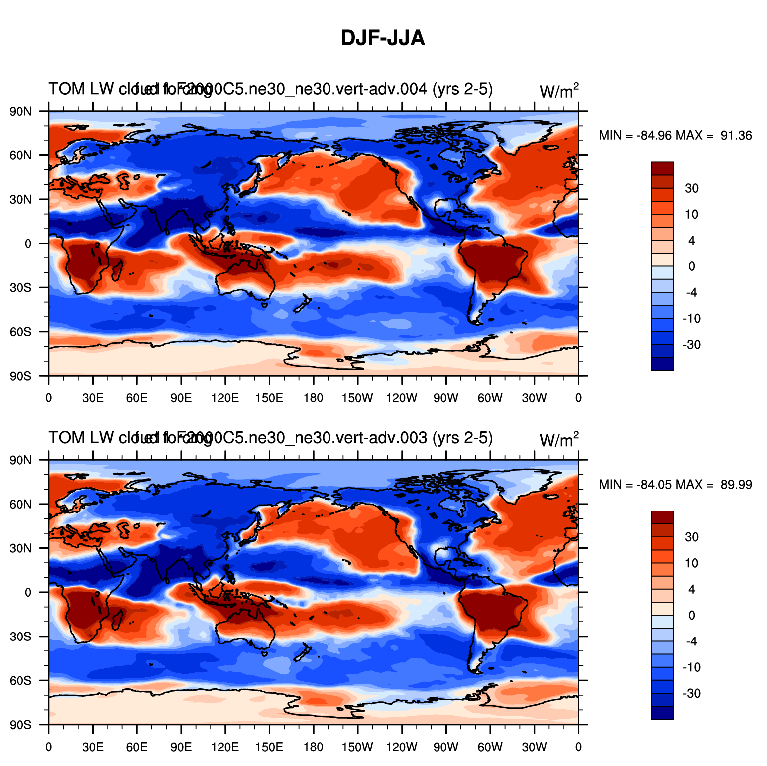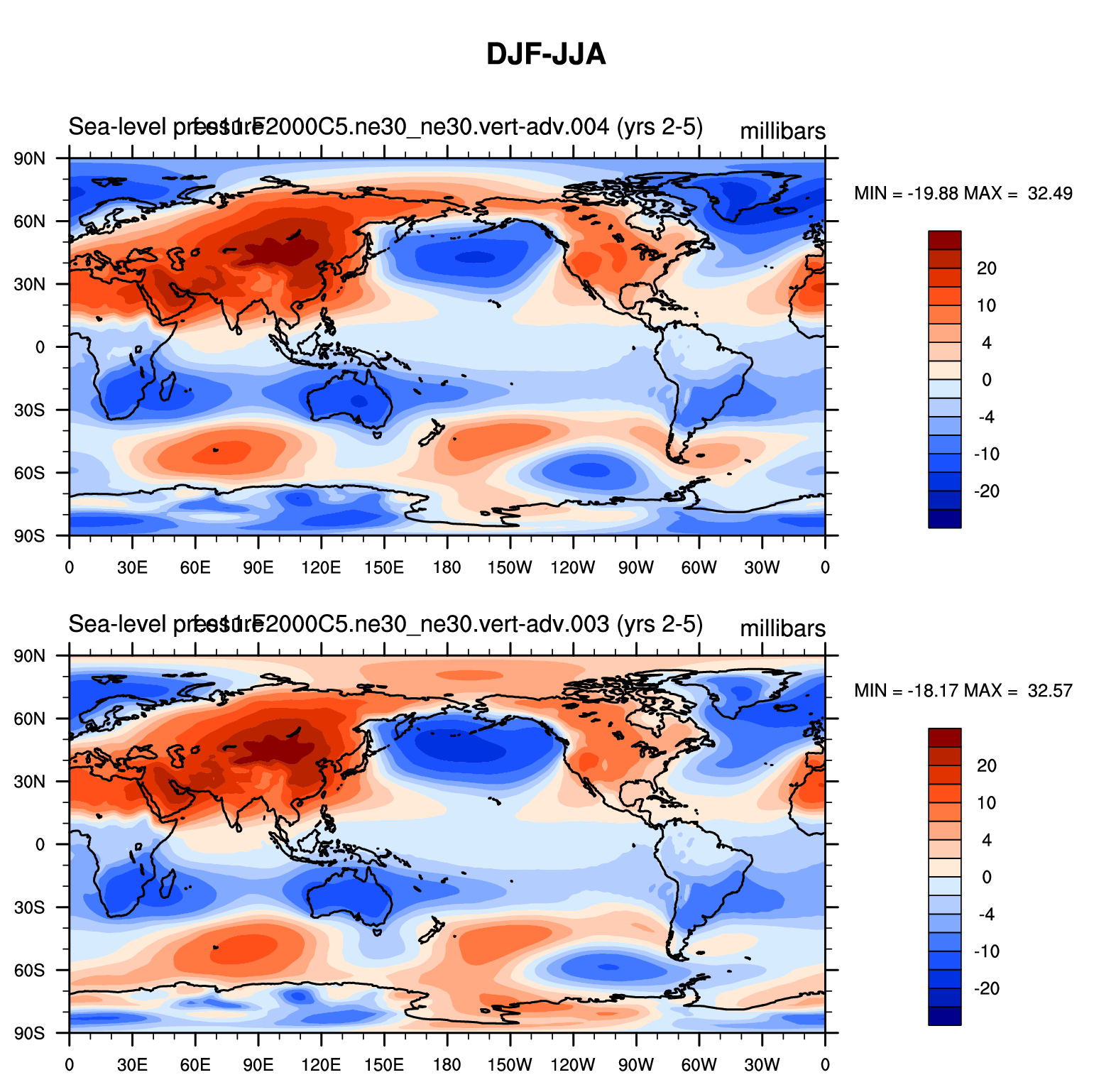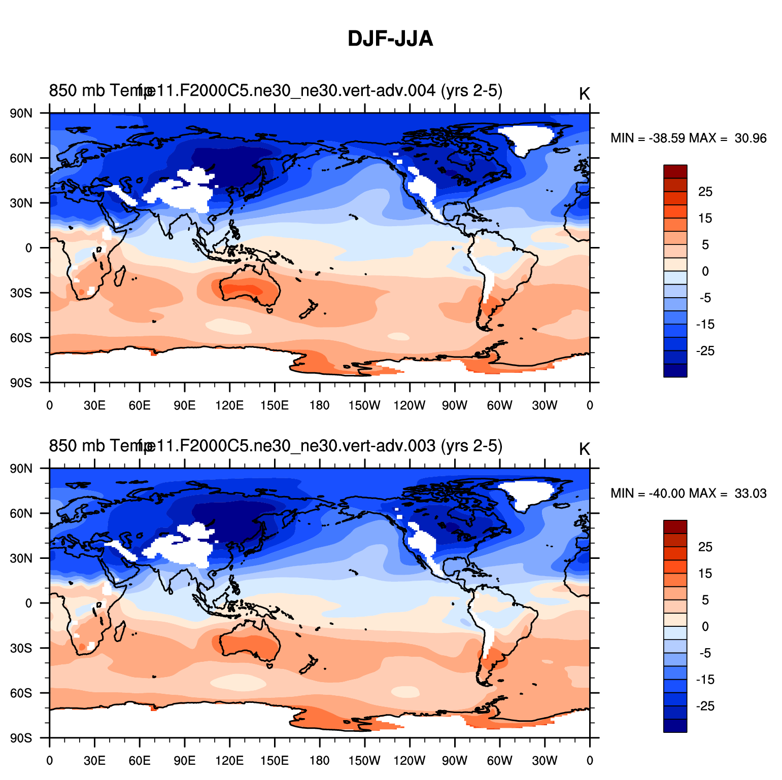 DIAG Set 9 - Horizontal contour plots of DJF-JJA differences