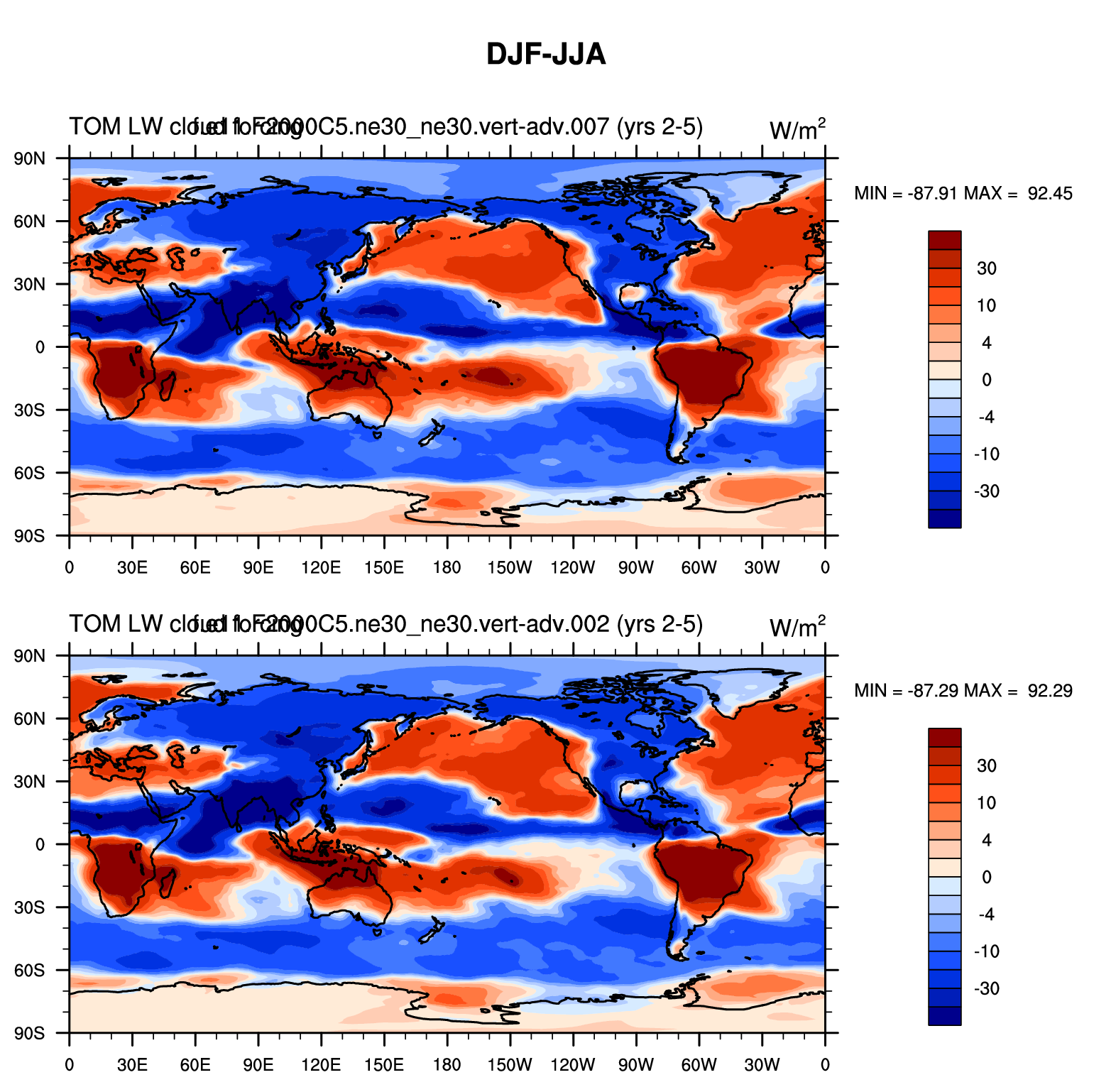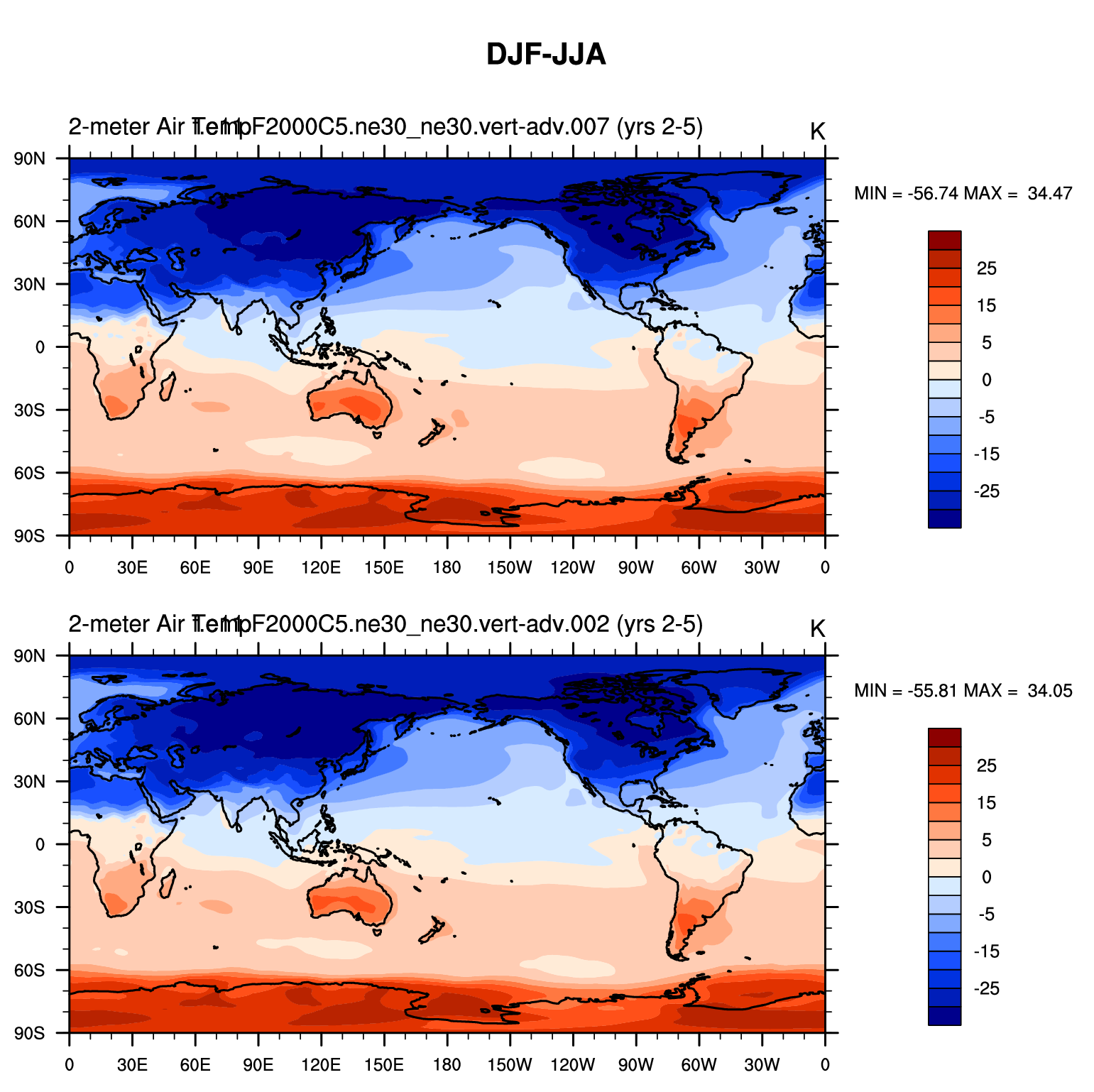 DIAG Set 9 - Horizontal contour plots of DJF-JJA differences