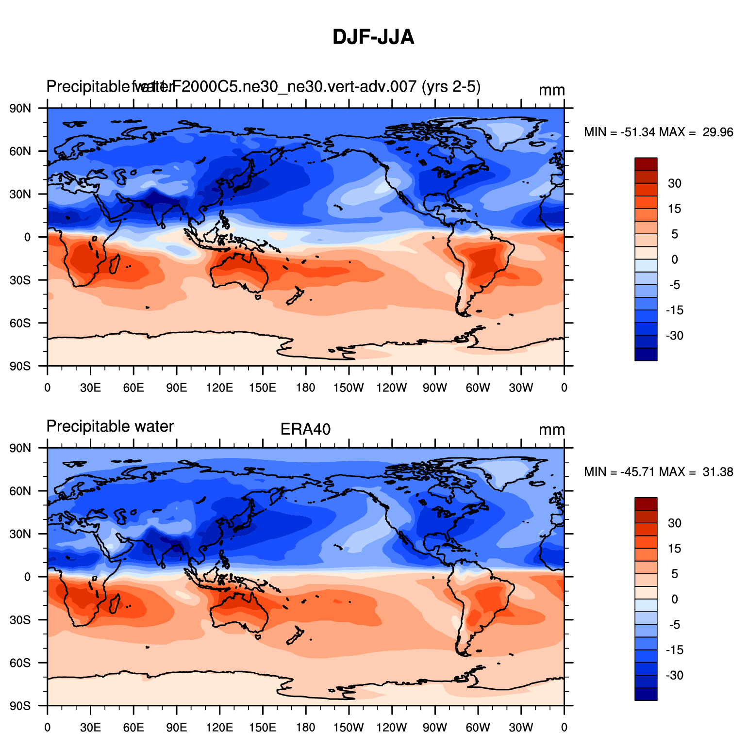 f.e11.F2000C5.ne30_ne30.vert-adv.007 DIAG Set 9 - Horizontal contour plots of DJF-JJA differences