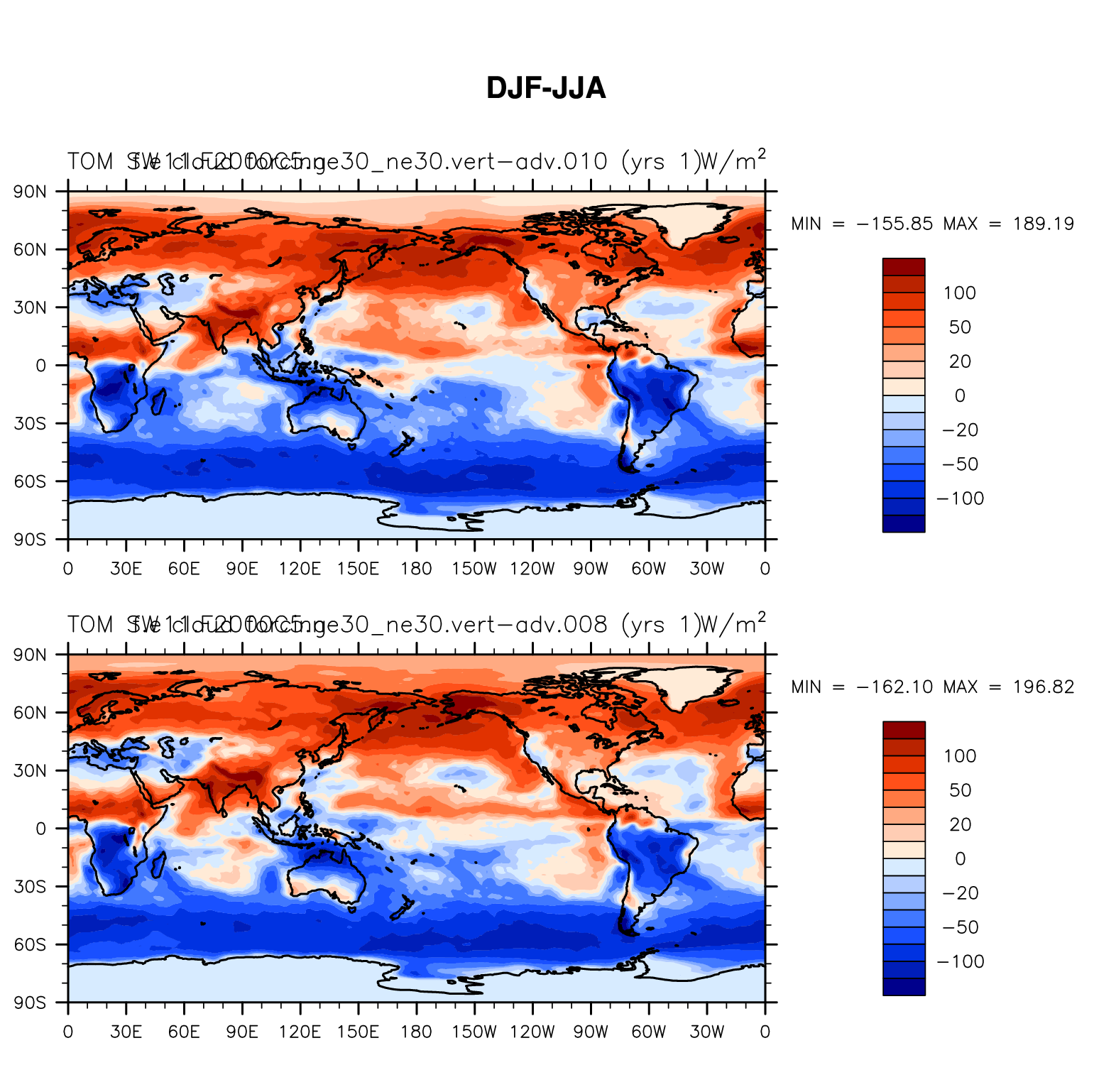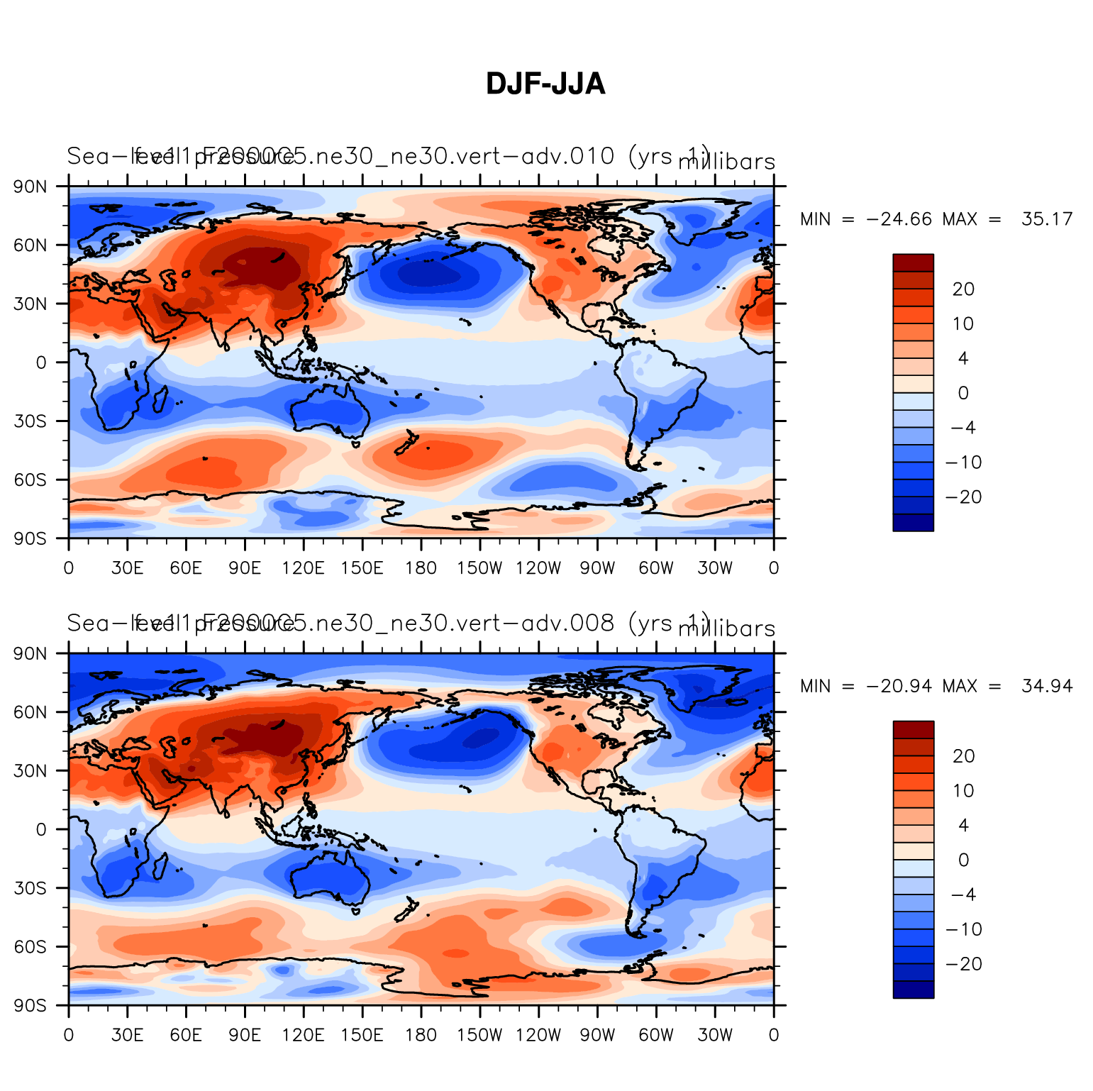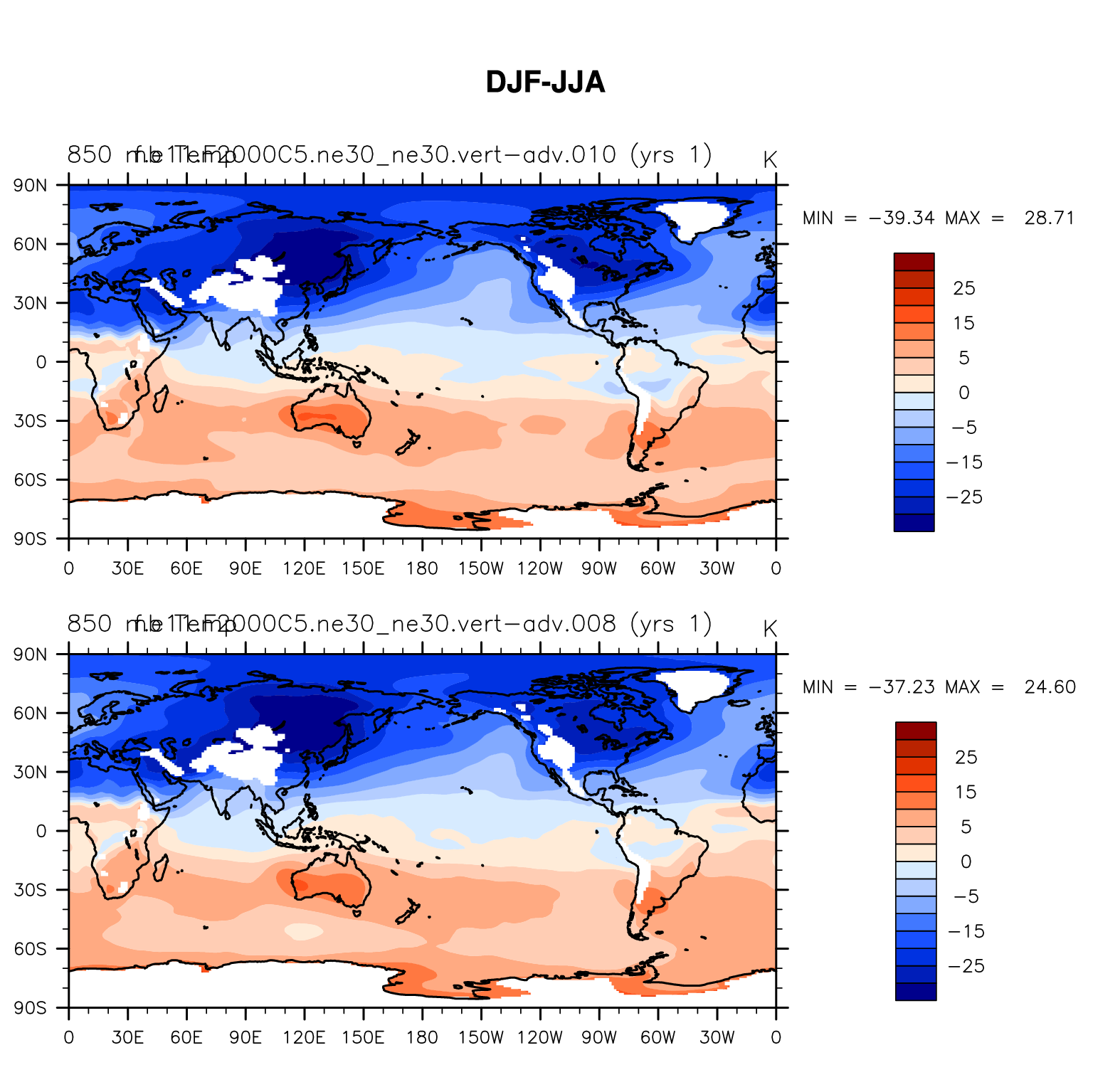 DIAG Set 9 - Horizontal contour plots of DJF-JJA differences