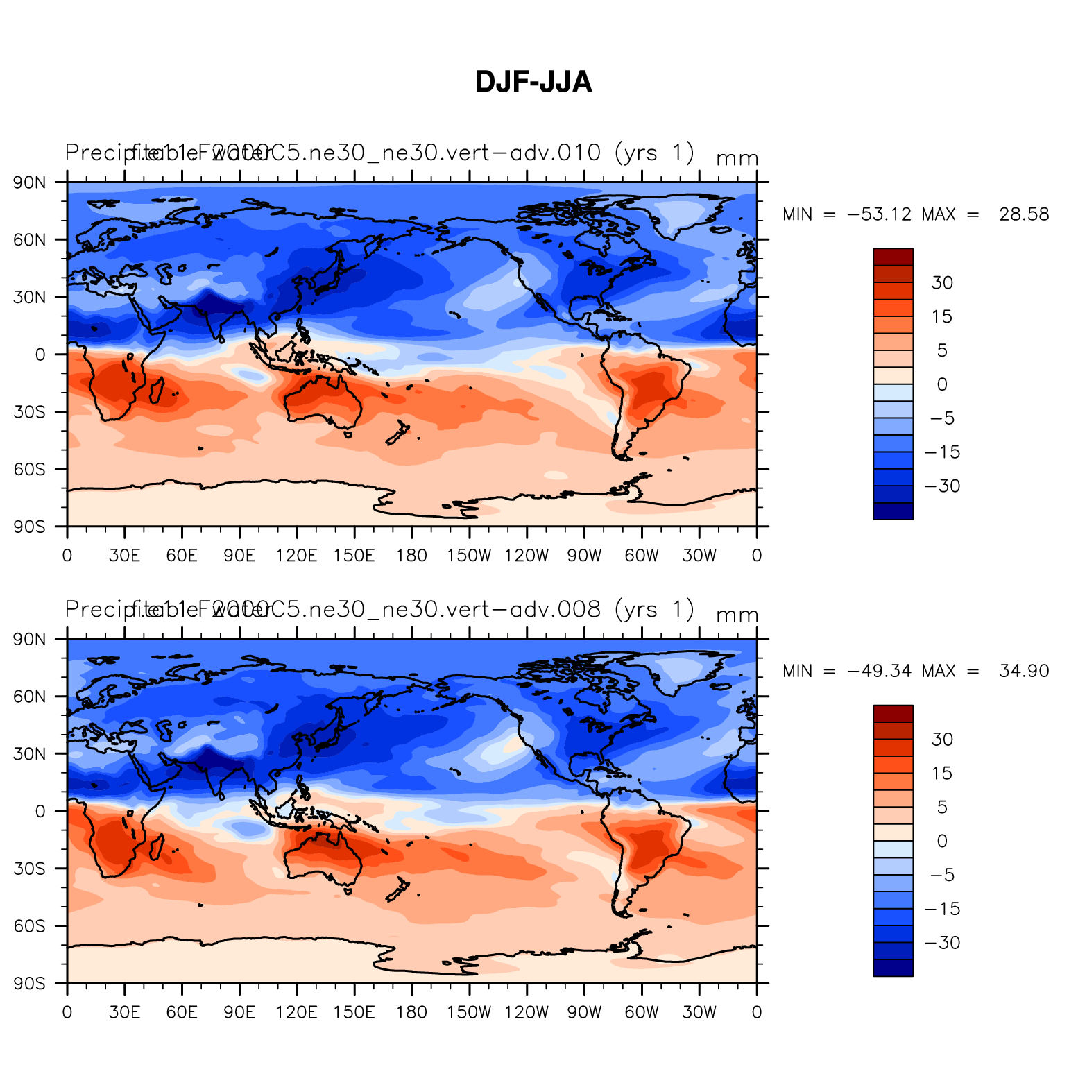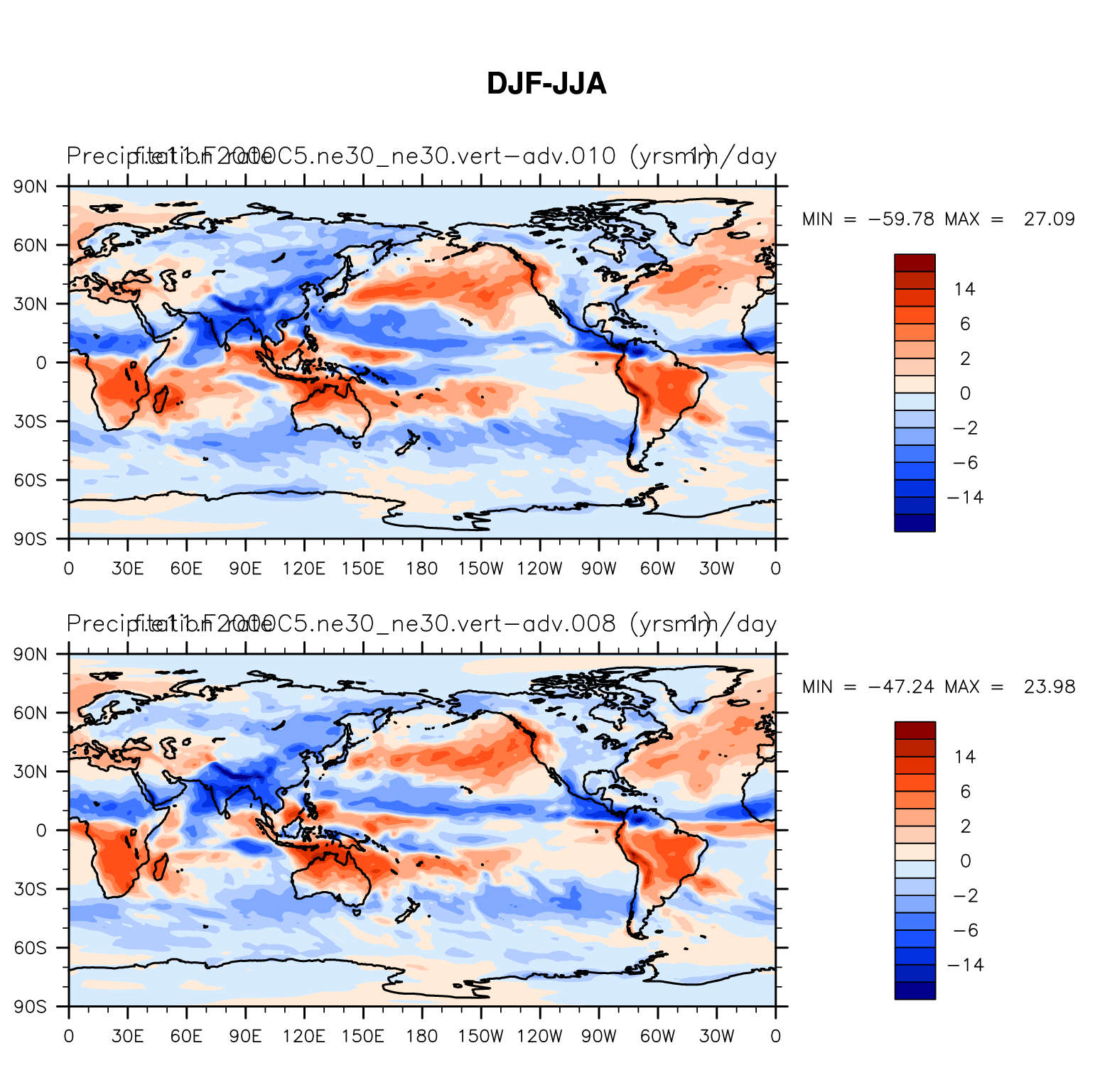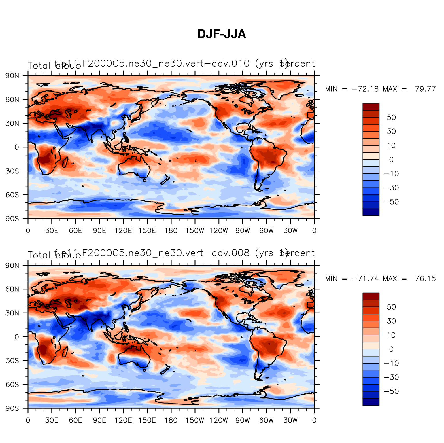 DIAG Set 9 - Horizontal contour plots of DJF-JJA differences