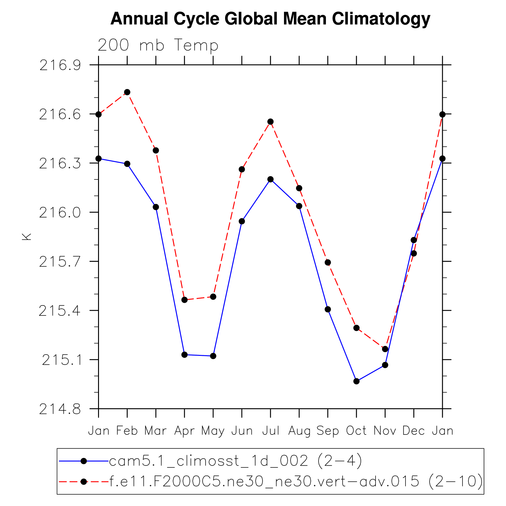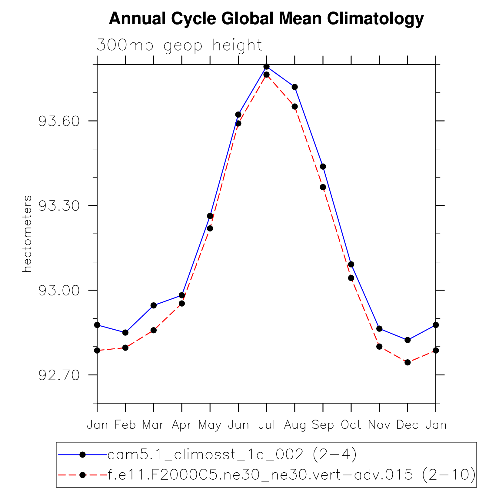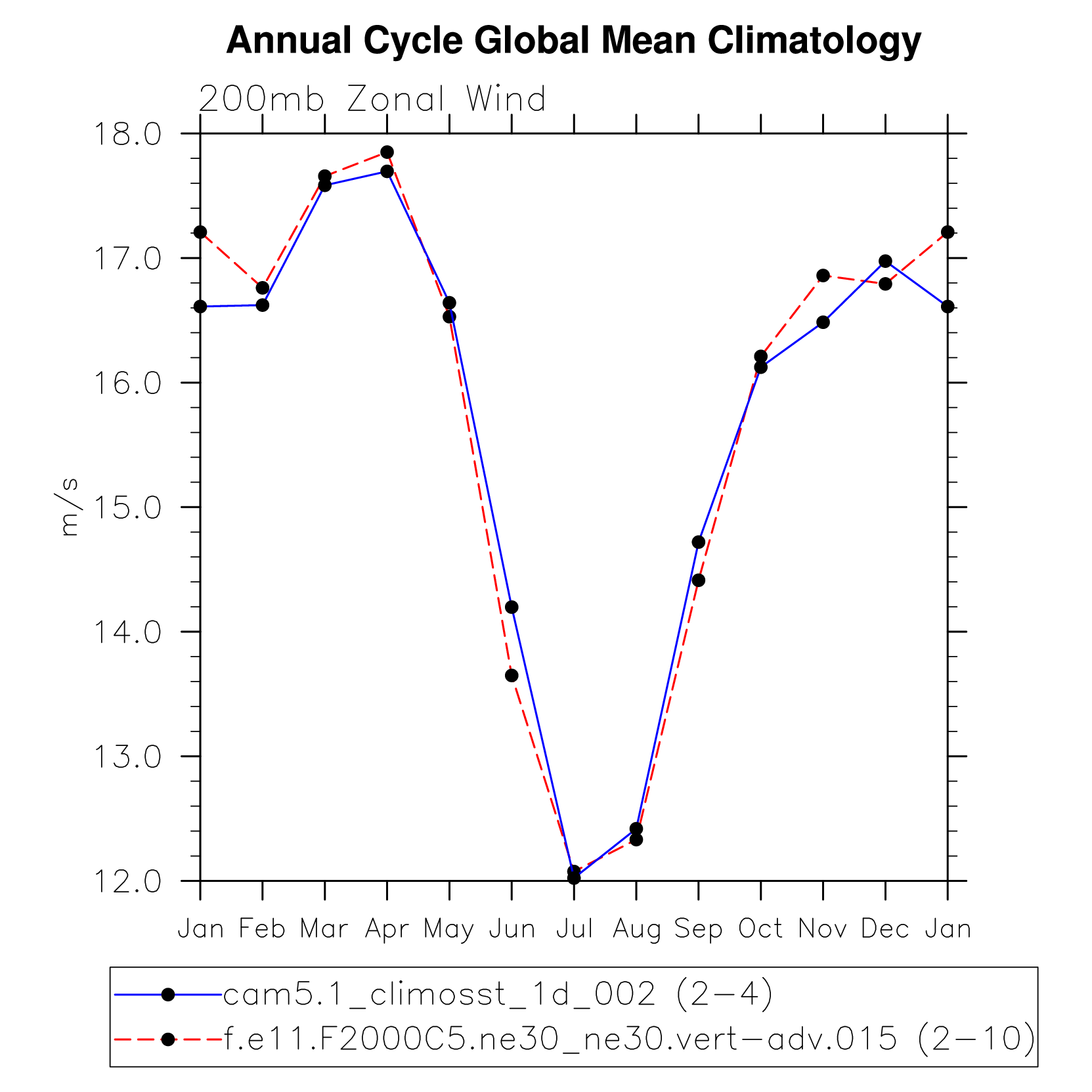DIAG Set 10 - Annual cycle line plots of global means