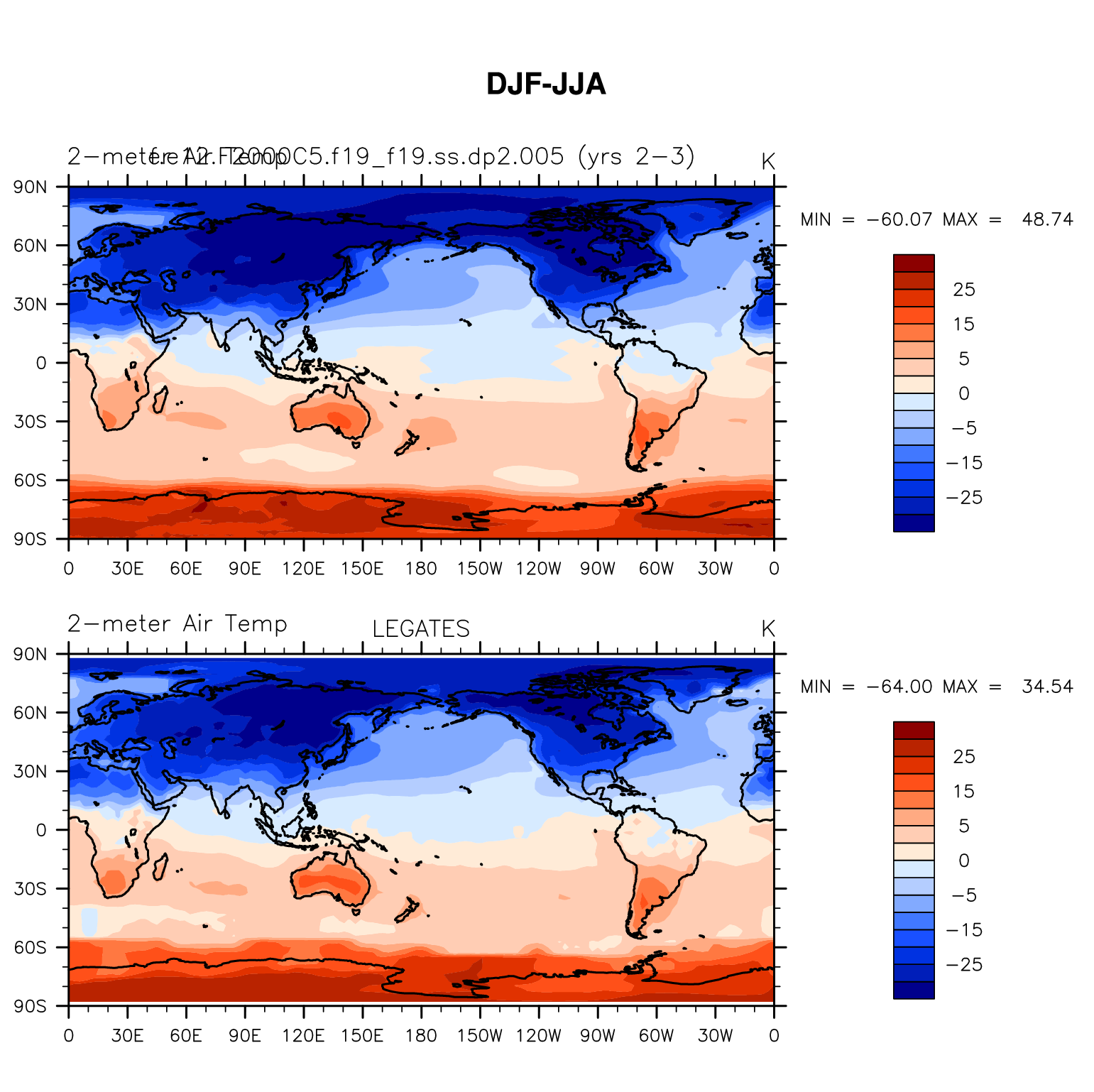 f.e12.F2000C5.f19_f19.ss.dp2.005 DIAG Set 9 - Horizontal contour plots of DJF-JJA differences