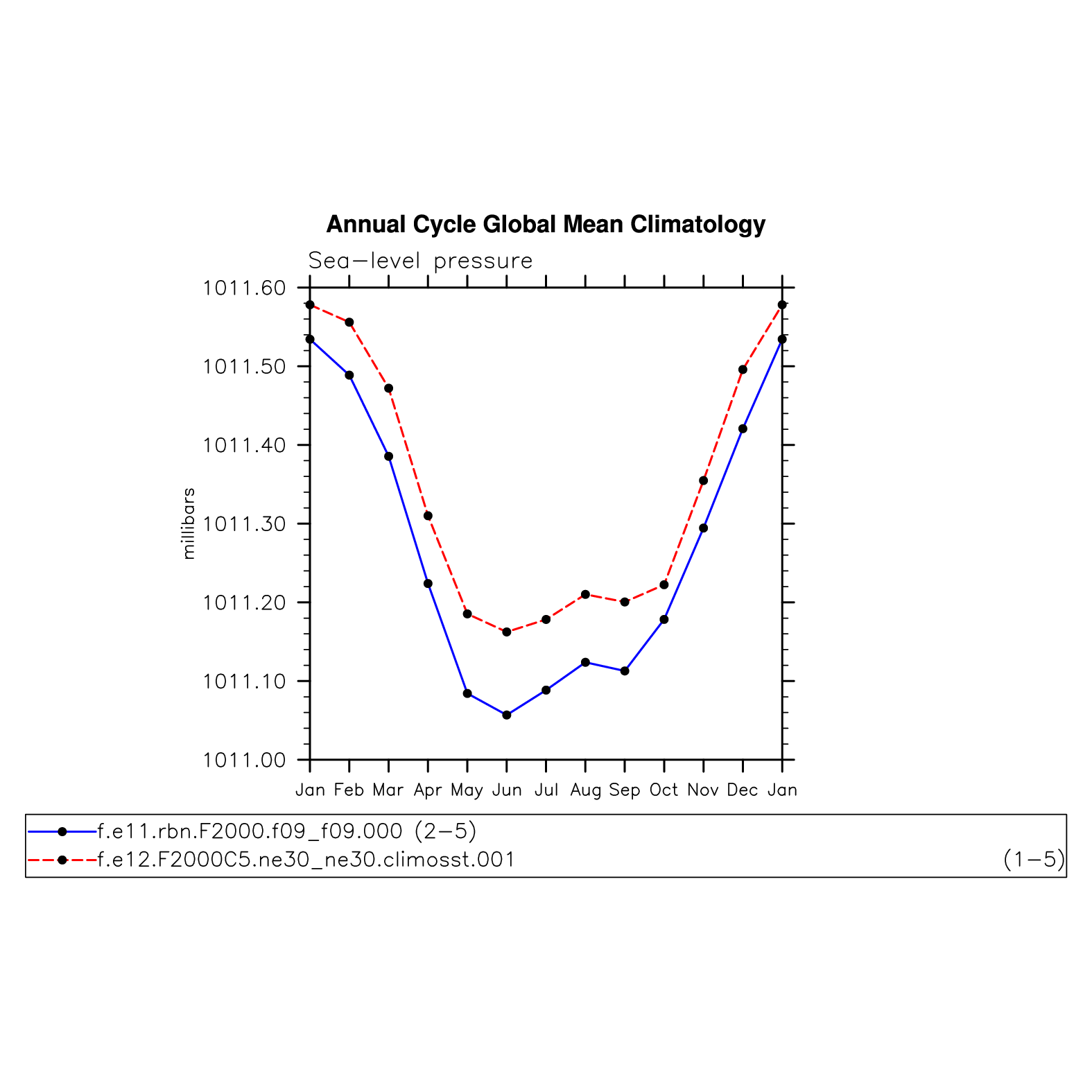 DIAG Set 10 - Annual cycle line plots of global means