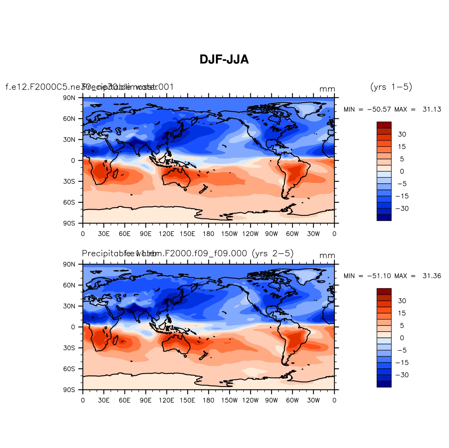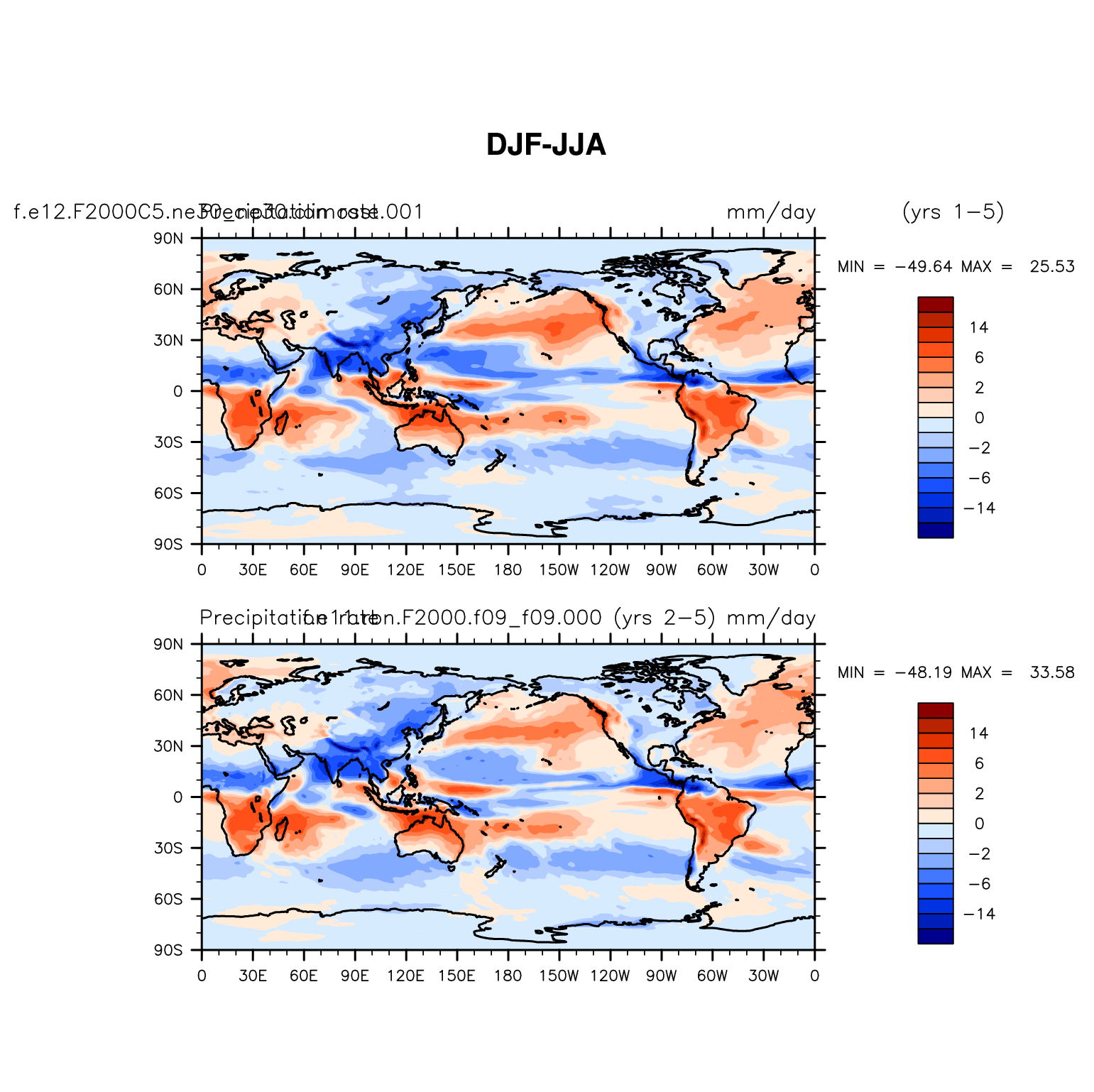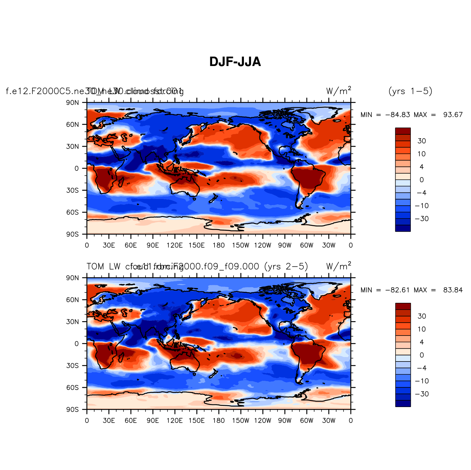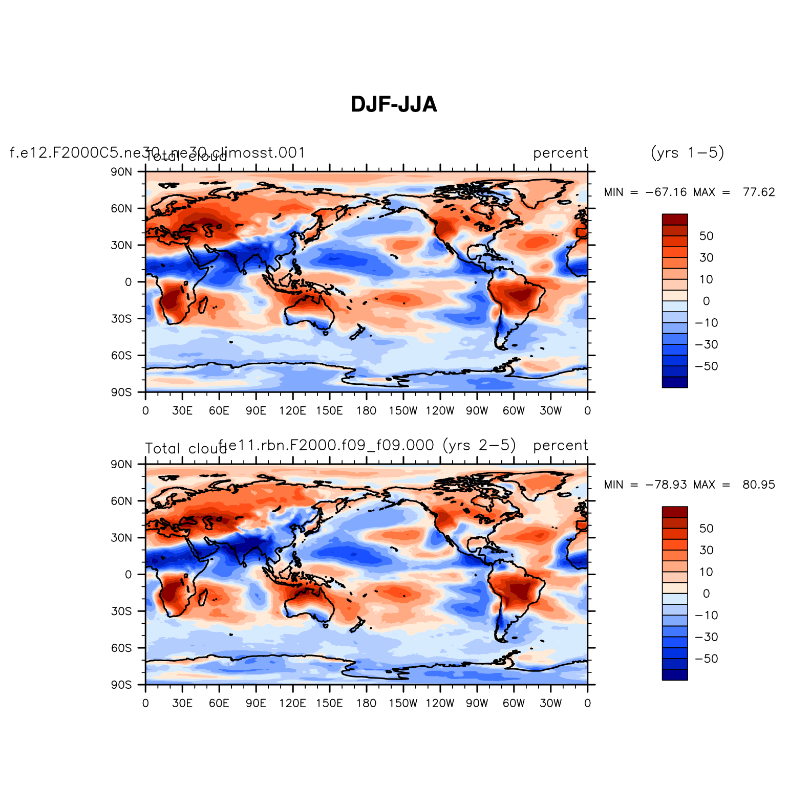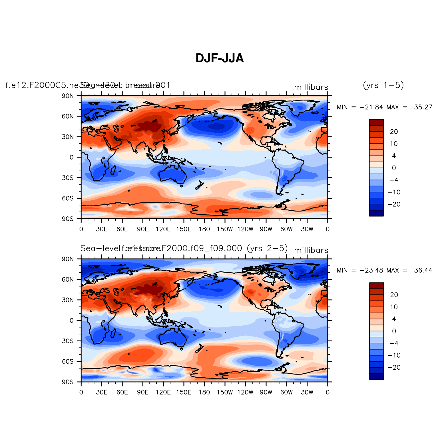 DIAG Set 9 - Horizontal contour plots of DJF-JJA differences