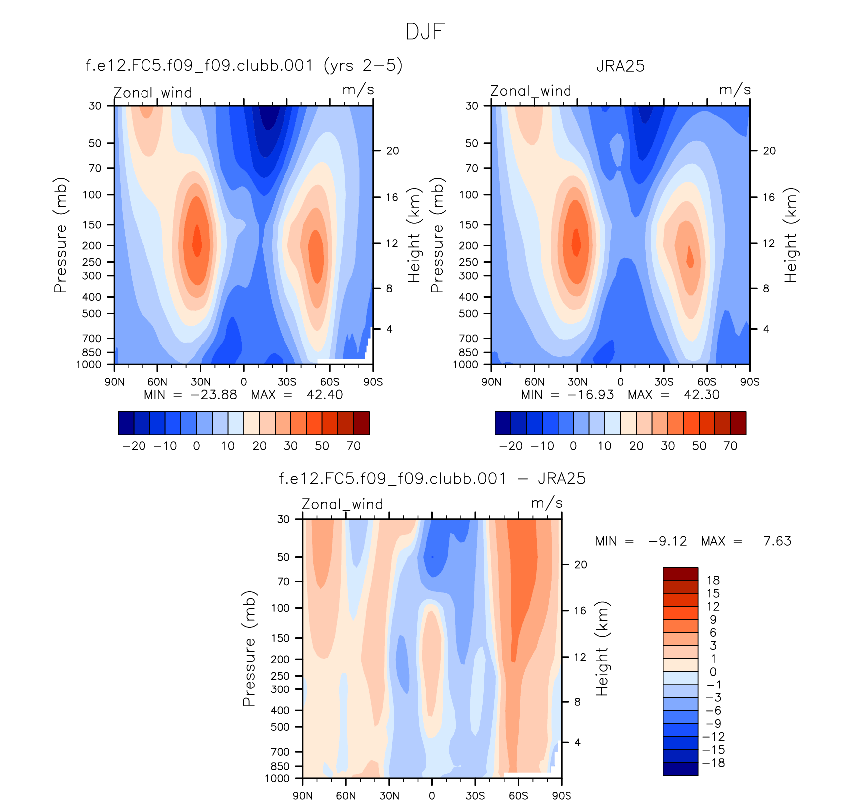 DIAG Set 4 - Vertical contour plots of DJF, JJA and ANN zonal means
