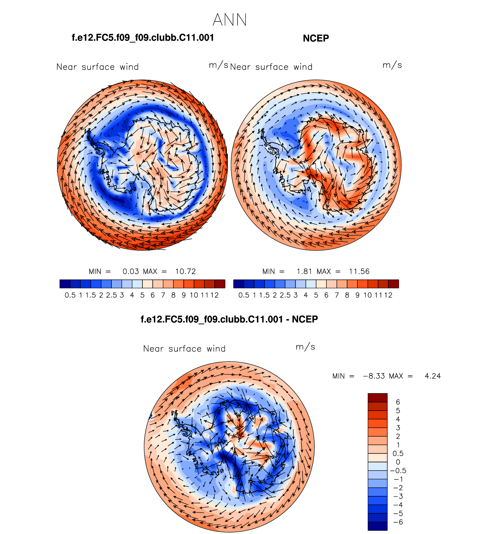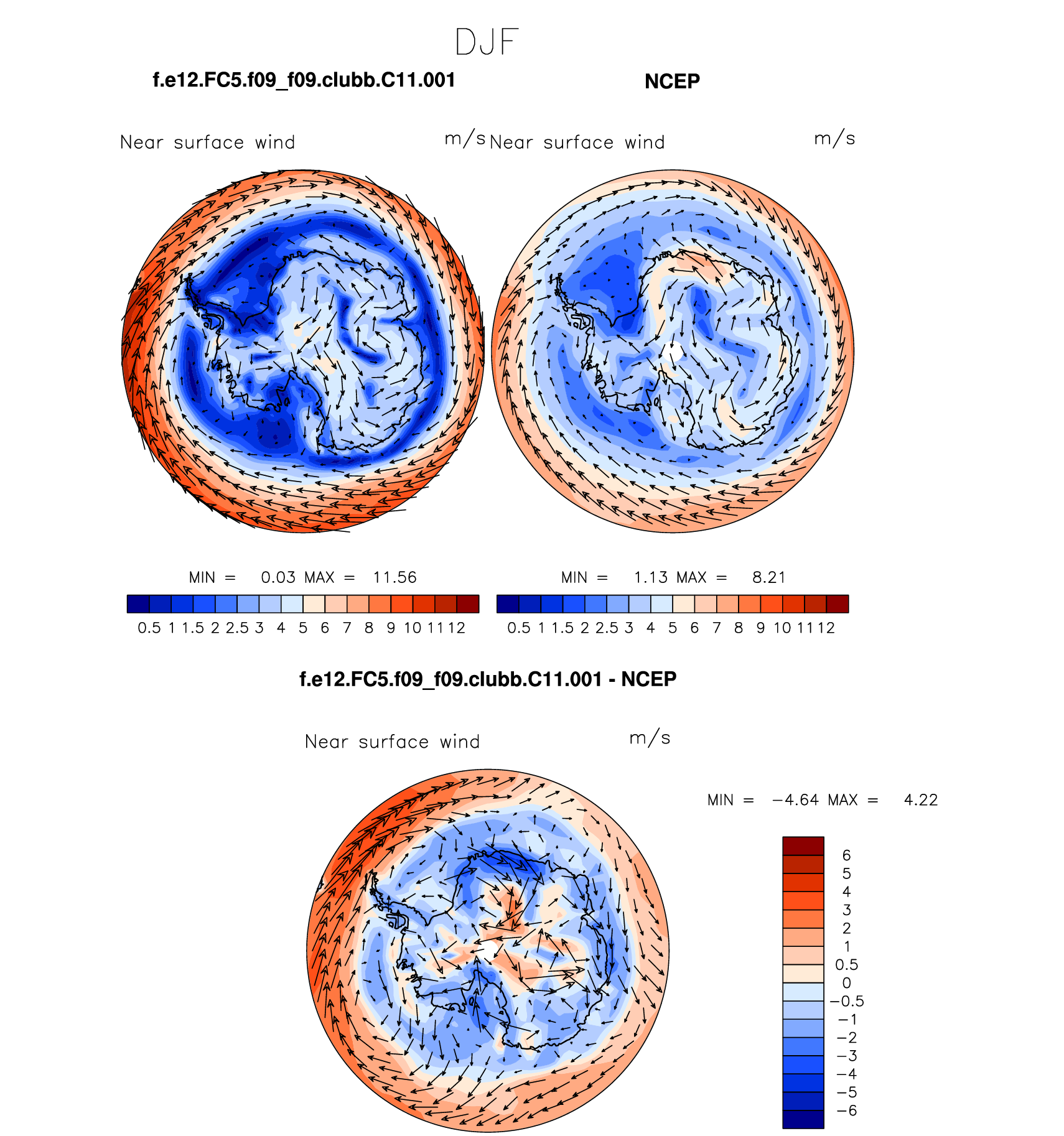 f.e12.FC5.f09_f09.clubb.C11.001 DIAG Set 7 - Polar contour/vector plots of DJF, JJA and ANN means