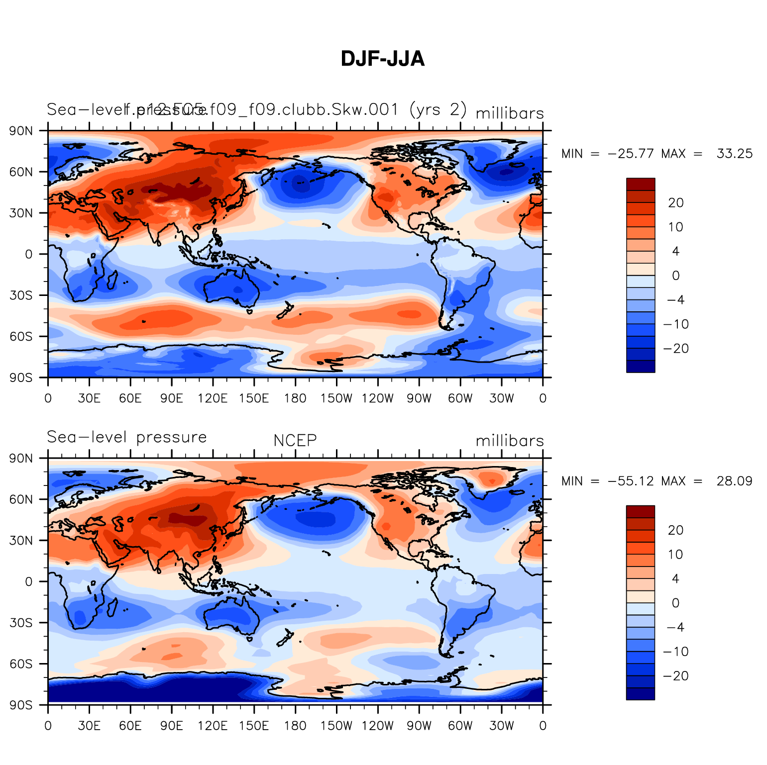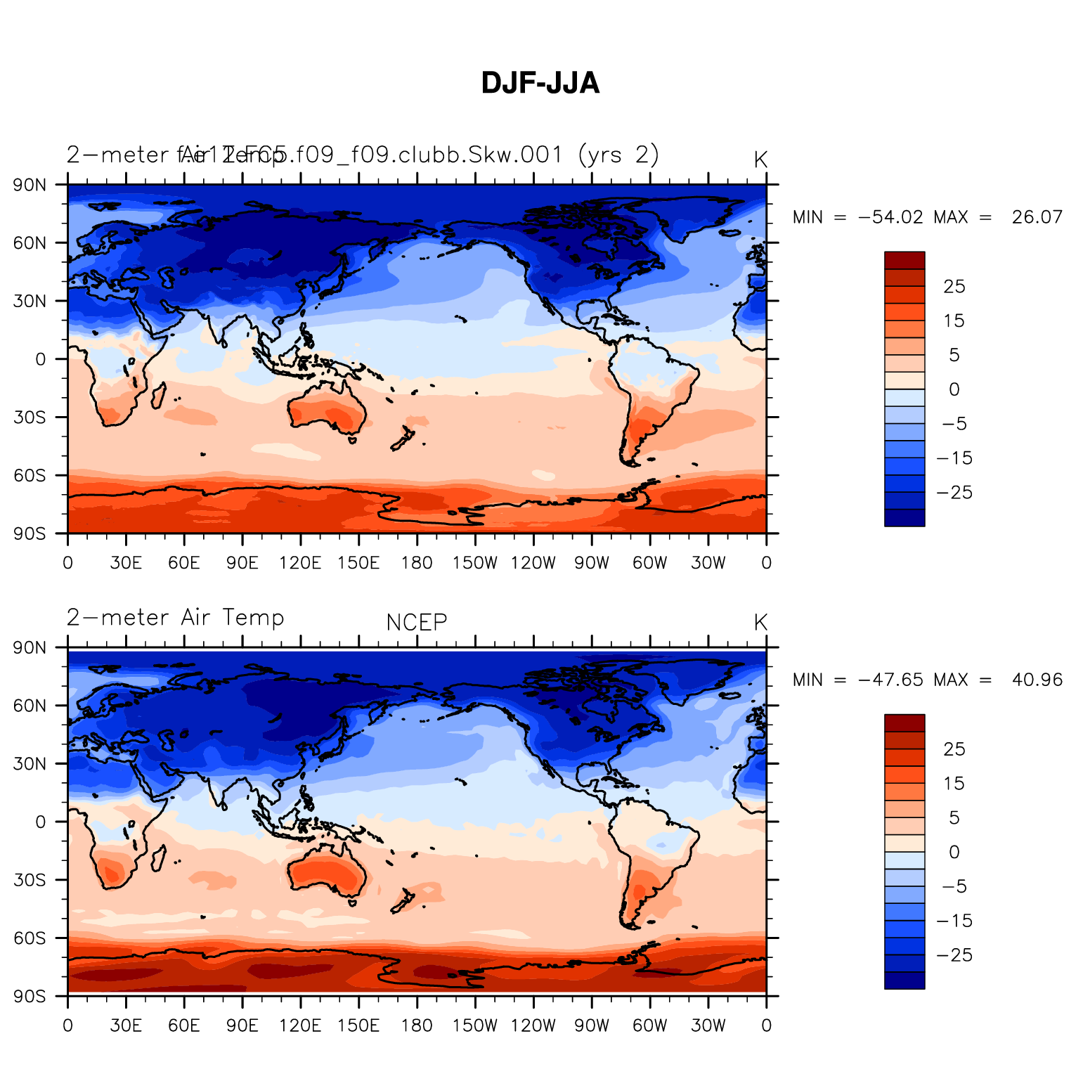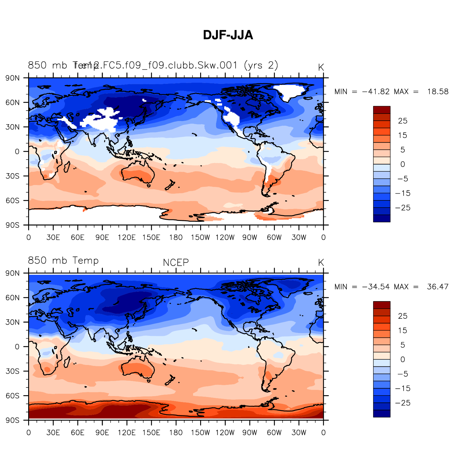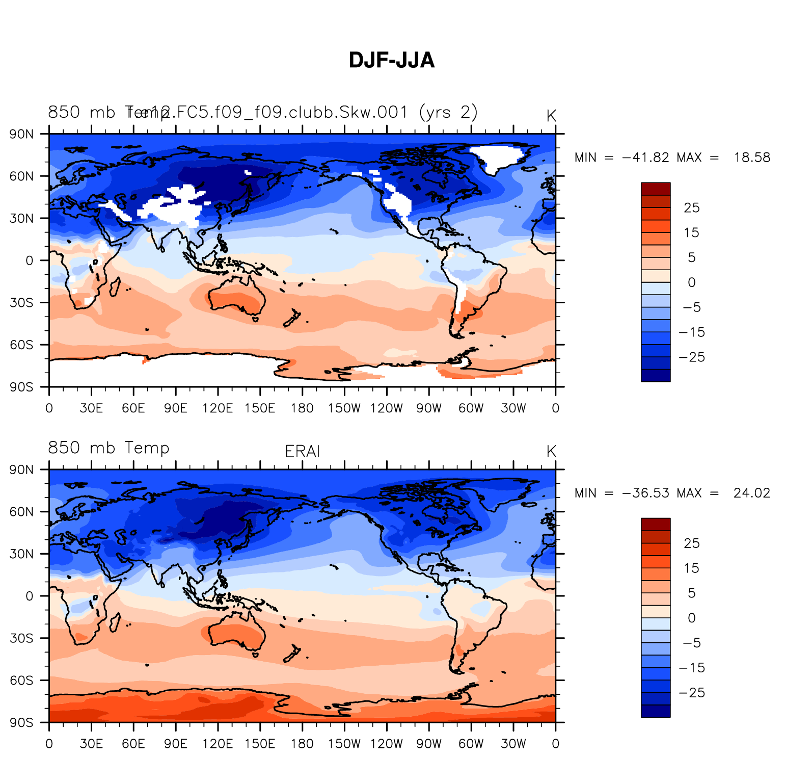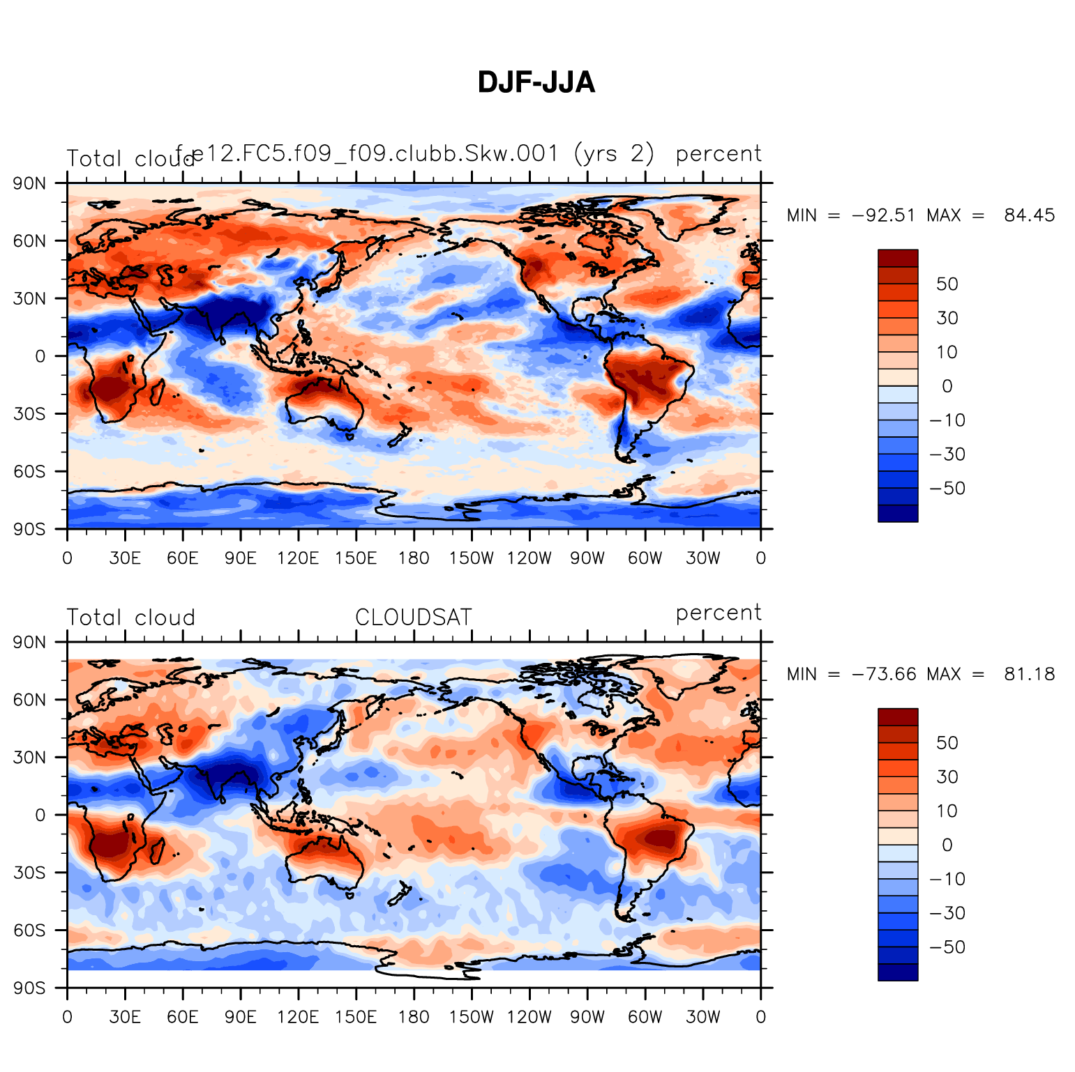 f.e12.FC5.f09_f09.clubb.Skw.001 DIAG Set 9 - Horizontal contour plots of DJF-JJA differences
