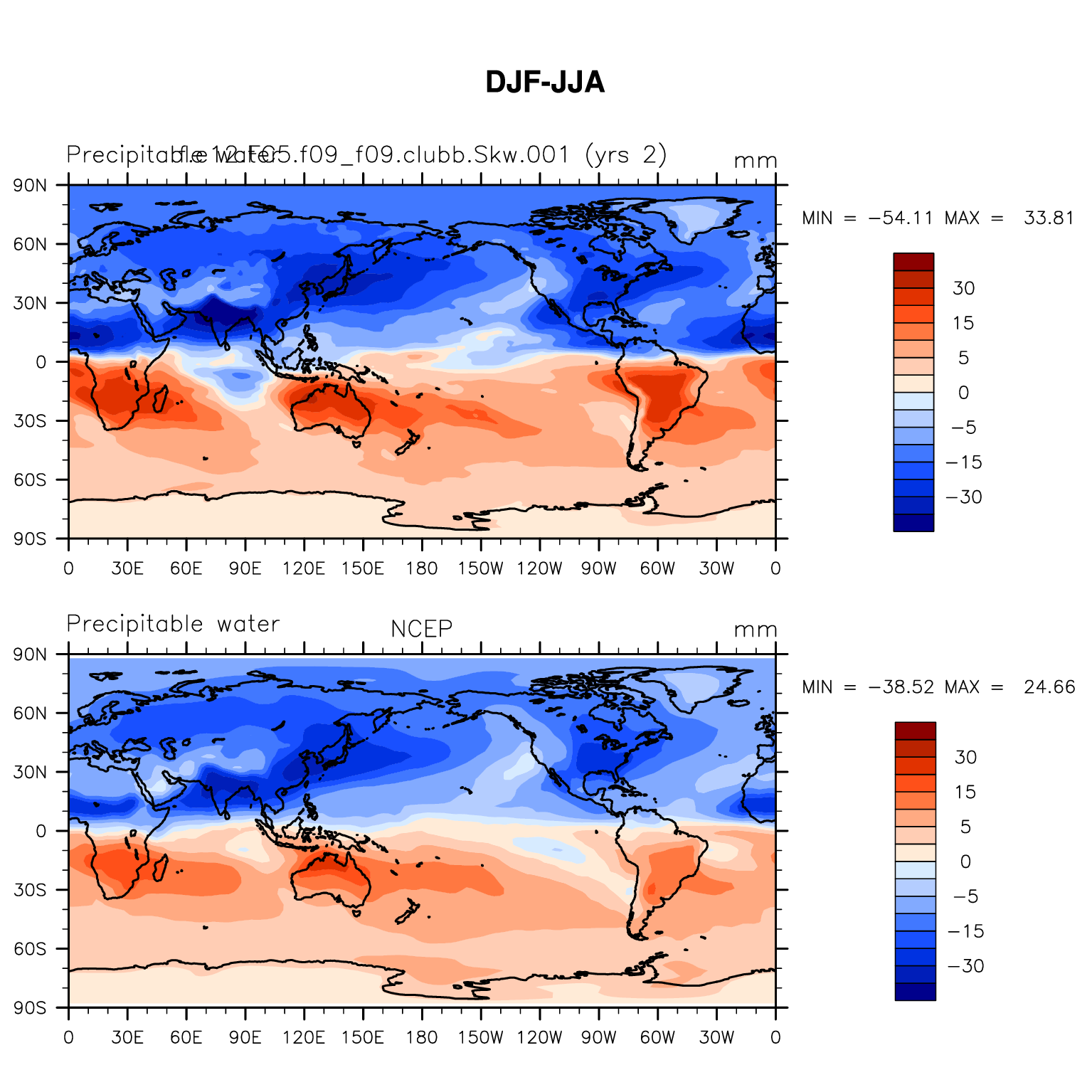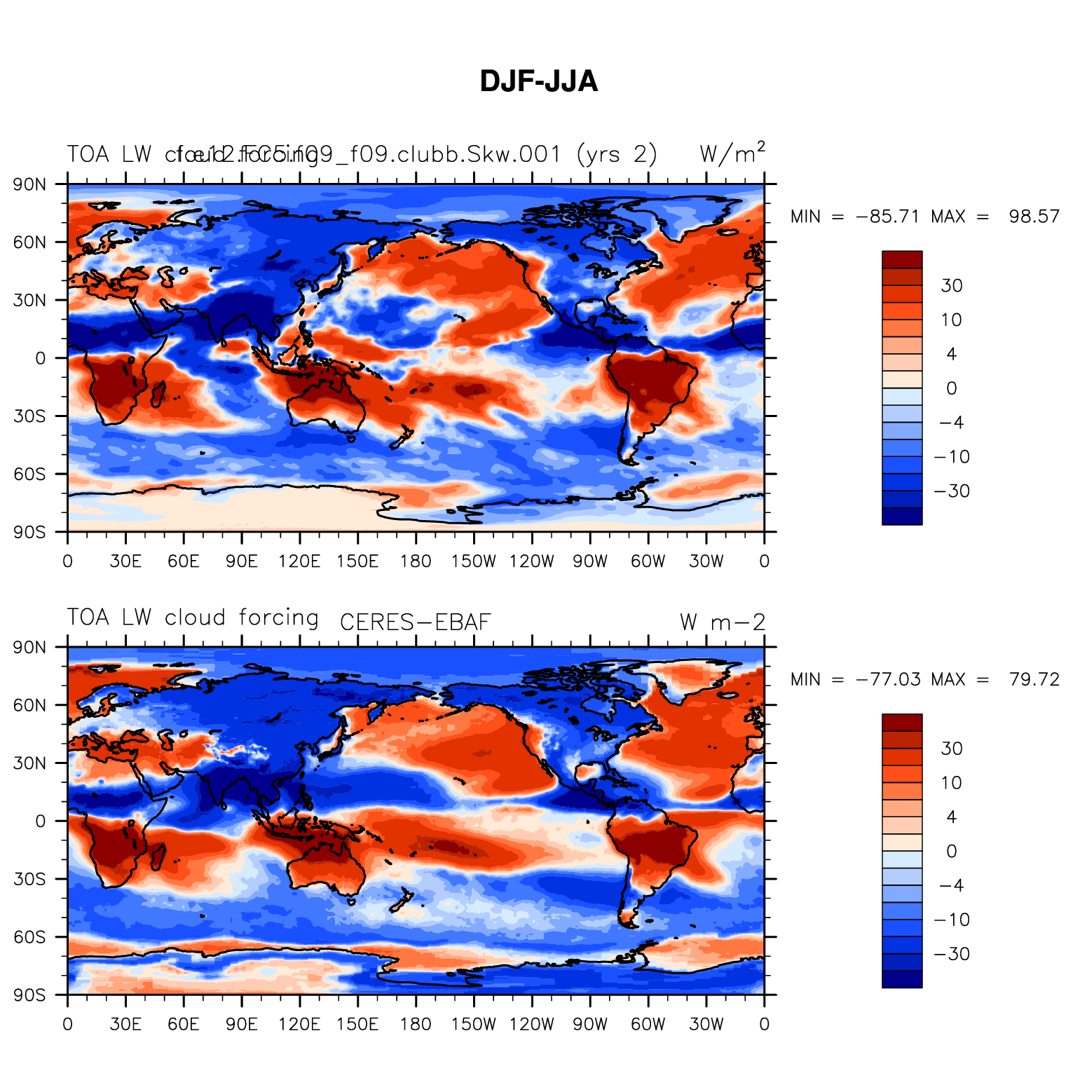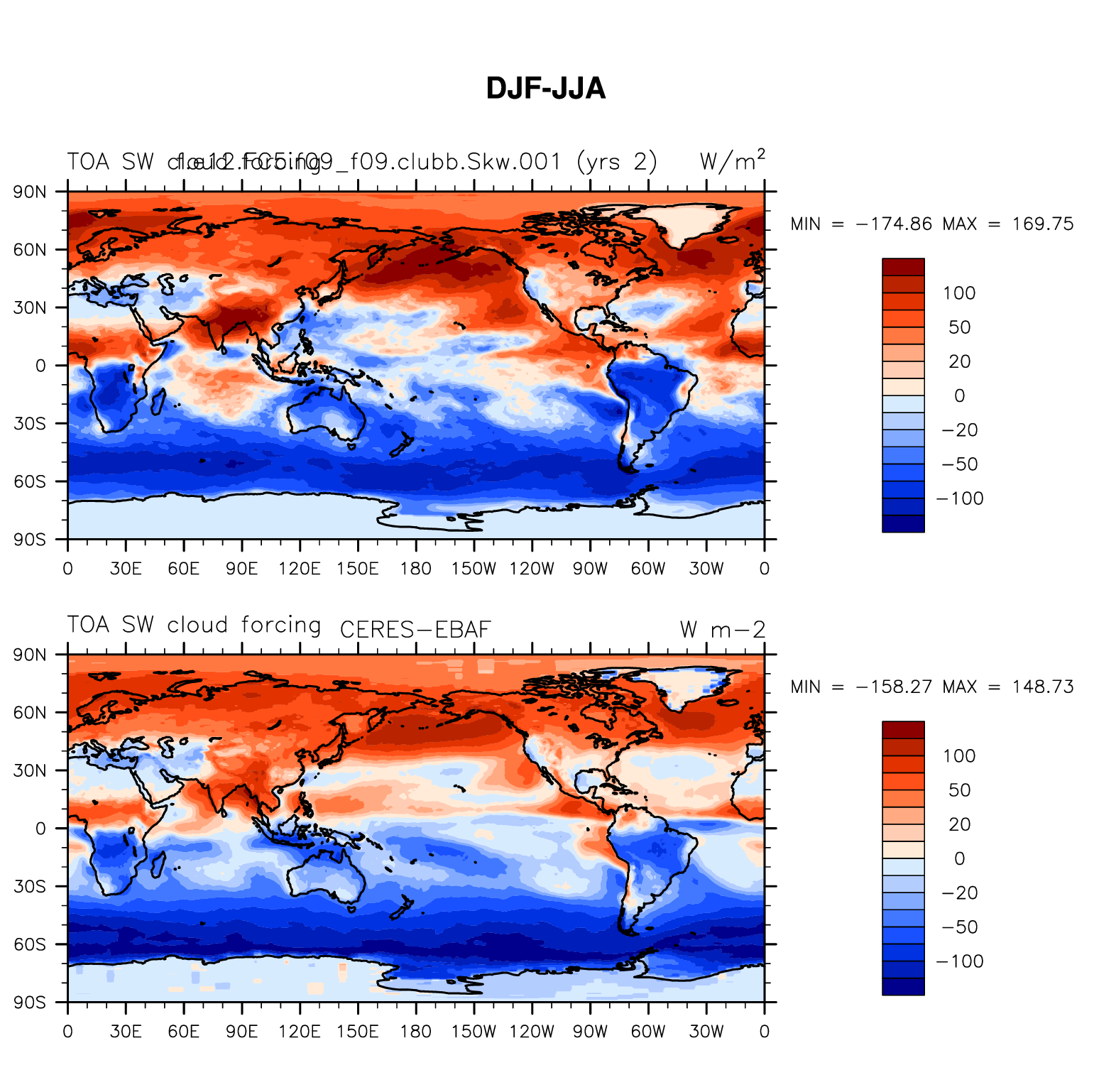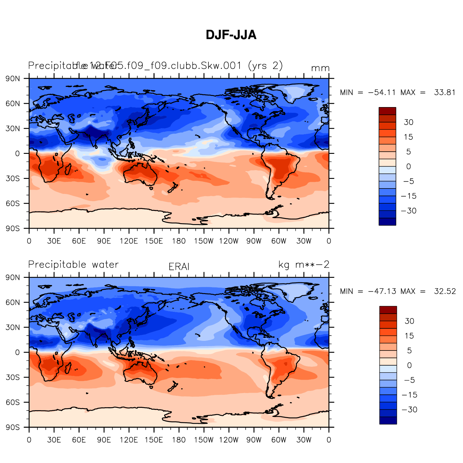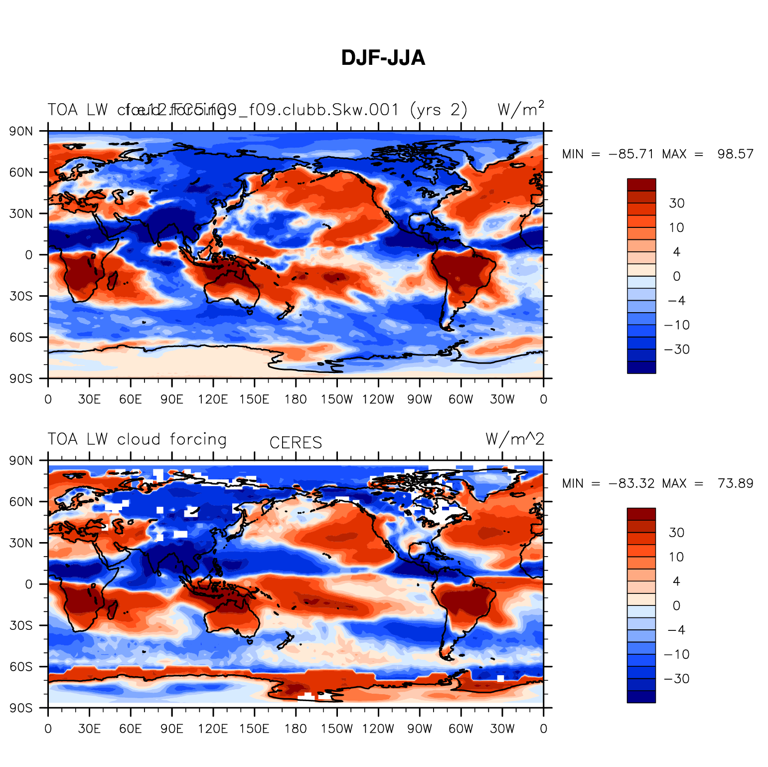 f.e12.FC5.f09_f09.clubb.Skw.001 DIAG Set 9 - Horizontal contour plots of DJF-JJA differences