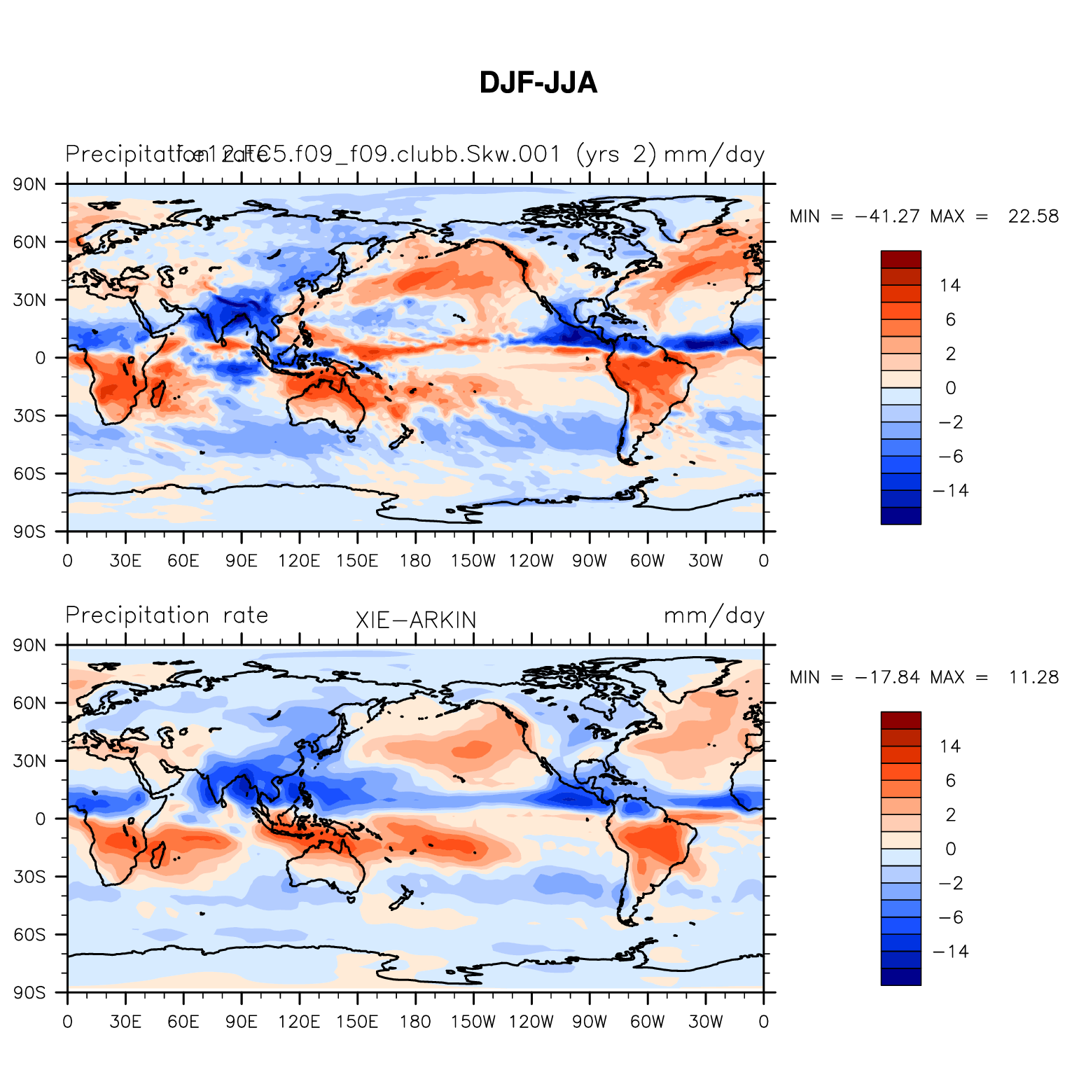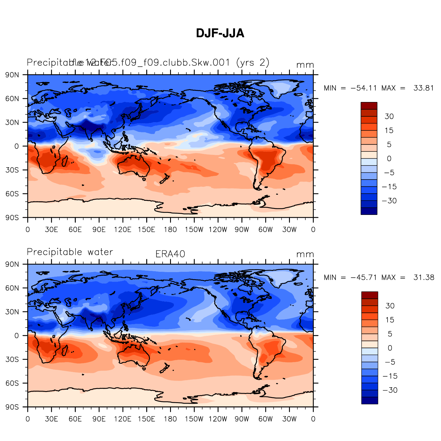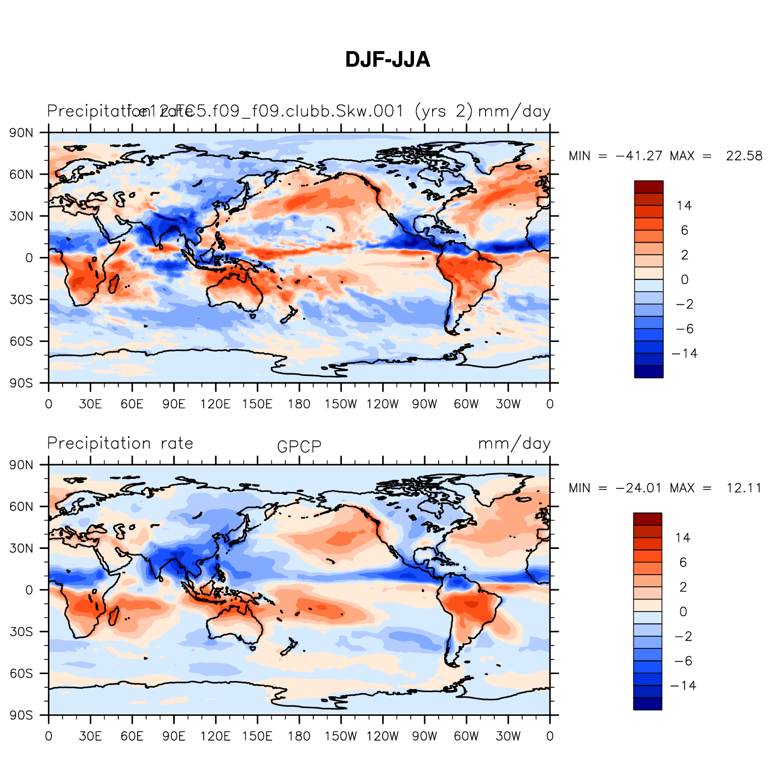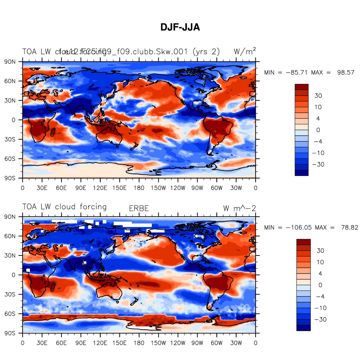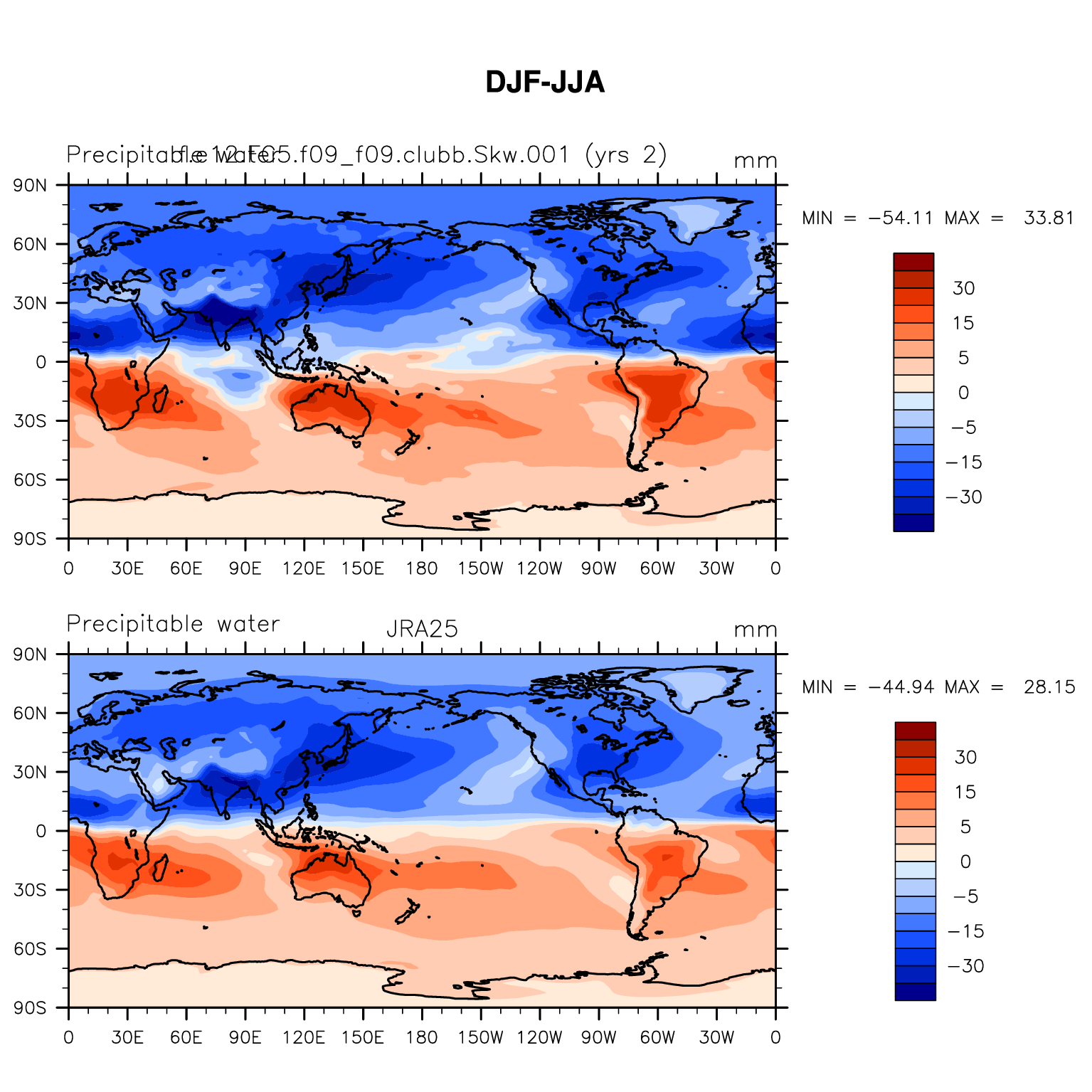 f.e12.FC5.f09_f09.clubb.Skw.001 DIAG Set 9 - Horizontal contour plots of DJF-JJA differences