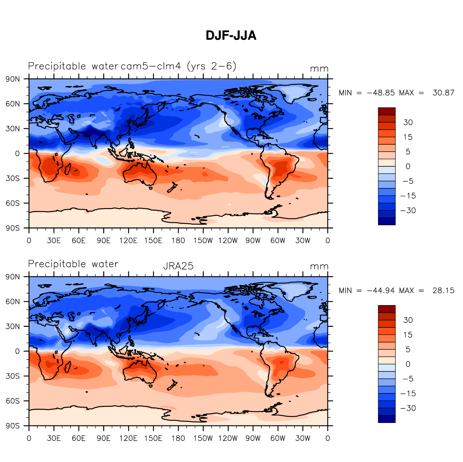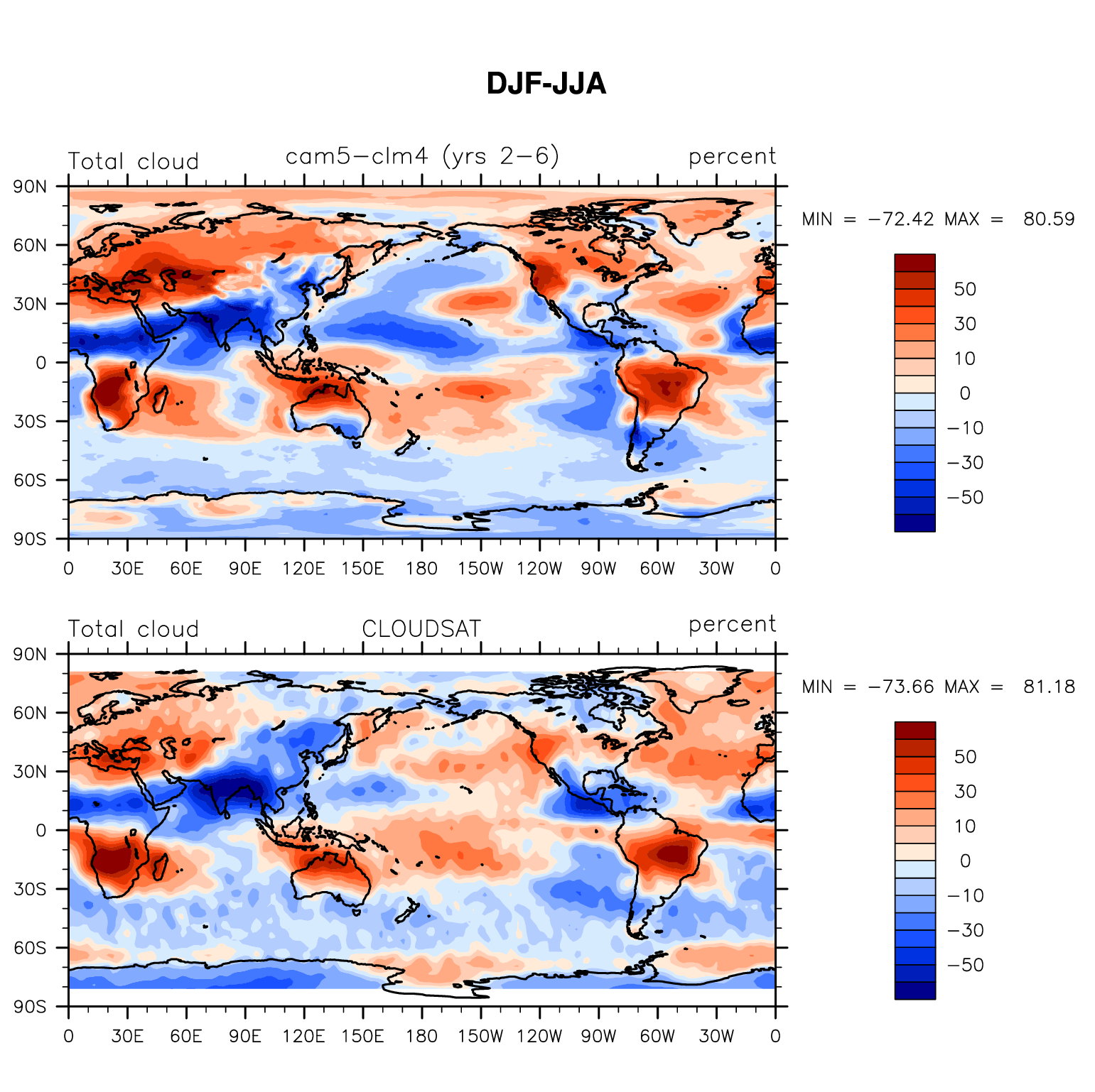 f.e13.F1850C5CLM45.f09_g16.beta06_mods.cam5-clm4.001 DIAG Set 9 - Horizontal contour plots of DJF-JJA differences