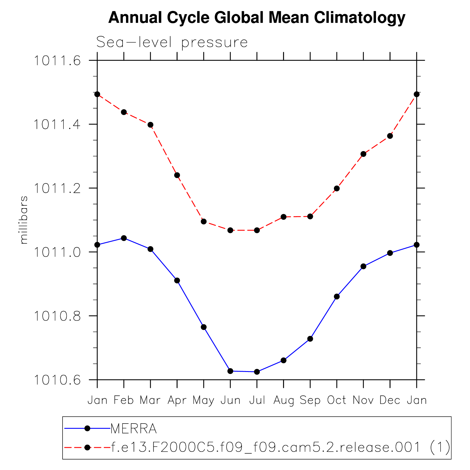 DIAG Set 10 - Annual cycle line plots of global means