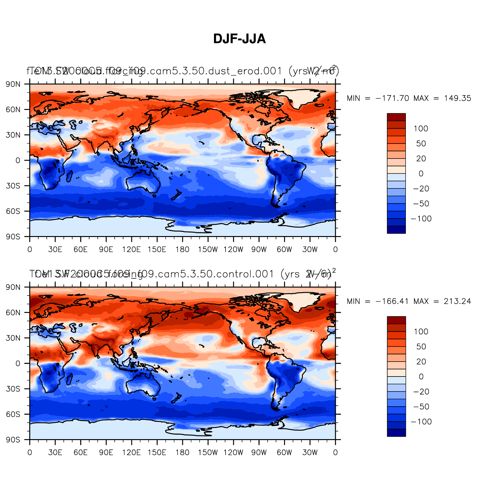 DIAG Set 9 - Horizontal contour plots of DJF-JJA differences