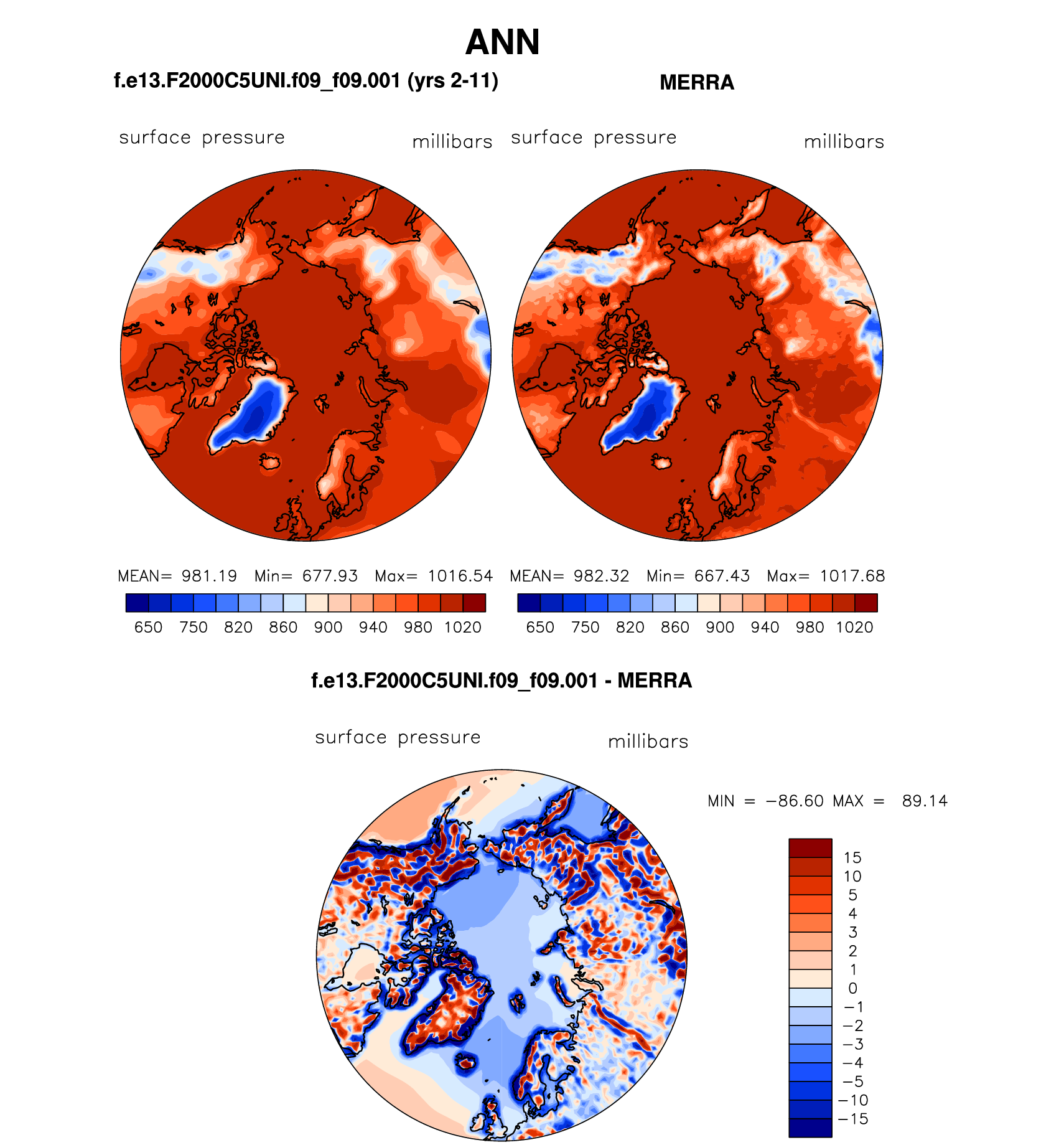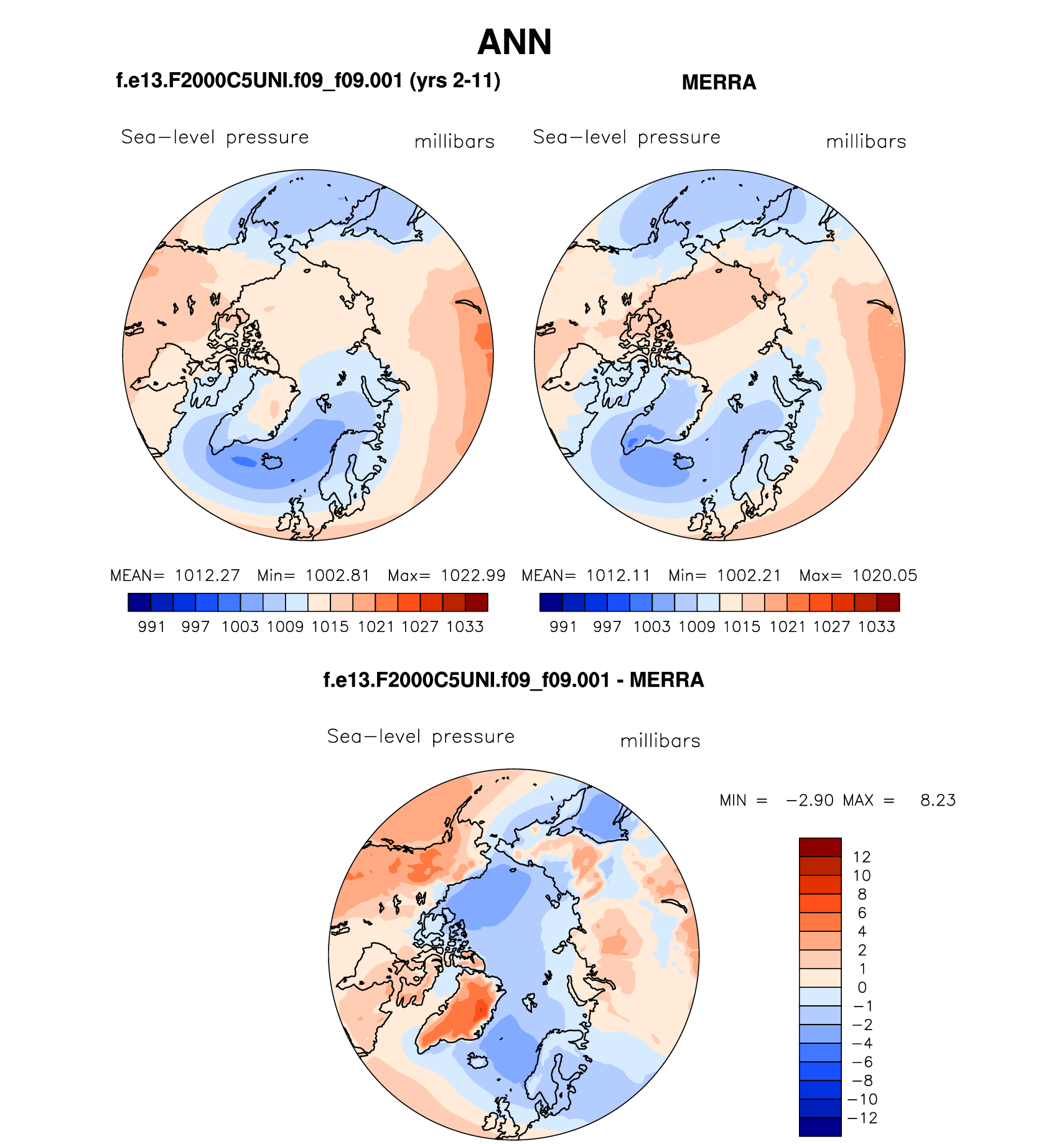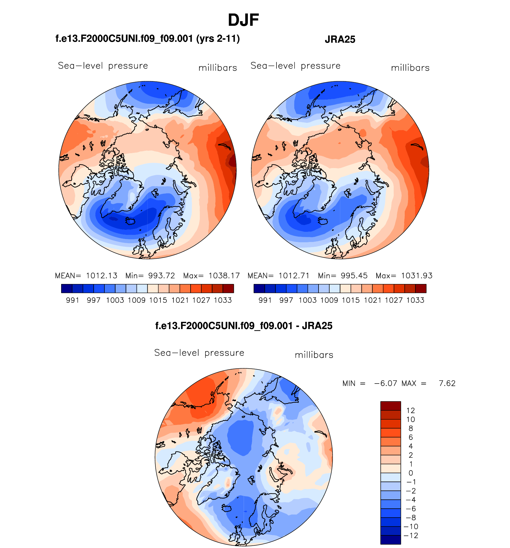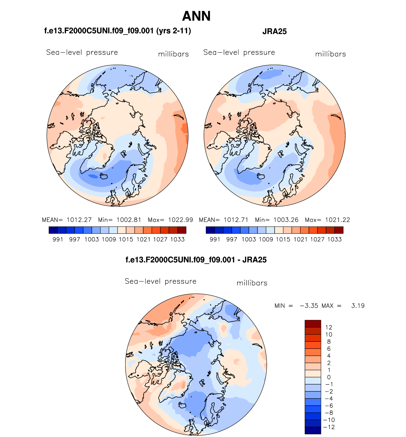 f.e13.F2000C5UNI.f09_f09.001 DIAG Set 7 - Polar contour/vector plots of DJF, JJA and ANN means