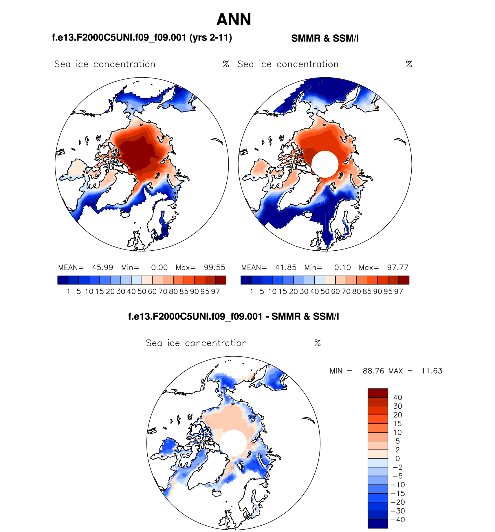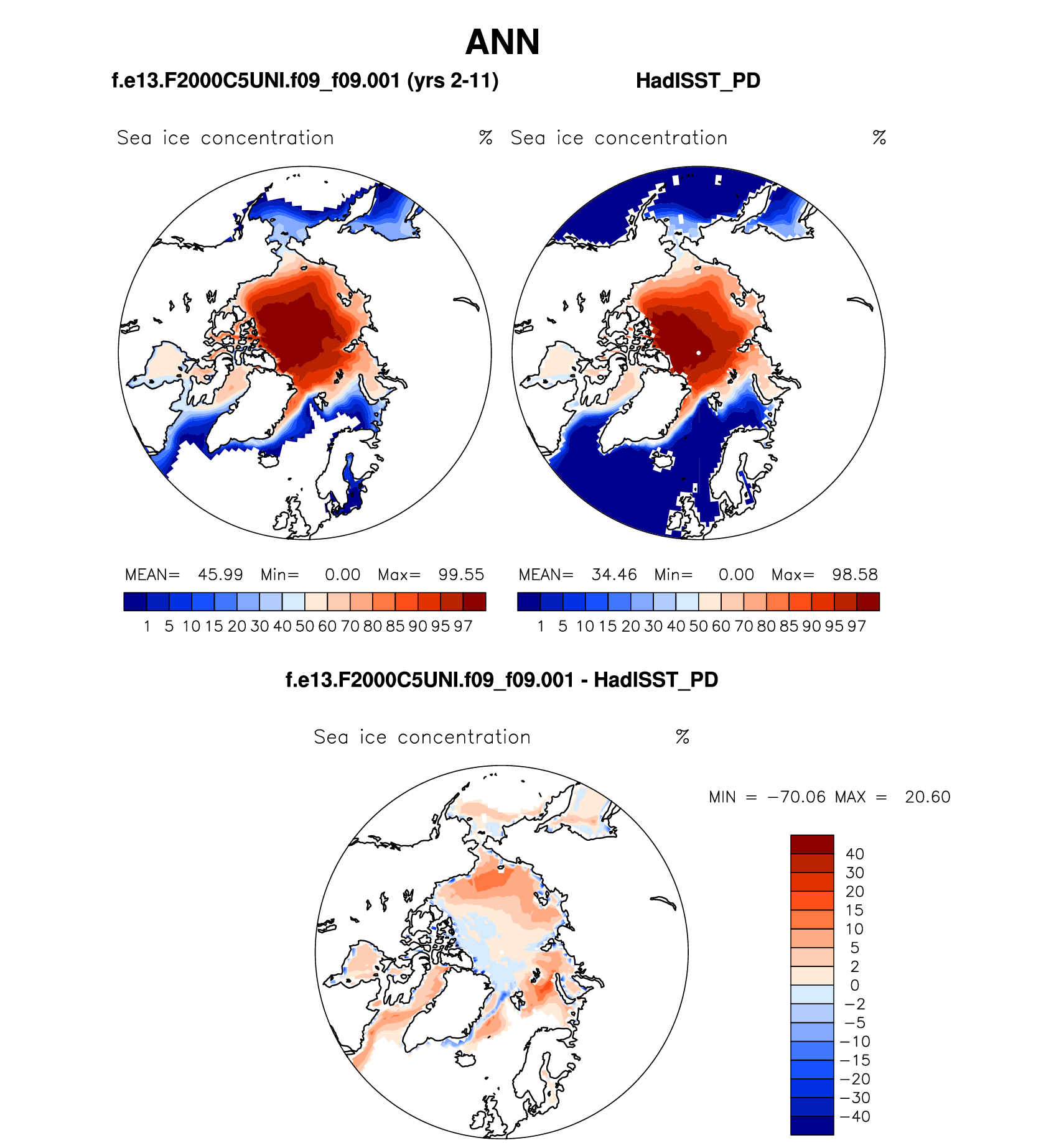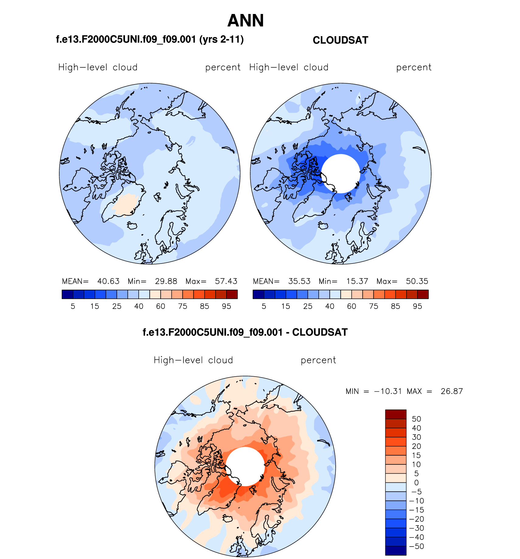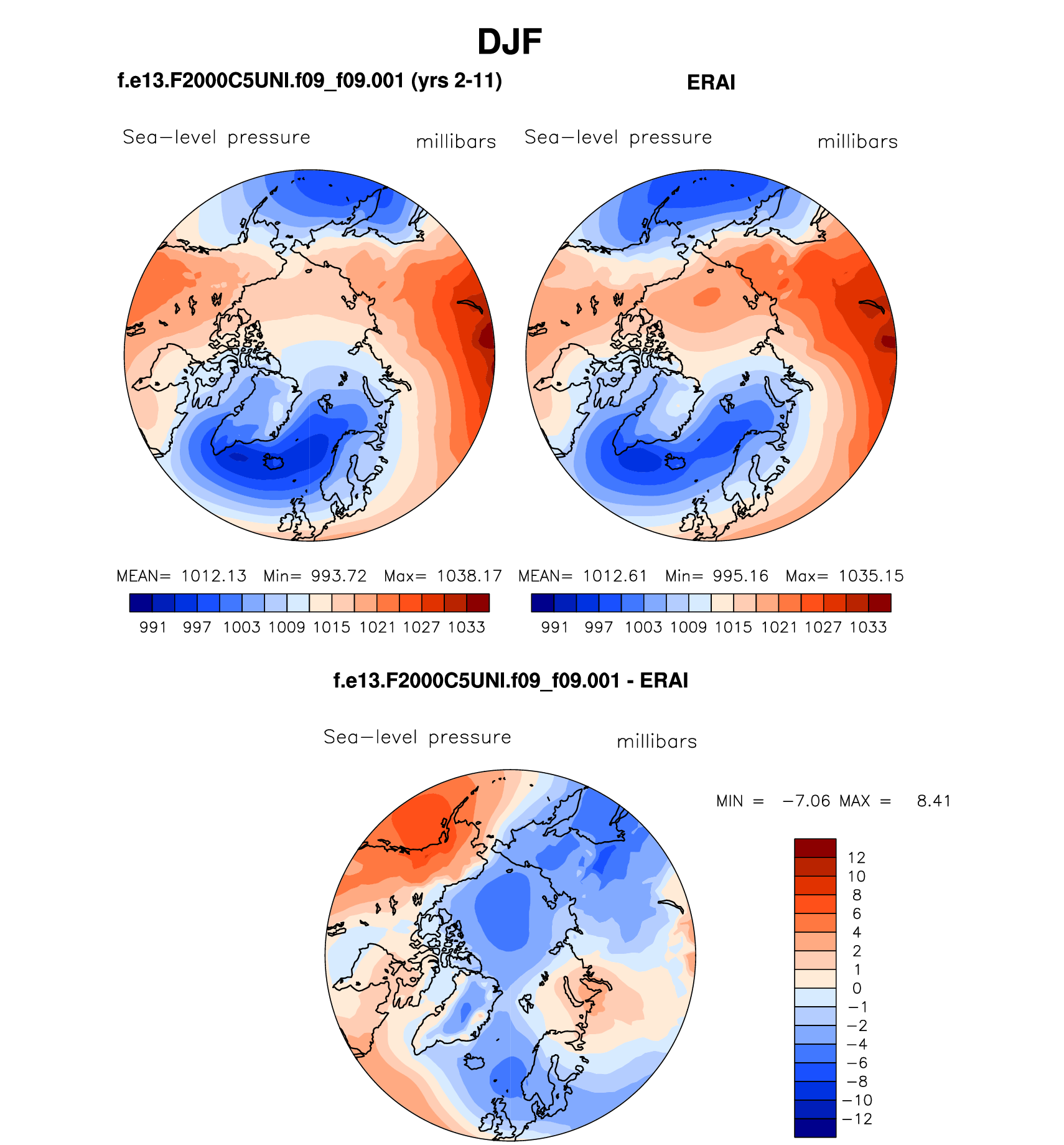 f.e13.F2000C5UNI.f09_f09.001 DIAG Set 7 - Polar contour/vector plots of DJF, JJA and ANN means