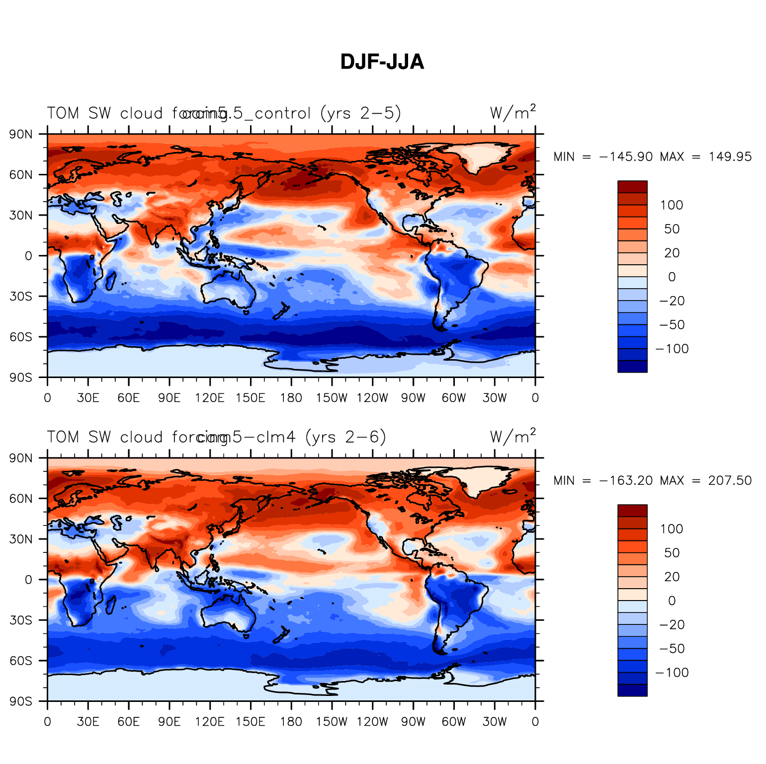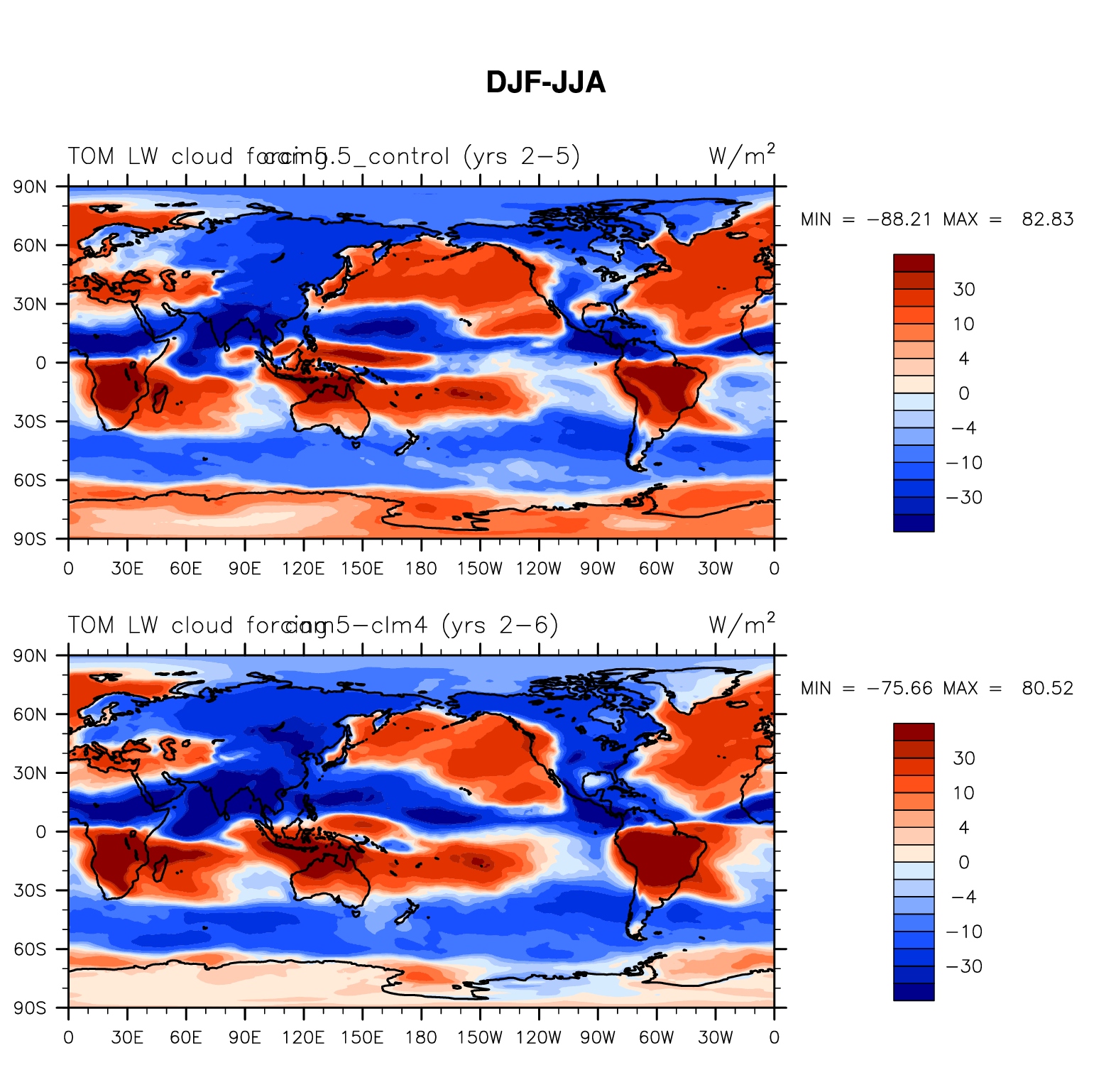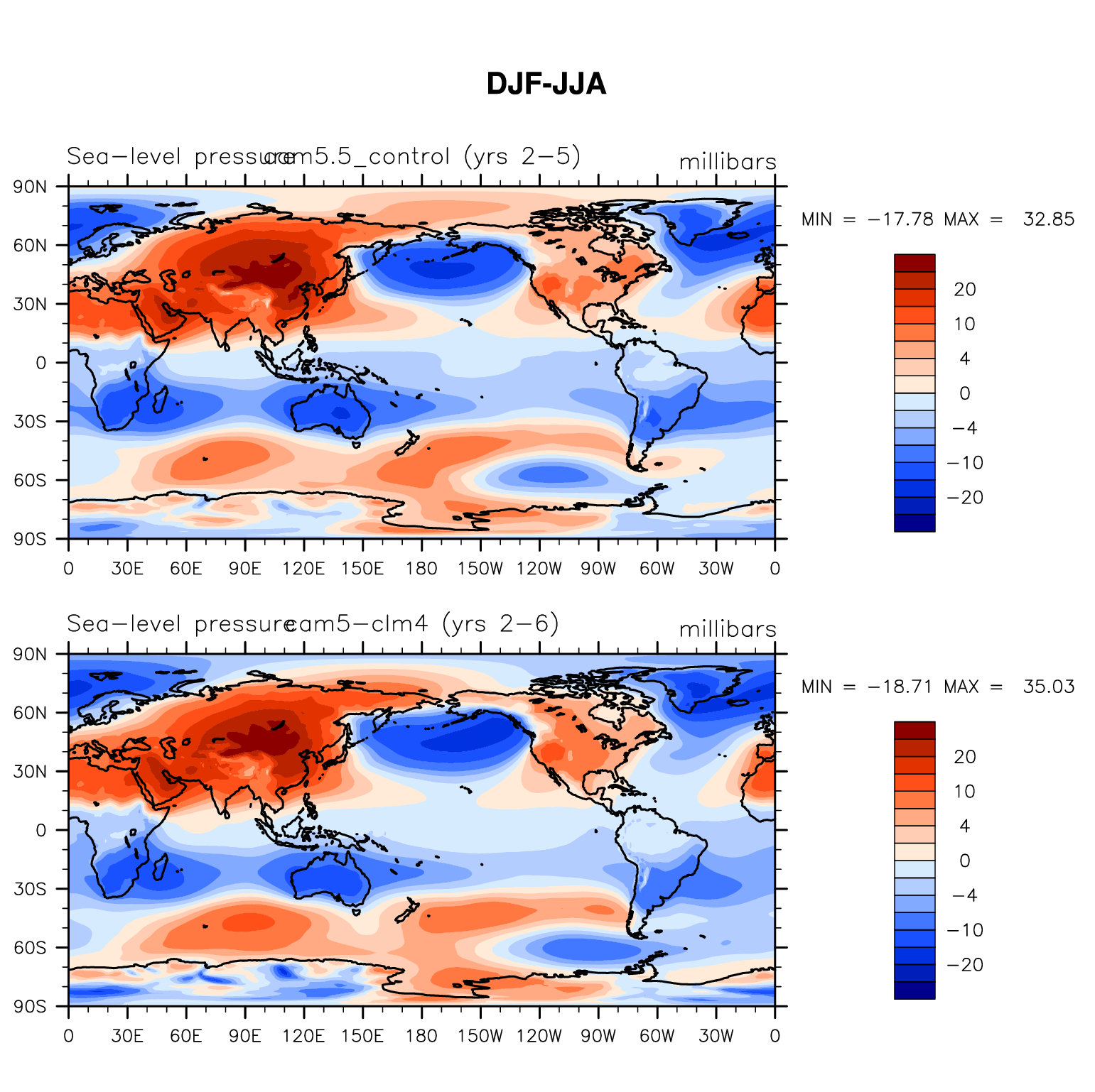 DIAG Set 9 - Horizontal contour plots of DJF-JJA differences