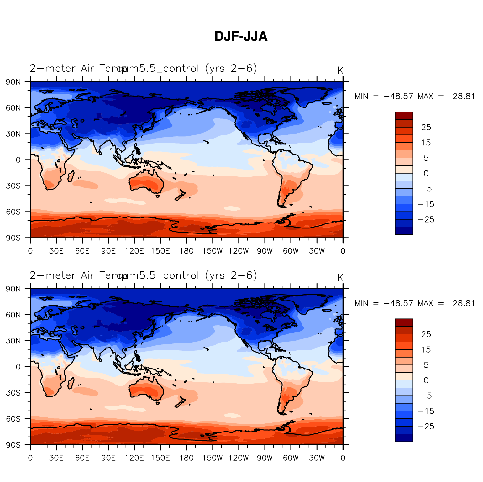 DIAG Set 9 - Horizontal contour plots of DJF-JJA differences