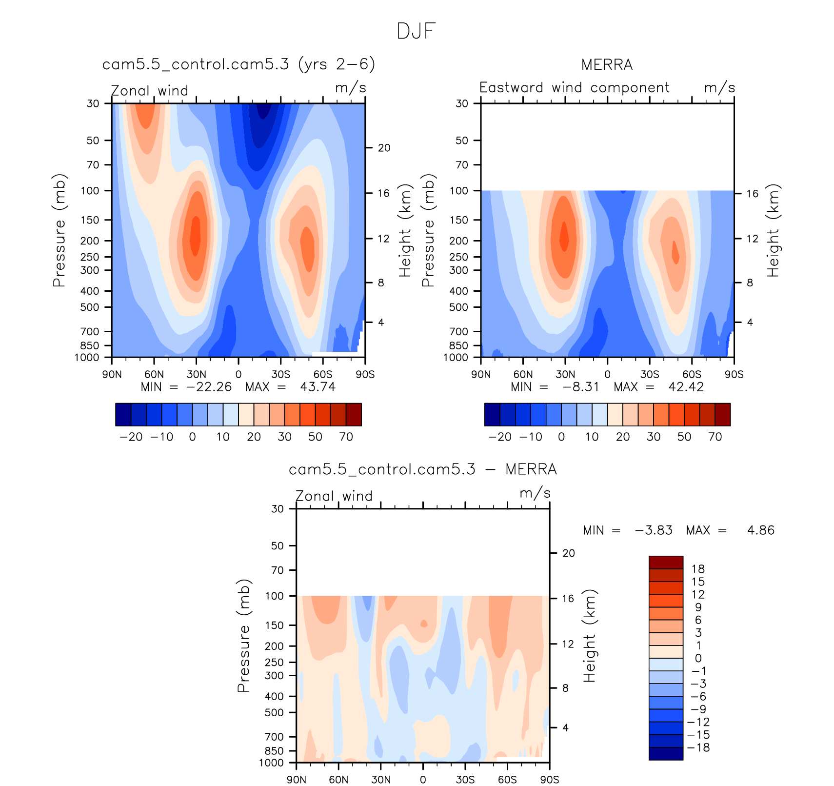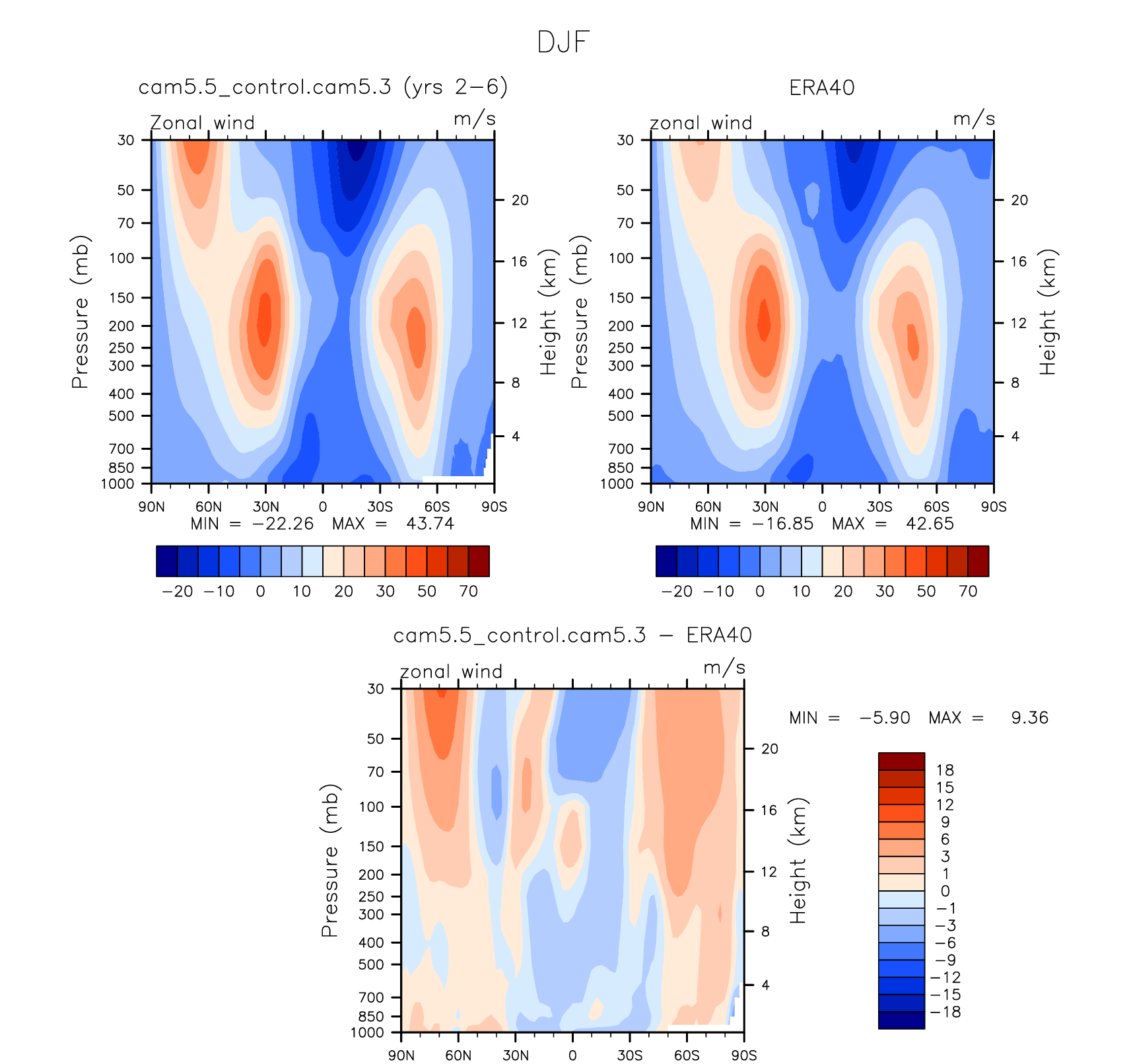 DIAG Set 4 - Vertical contour plots of DJF, JJA and ANN zonal means