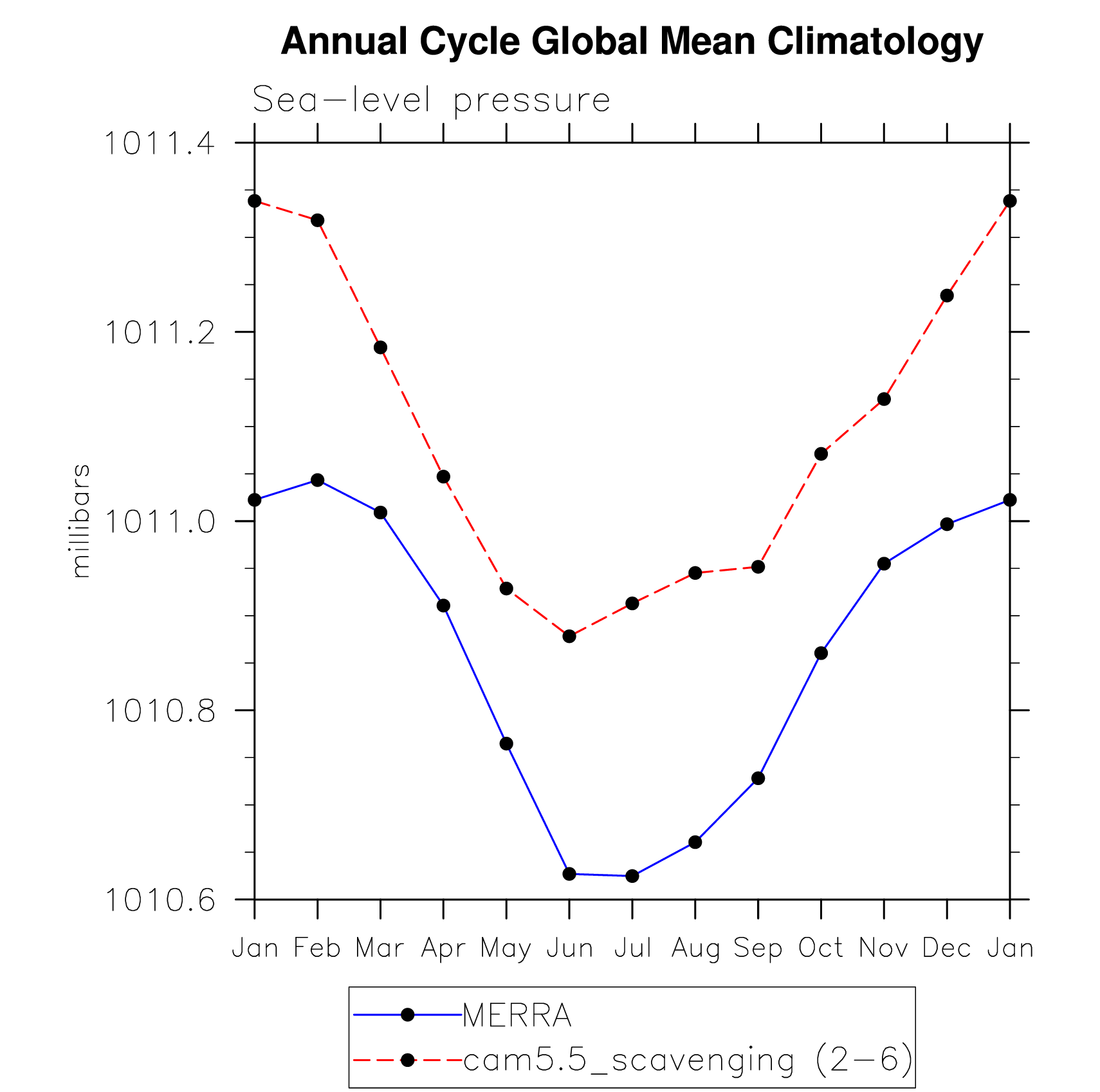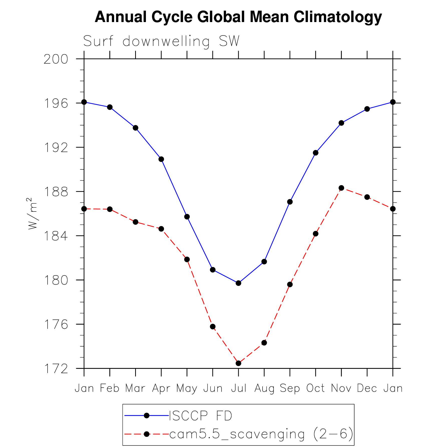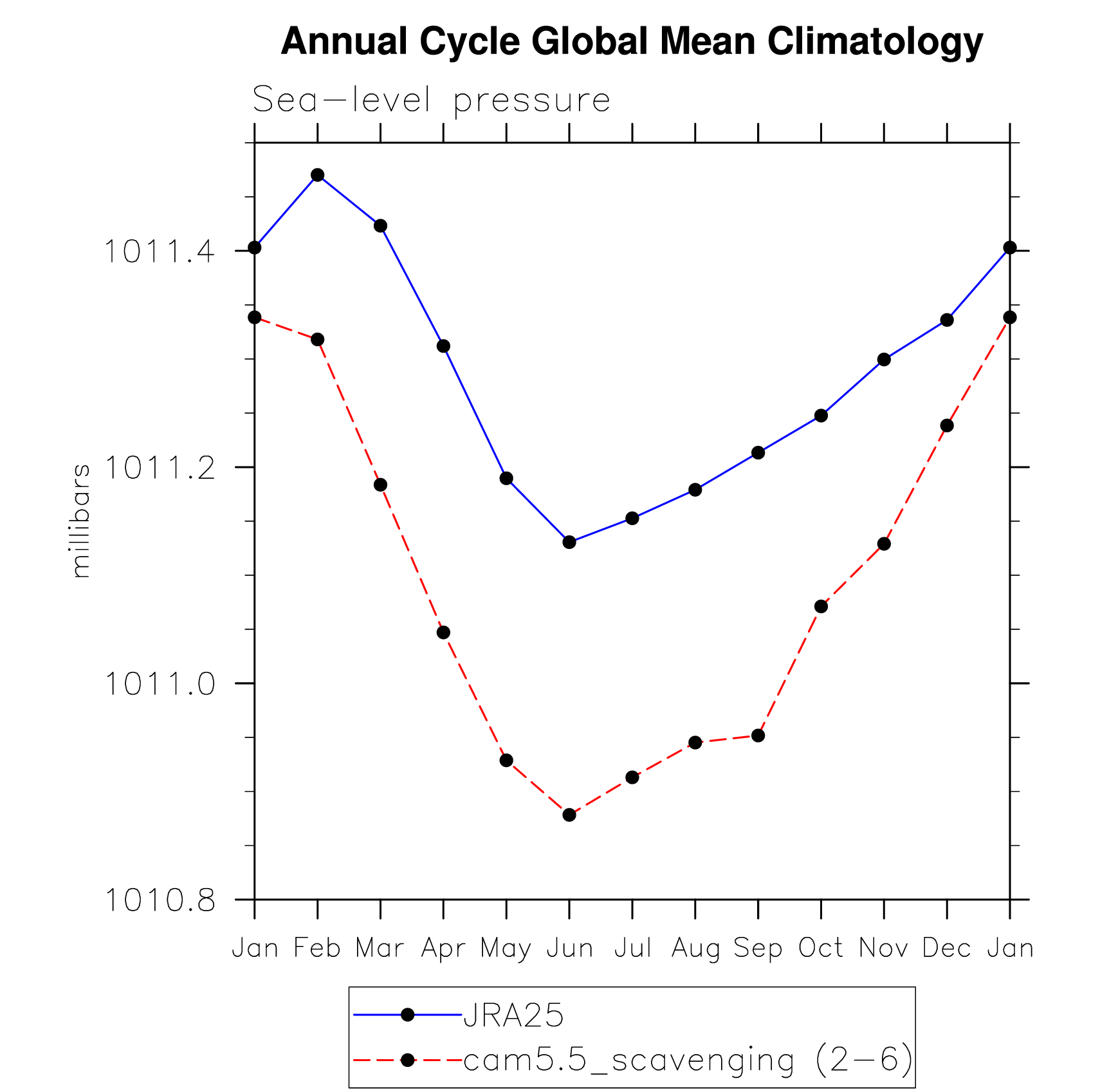 DIAG Set 10 - Annual cycle line plots of global means