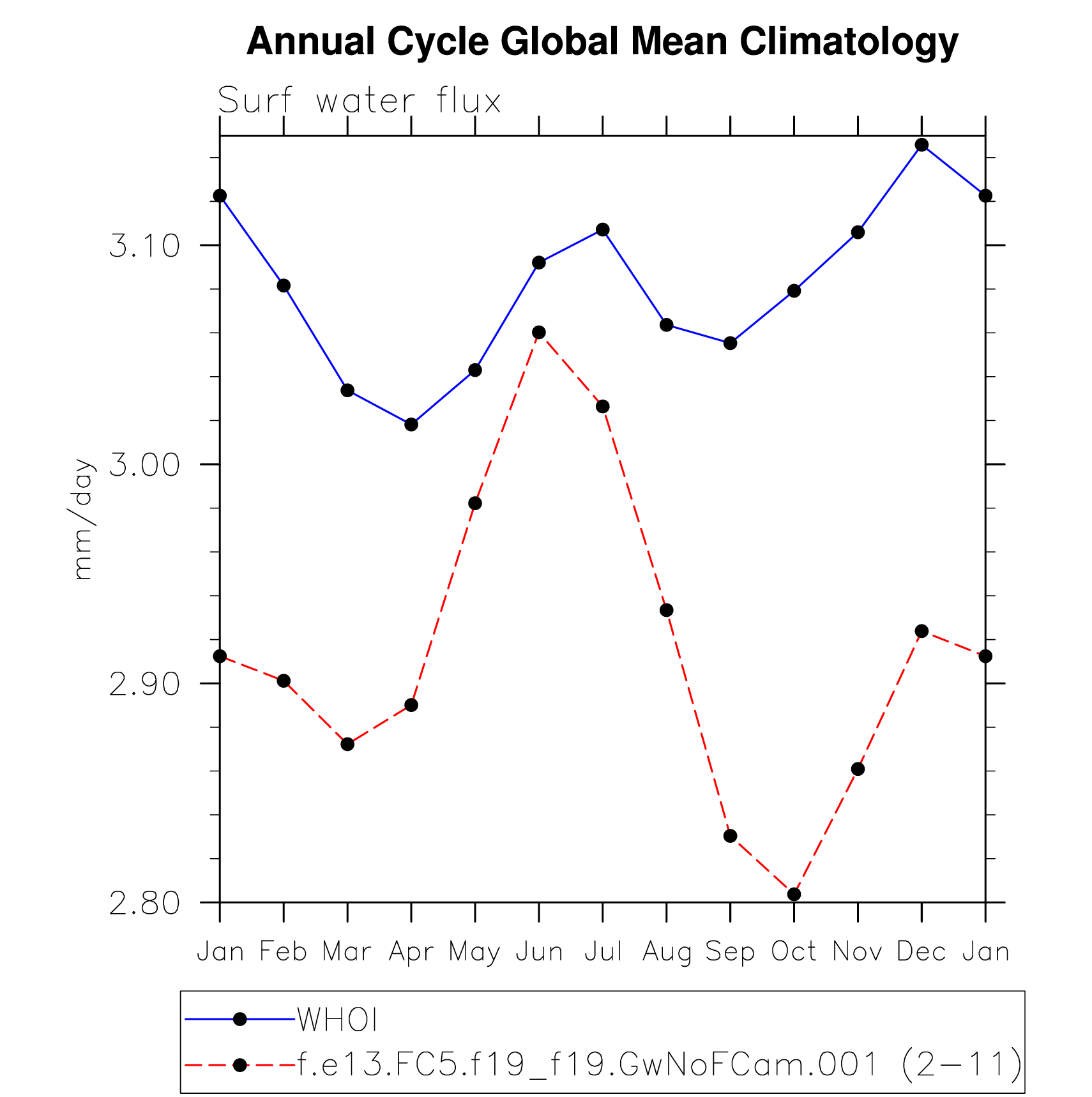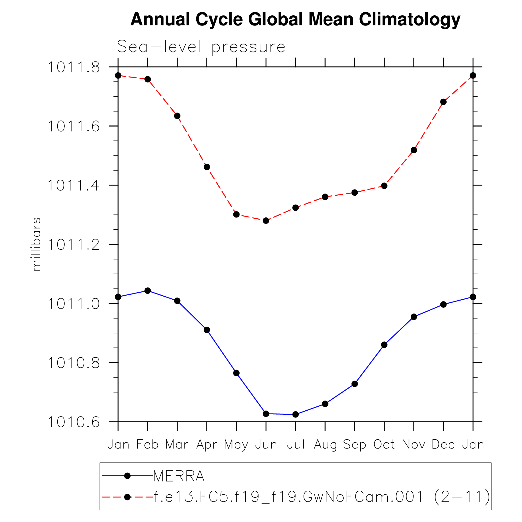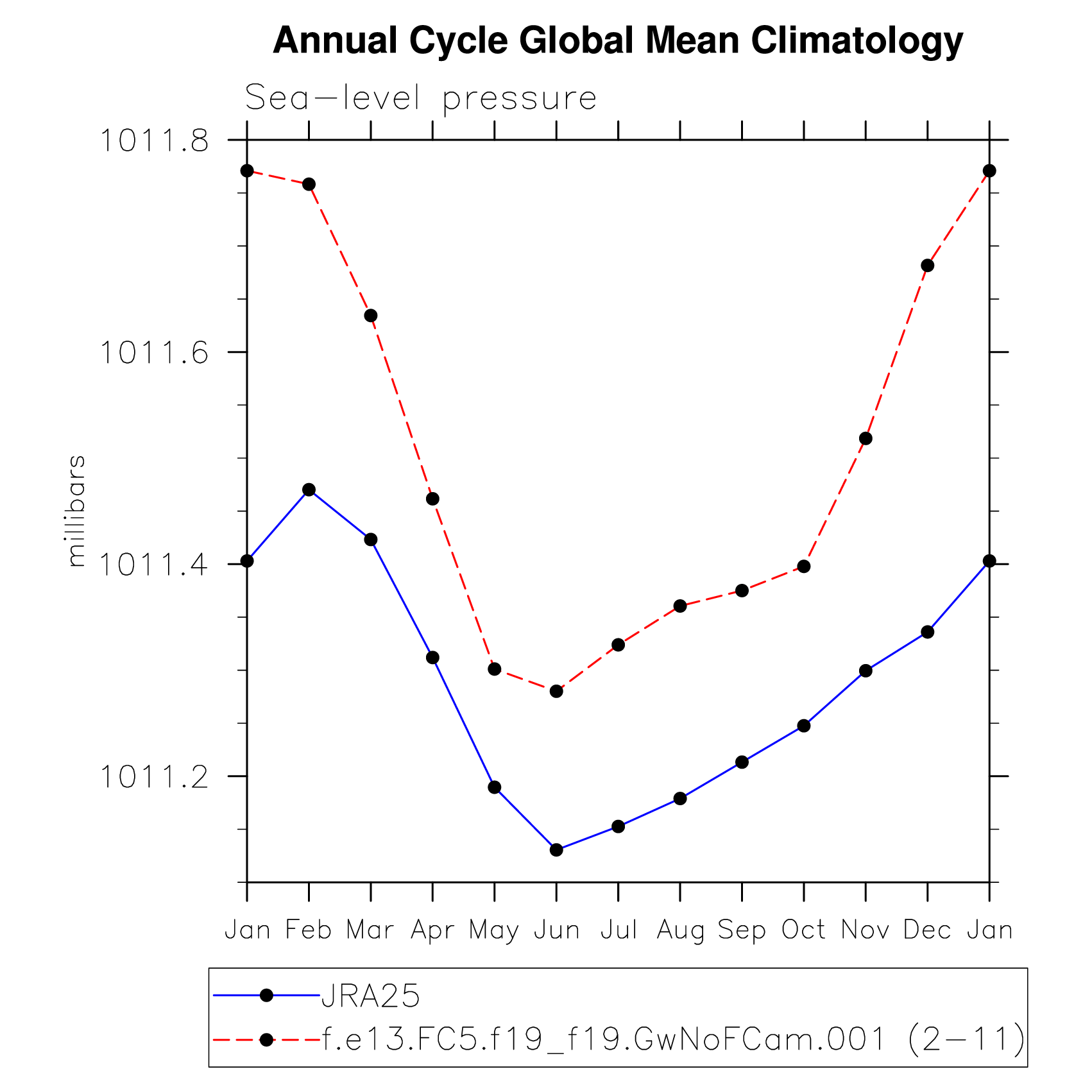 DIAG Set 10 - Annual cycle line plots of global means