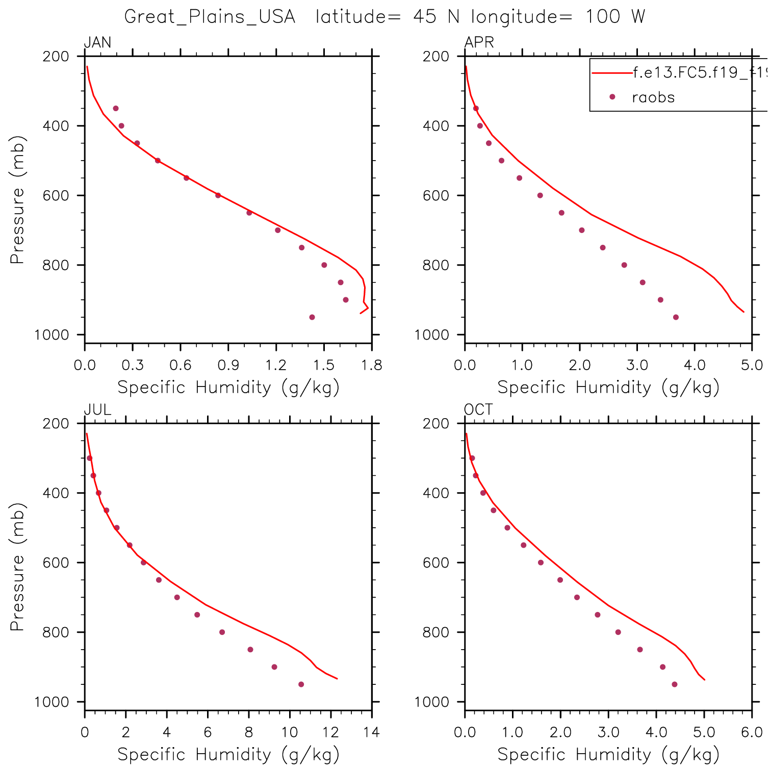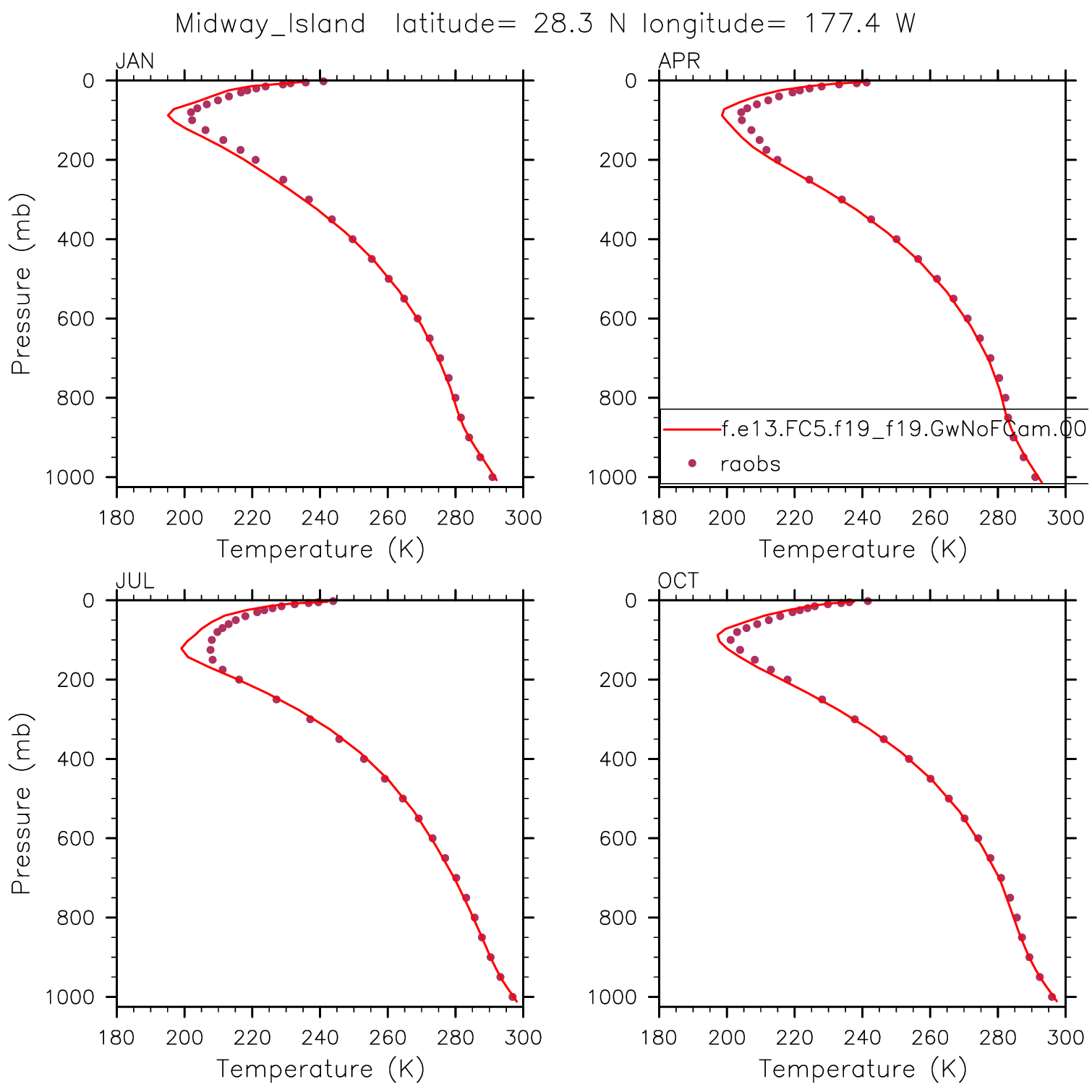 f.e13.FC5.f19_f19.GwNoFCam.001 Set 12 - Vertical Profiles at 17 selected raobs stations