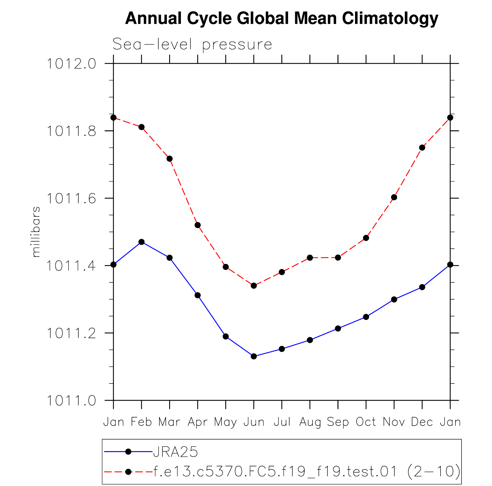 DIAG Set 10 - Annual cycle line plots of global means
