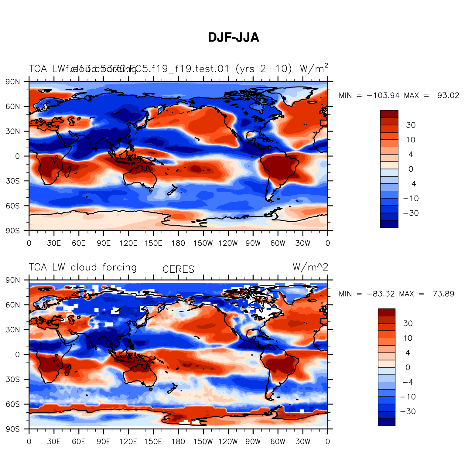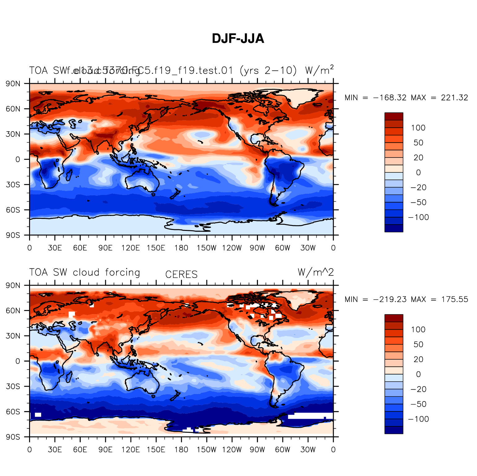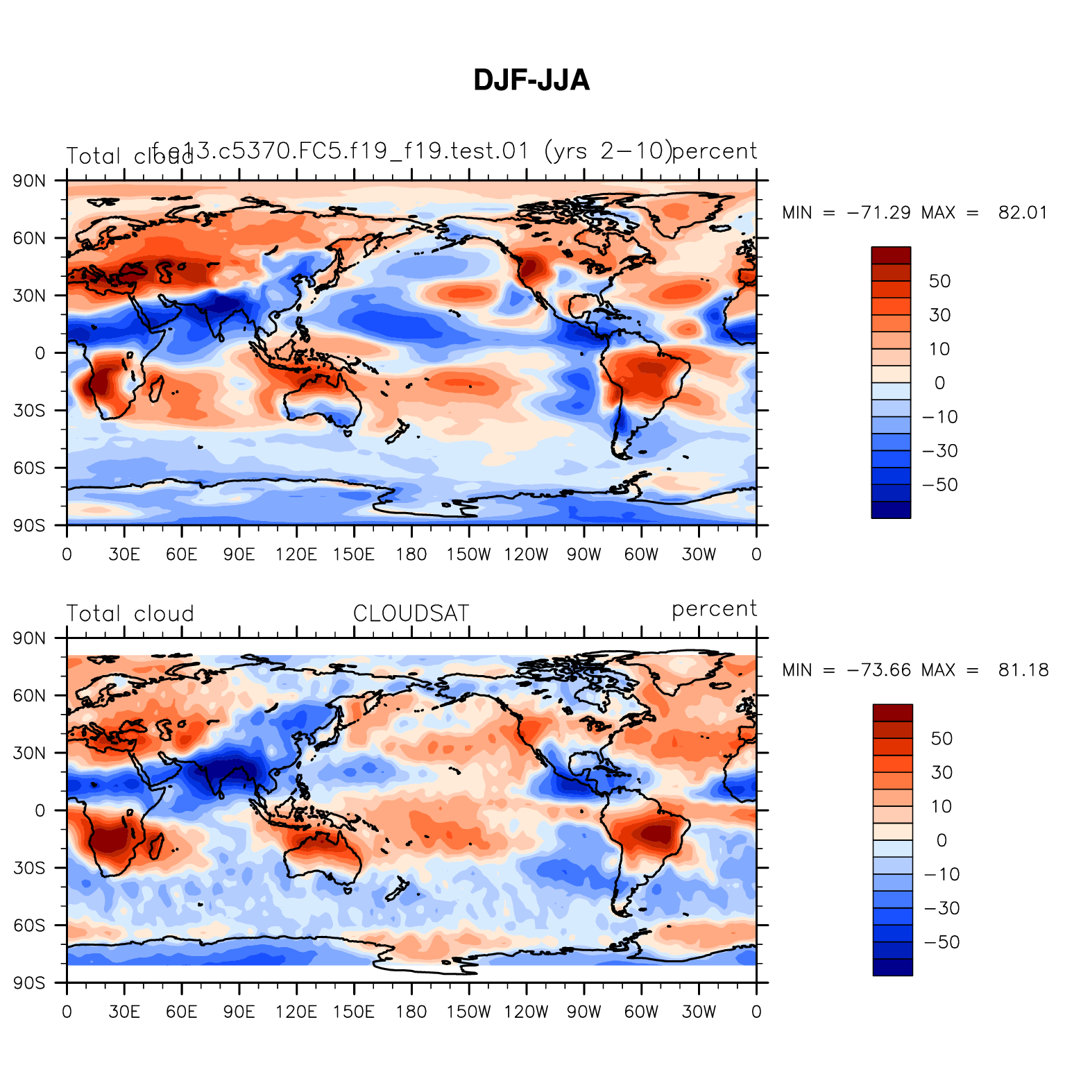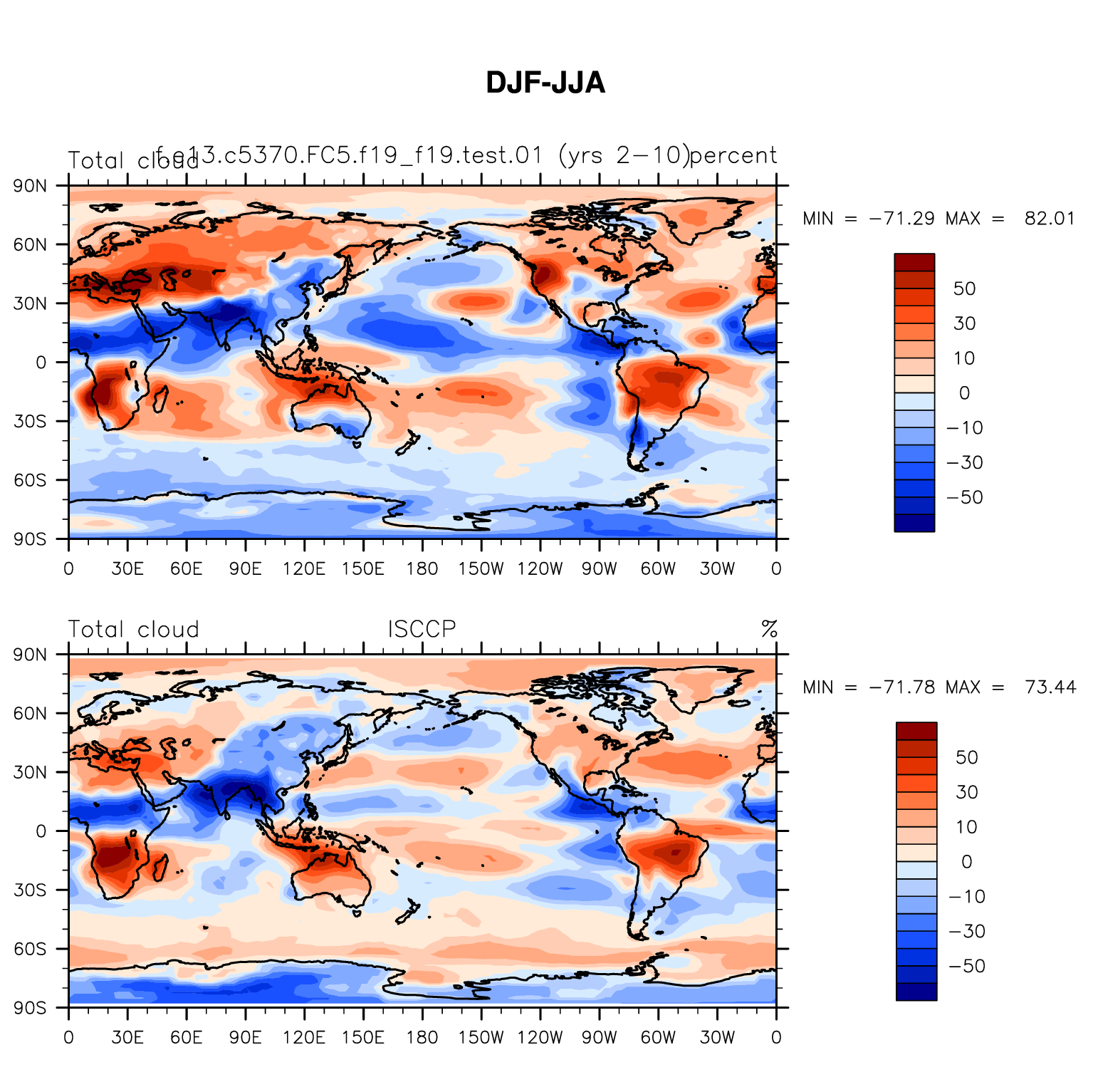 f.e13.c5370.FC5.f19_f19.test.01 DIAG Set 9 - Horizontal contour plots of DJF-JJA differences