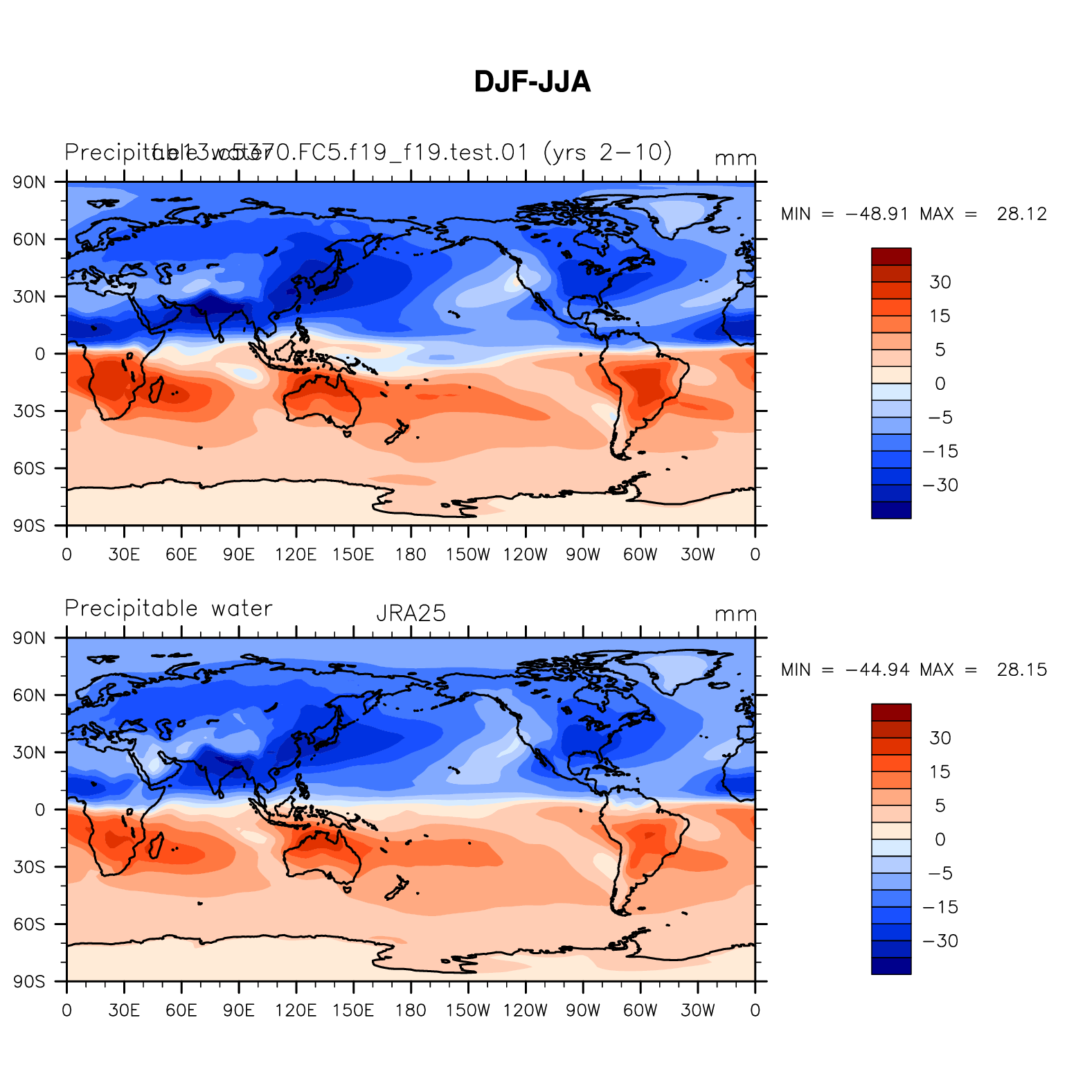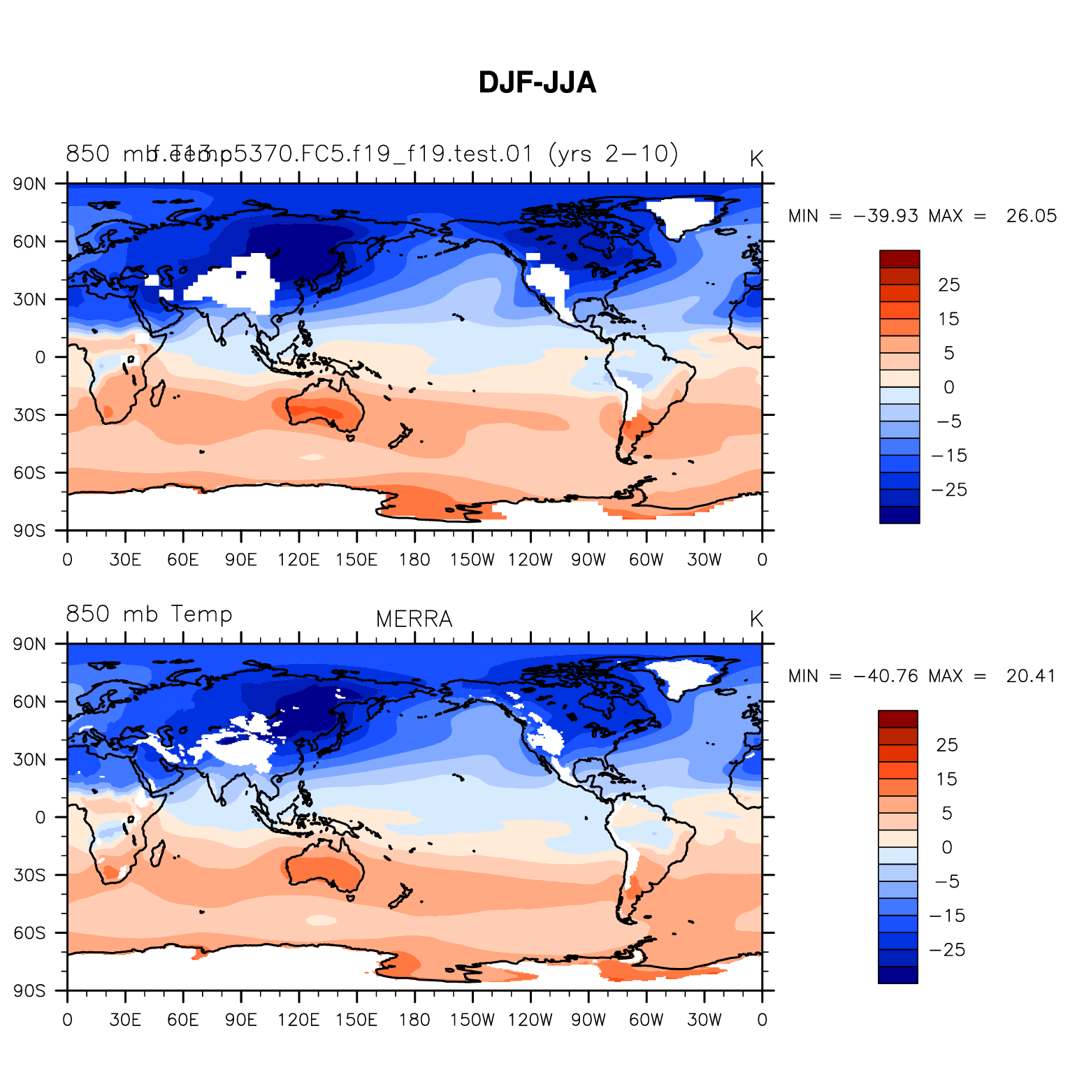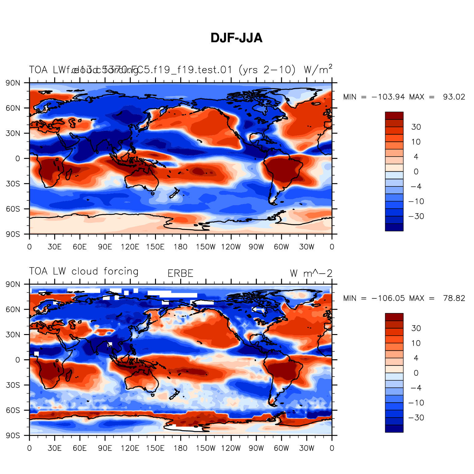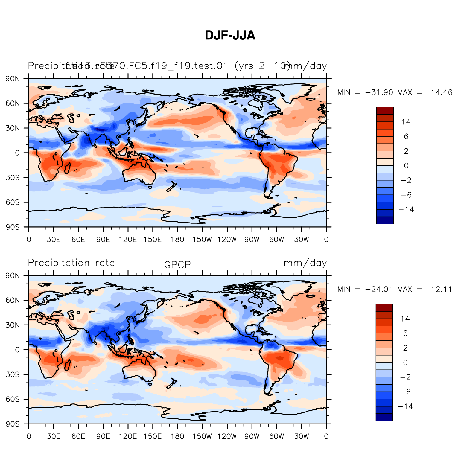 f.e13.c5370.FC5.f19_f19.test.01 DIAG Set 9 - Horizontal contour plots of DJF-JJA differences