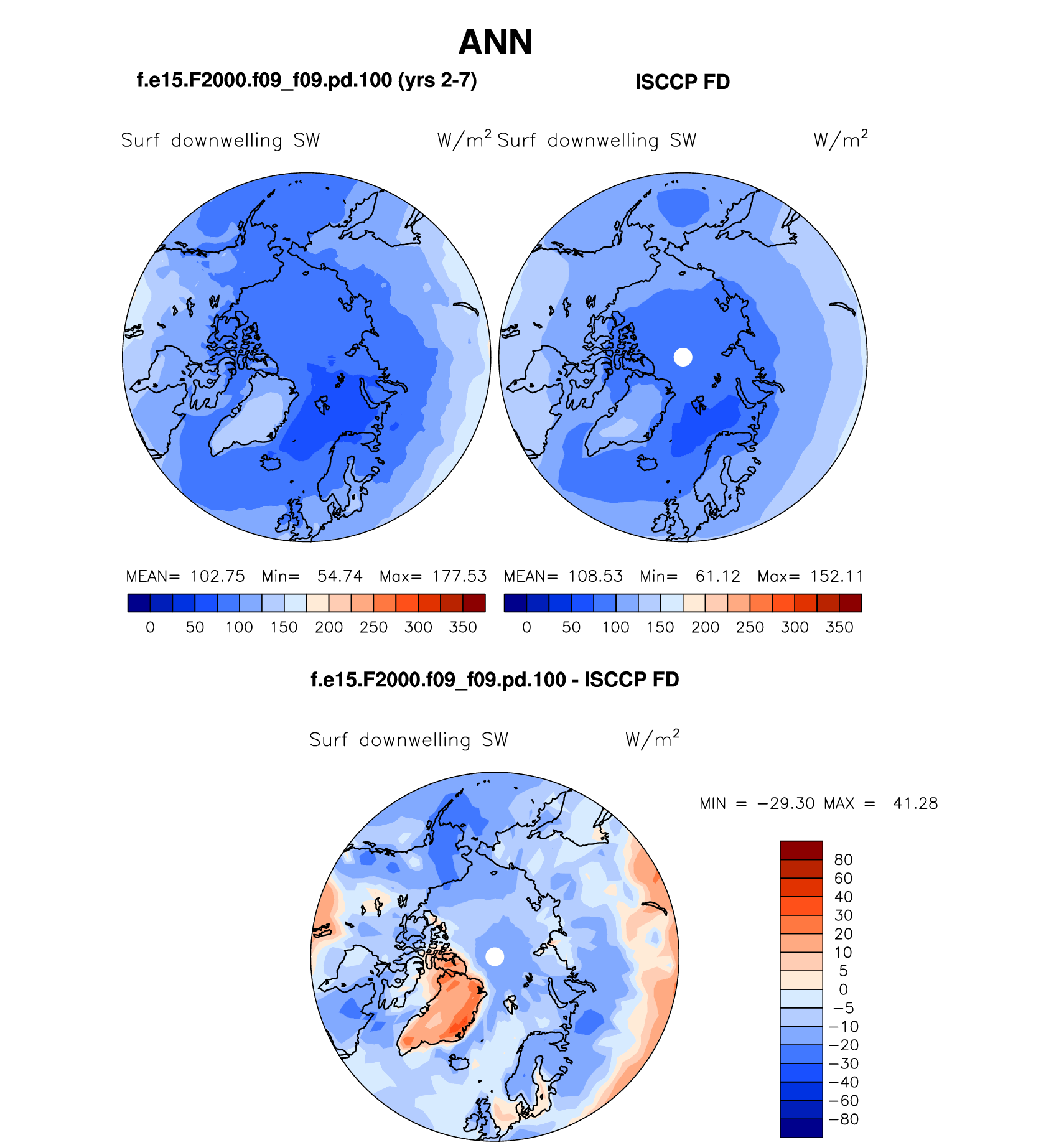 f.e15.F2000.f09_f09.pd.100 DIAG Set 7 - Polar contour/vector plots of DJF, JJA and ANN means