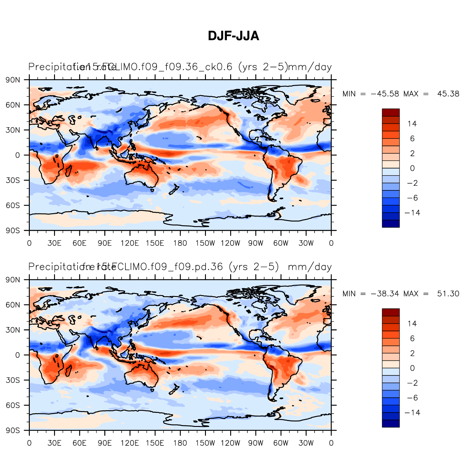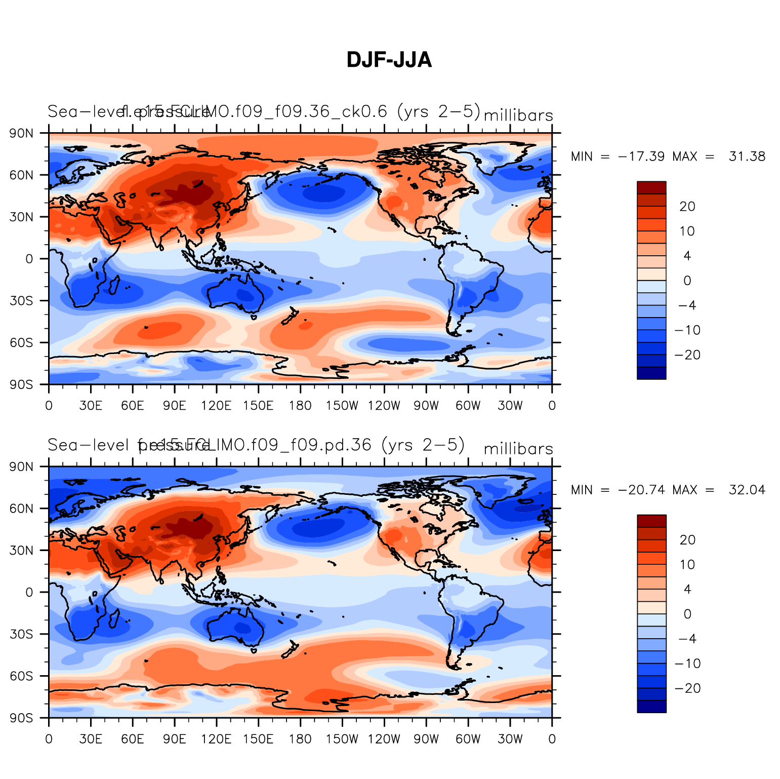 DIAG Set 9 - Horizontal contour plots of DJF-JJA differences