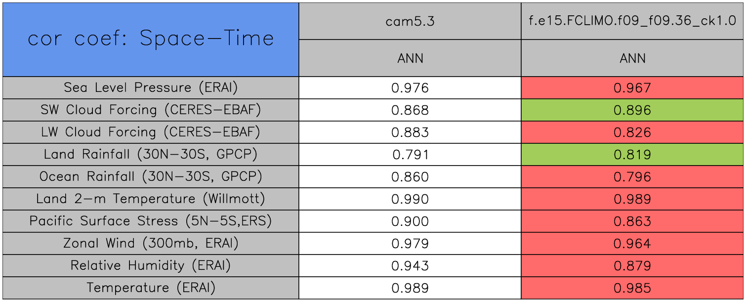 Taylor Diagrams were developed by Karl Taylor at PCMDI (paper|tech note) and aim to condense information about variance and RMSE characteristics of a particular model run when compared with observations in a single diagram. The tables summarize the individual metrics for each variable considered including: