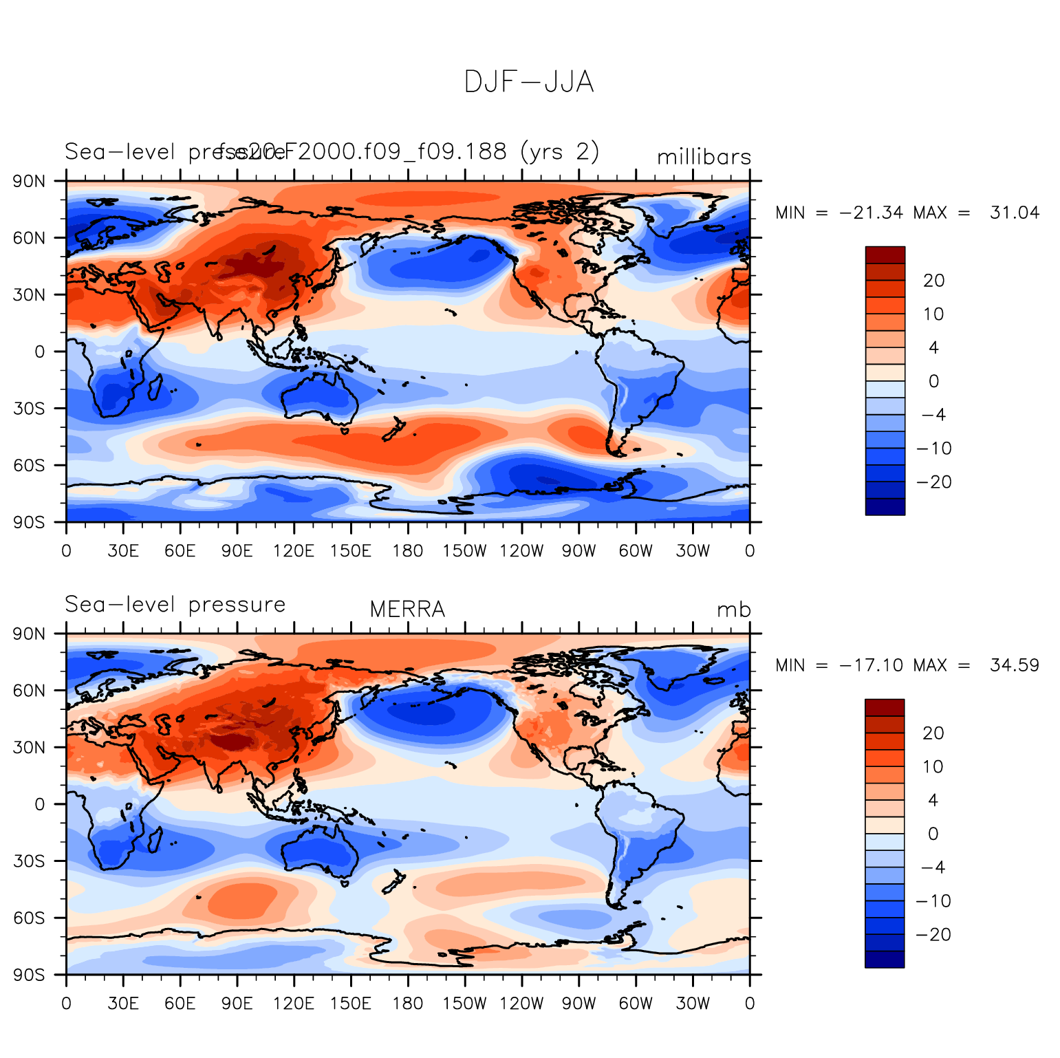 f.e20.F2000.f09_f09.188 DIAG Set 9 - Horizontal contour plots of DJF-JJA differences