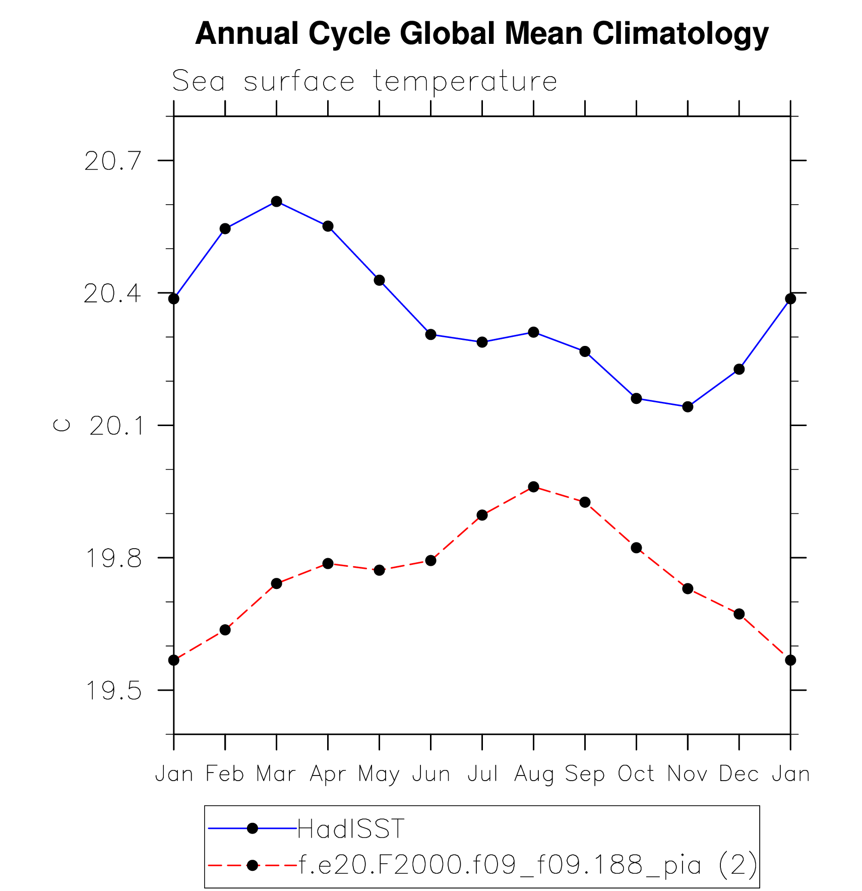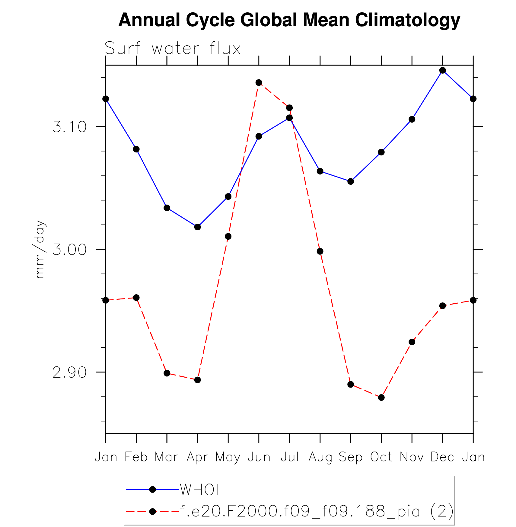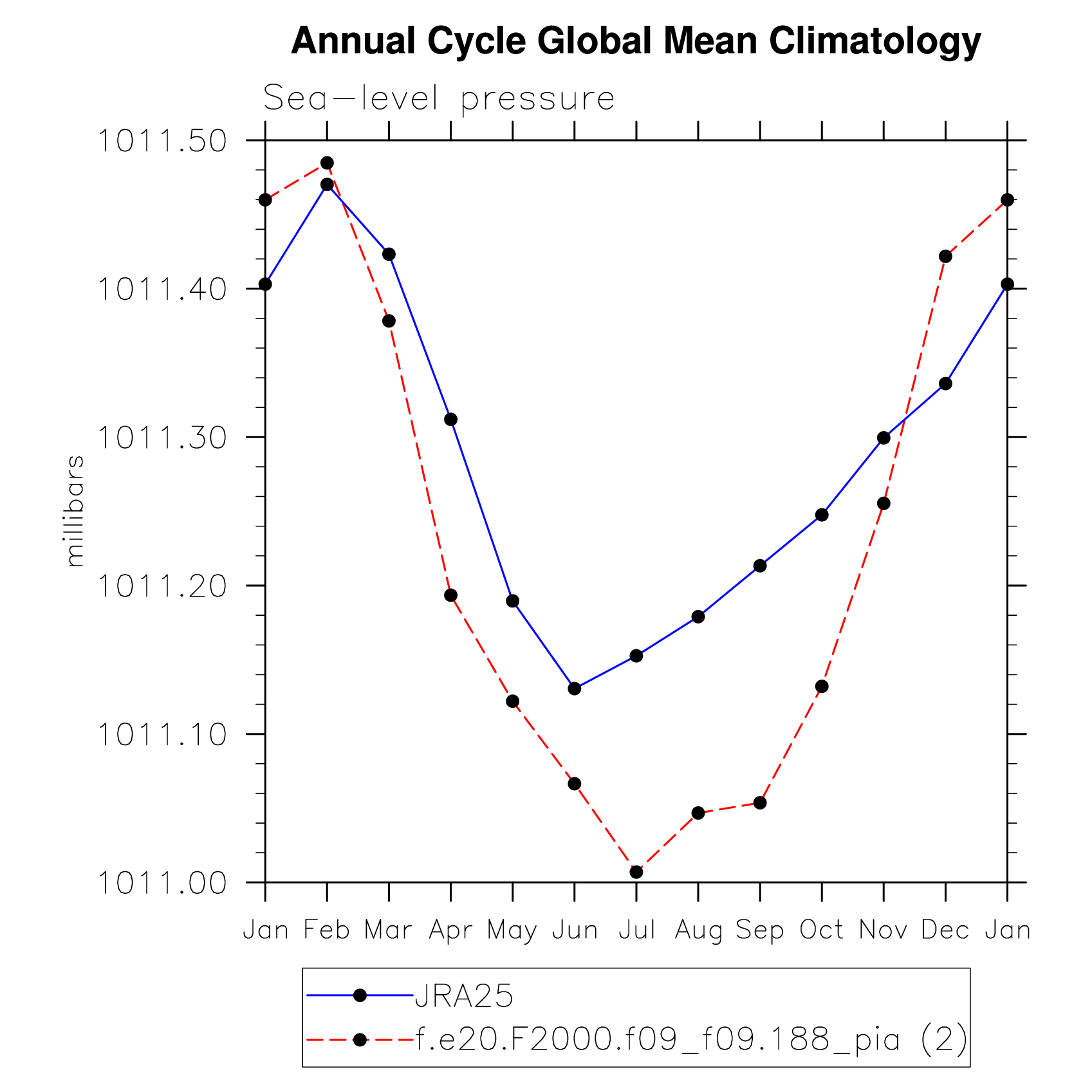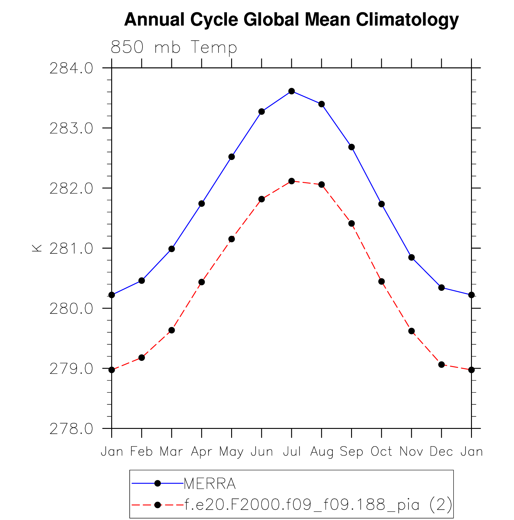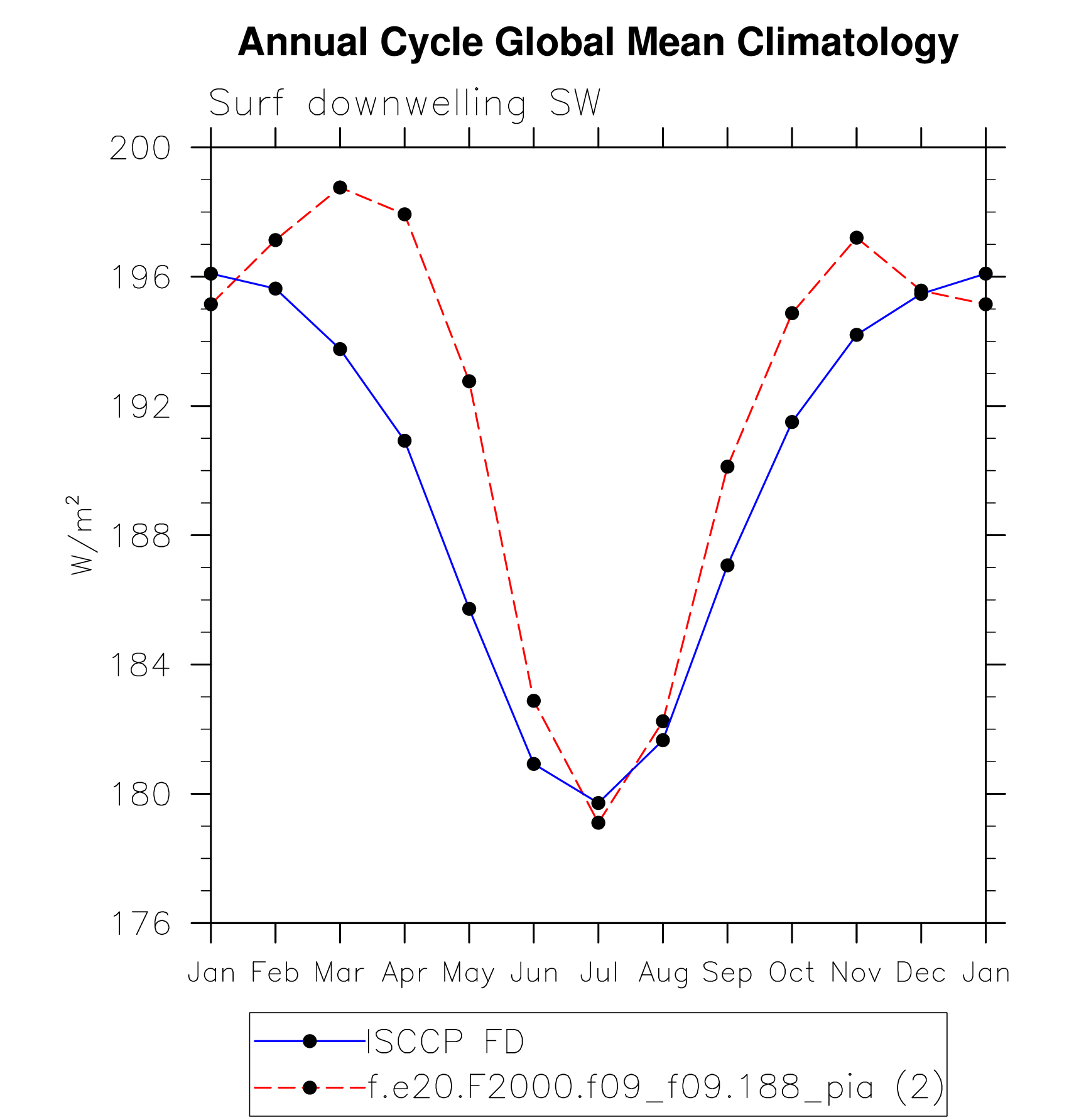 DIAG Set 10 - Annual cycle line plots of global means